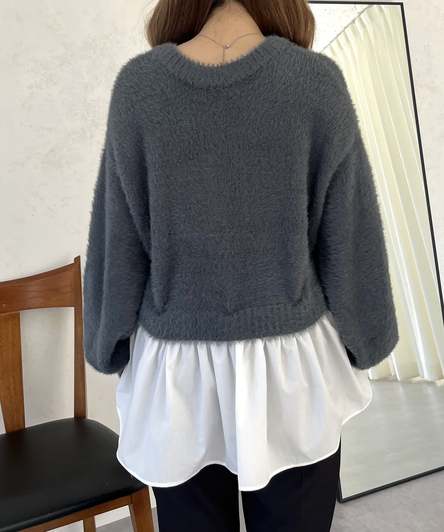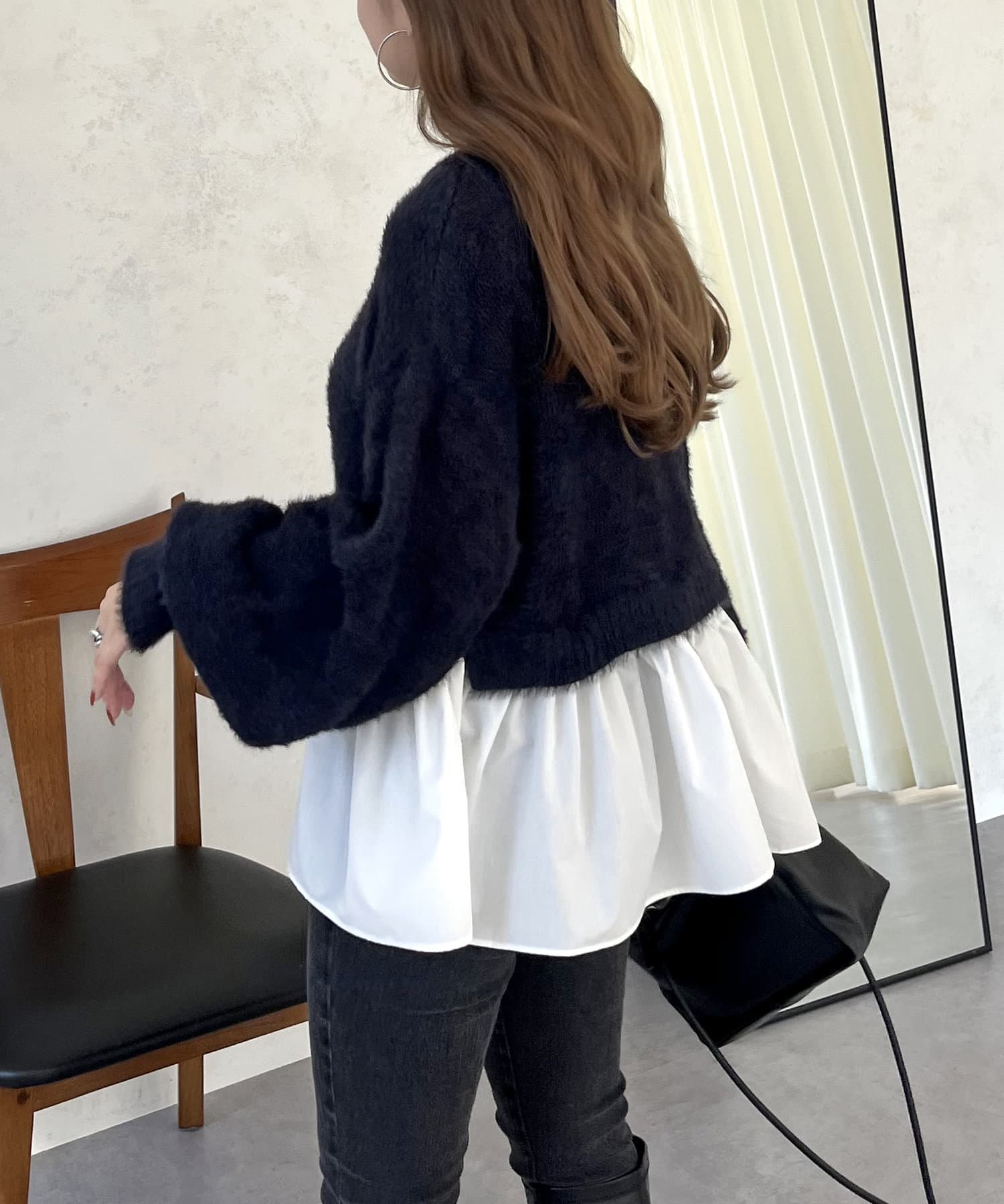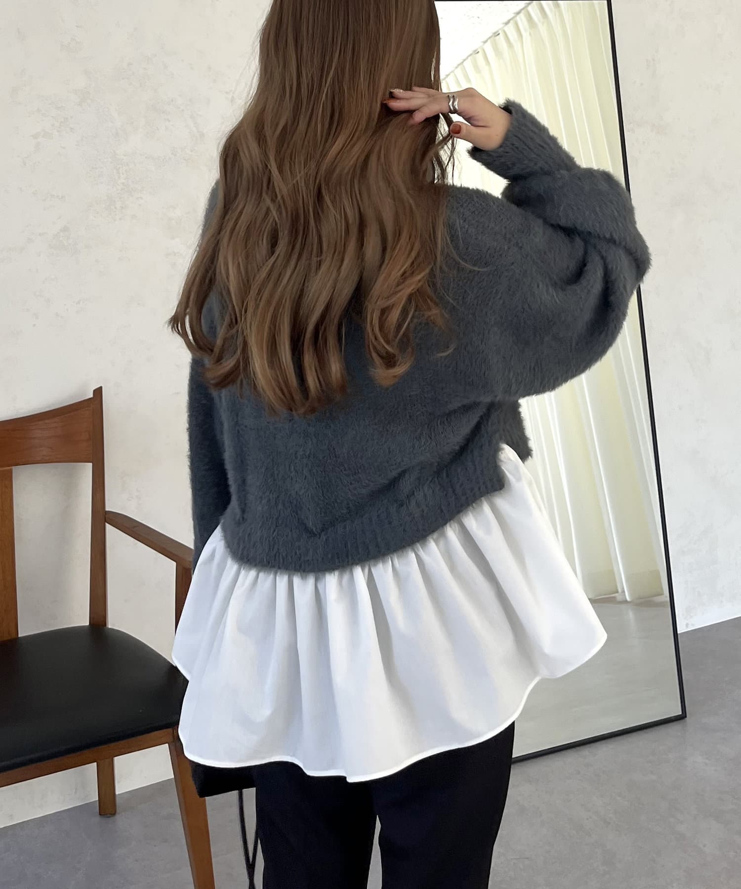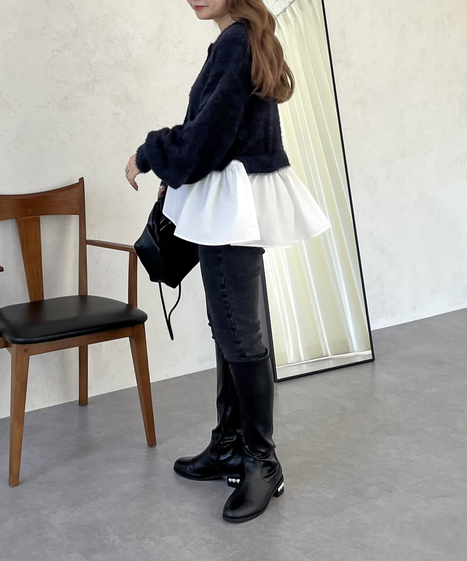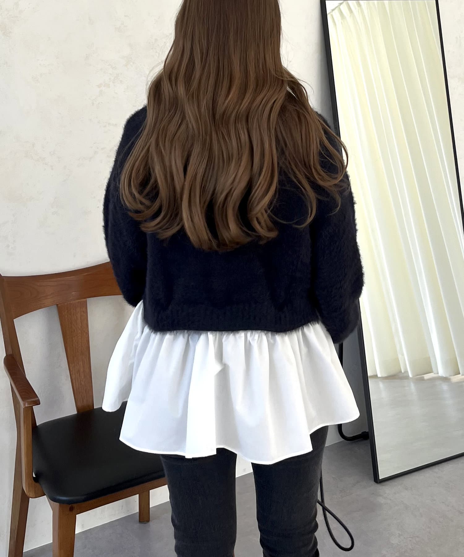 【裾取り外し可能】2wayパール釦シャギーペプラムカーディガン