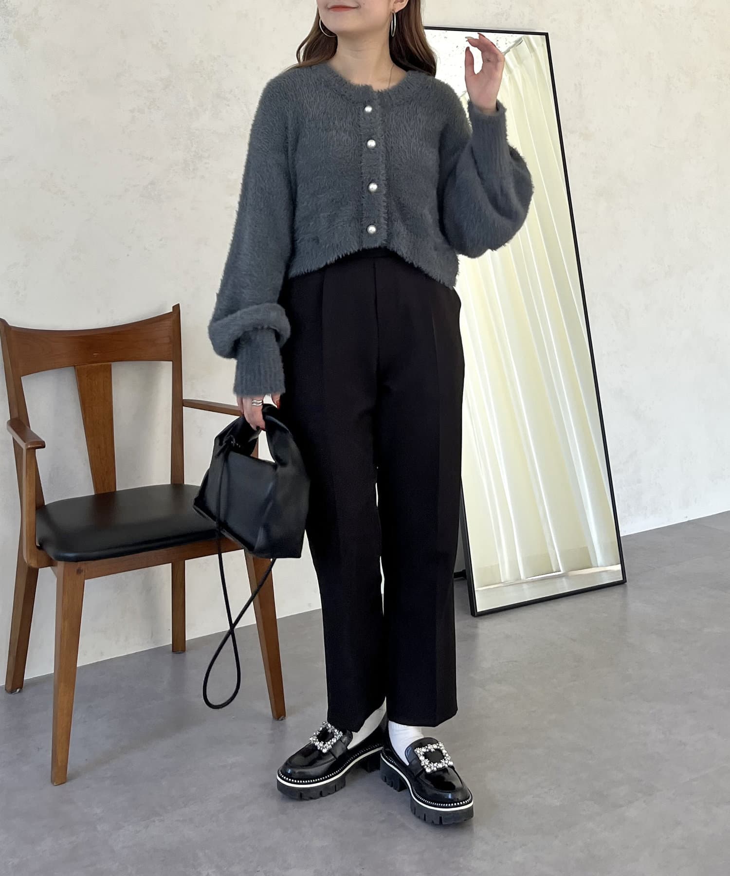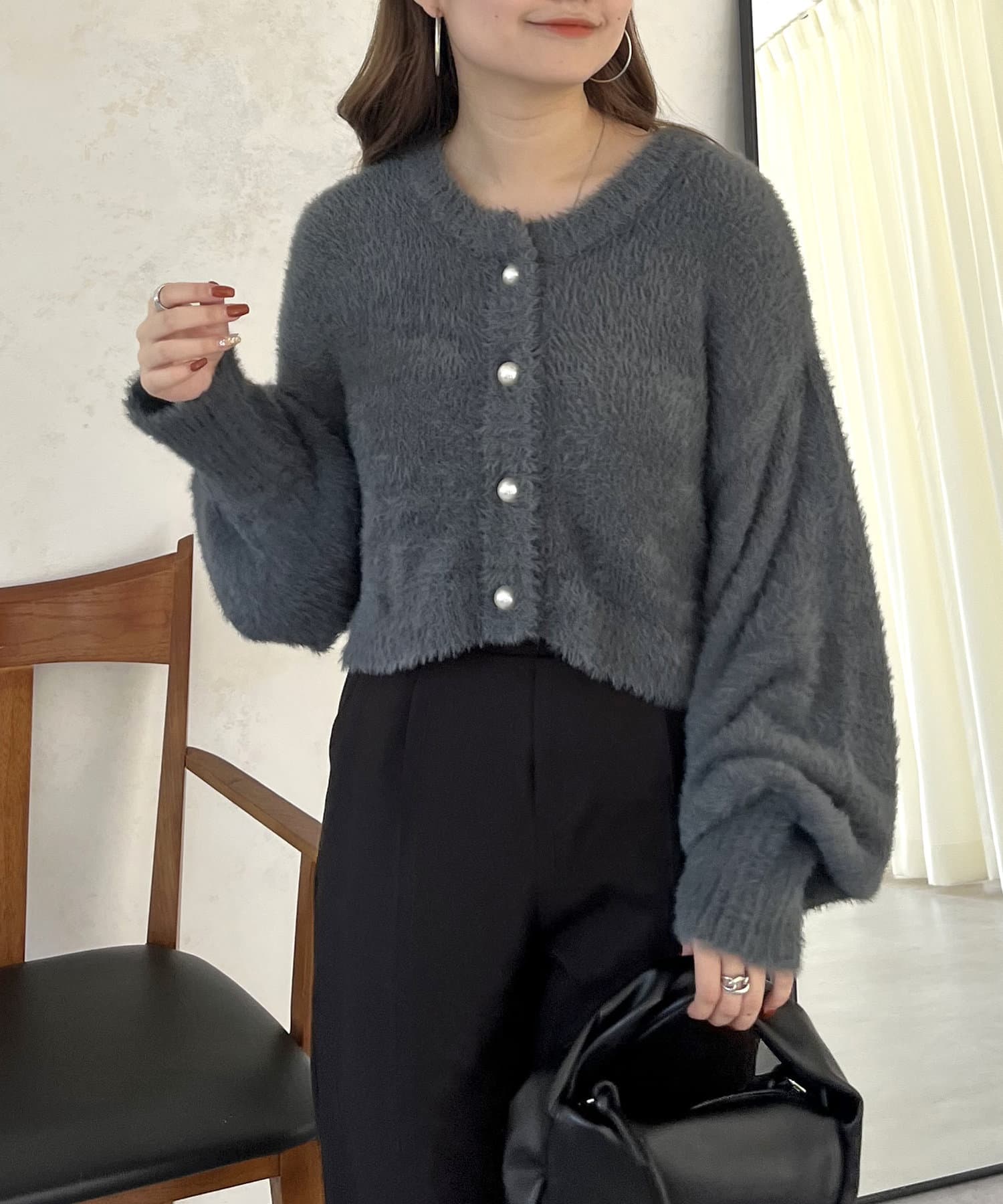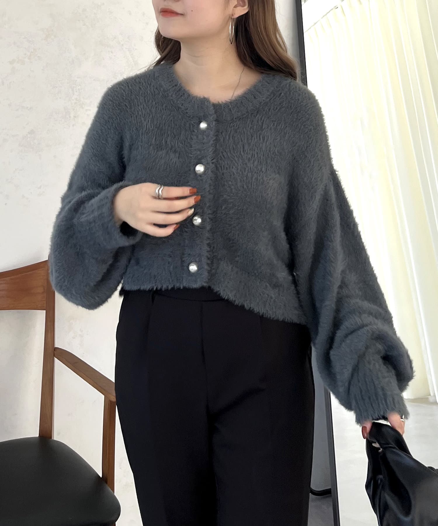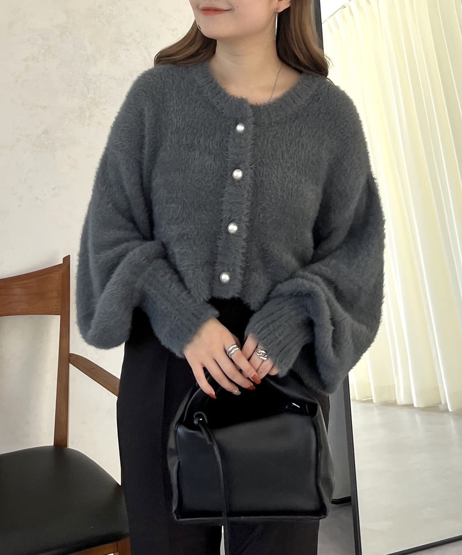 ペプラム/シャギー/シャギーニット/カーディガン/2WAY/パールボタン