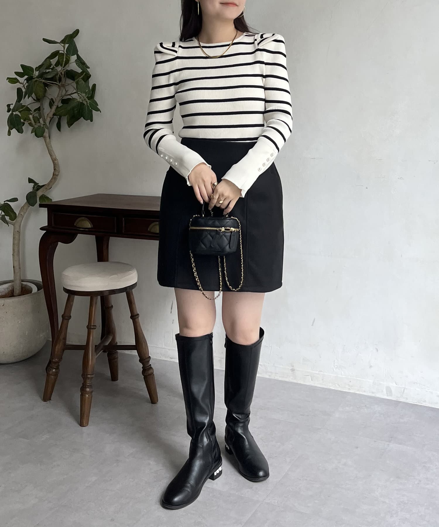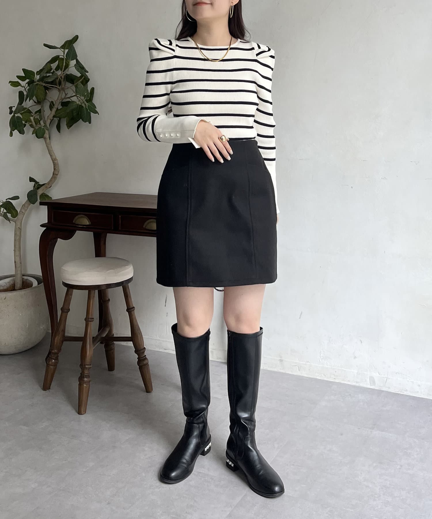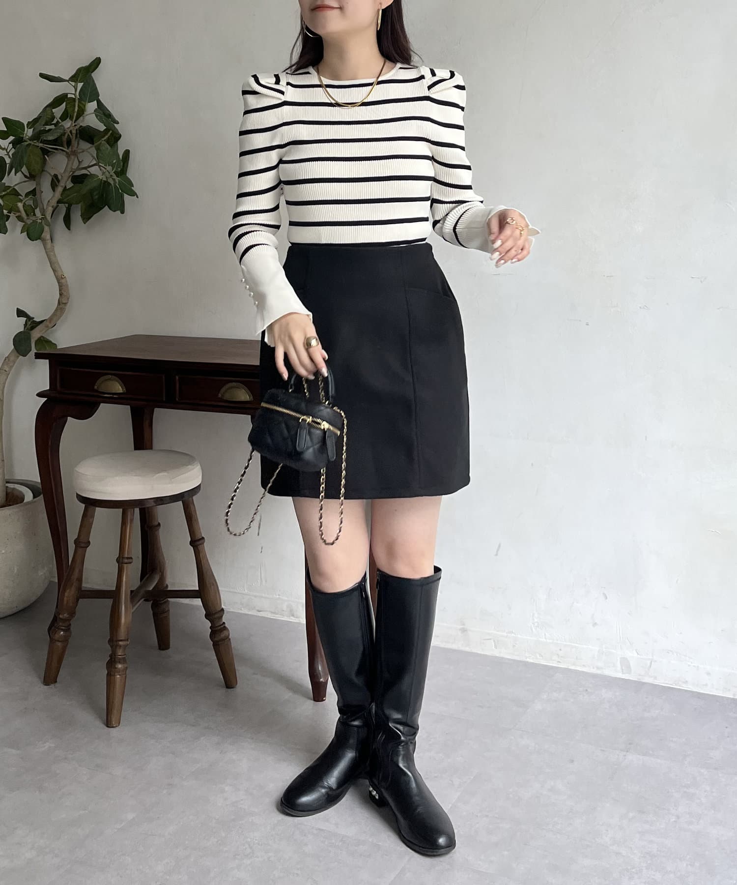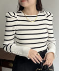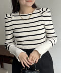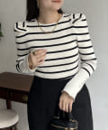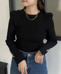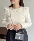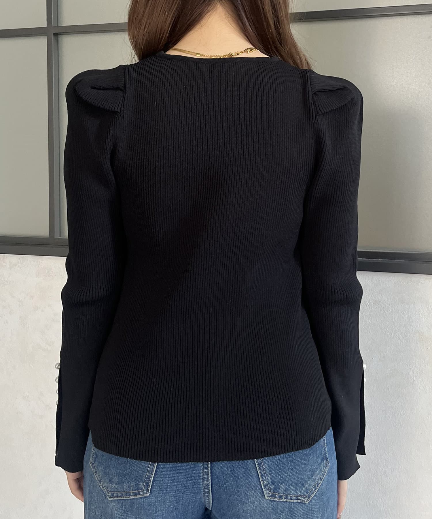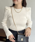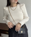 パフスリーブ袖スリットパールニット