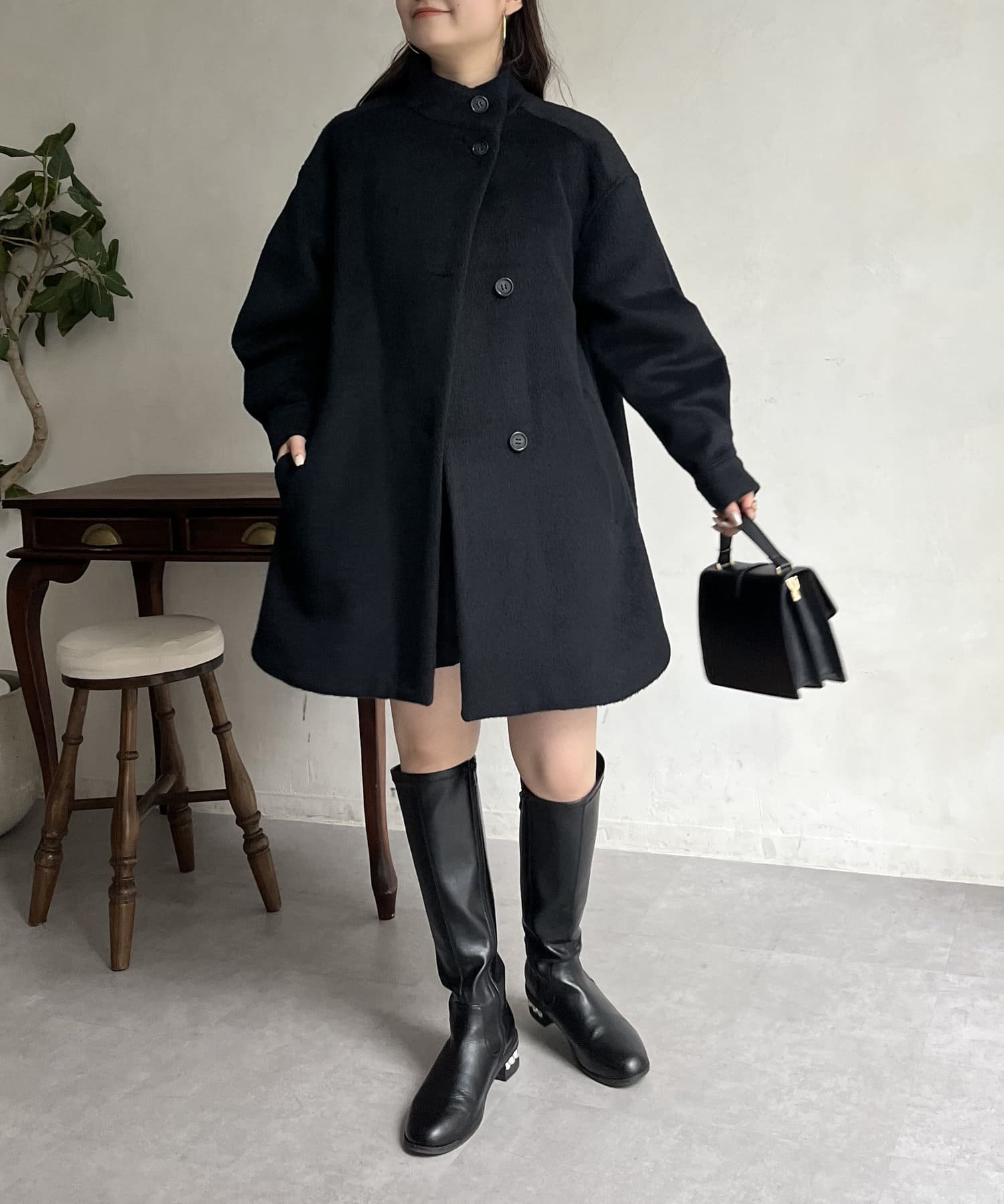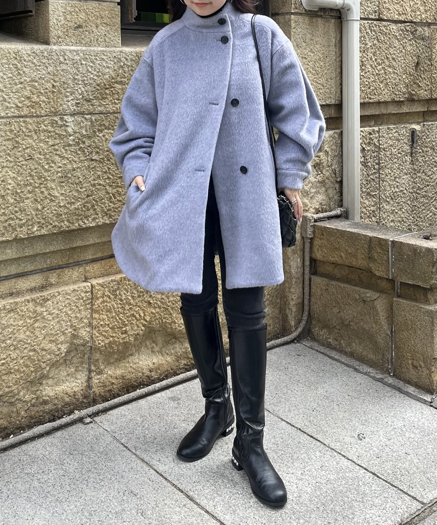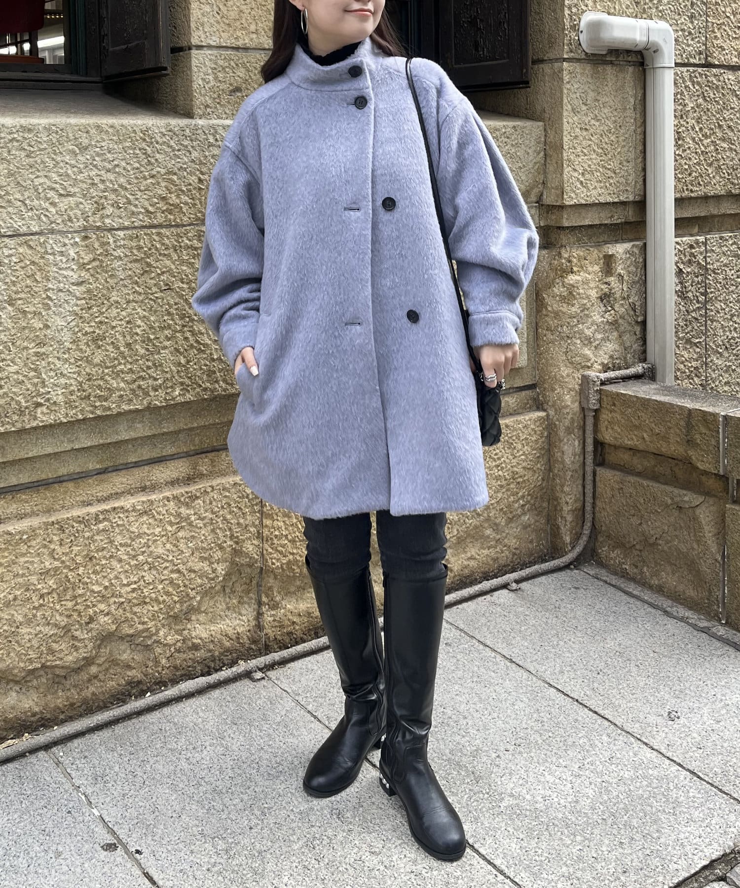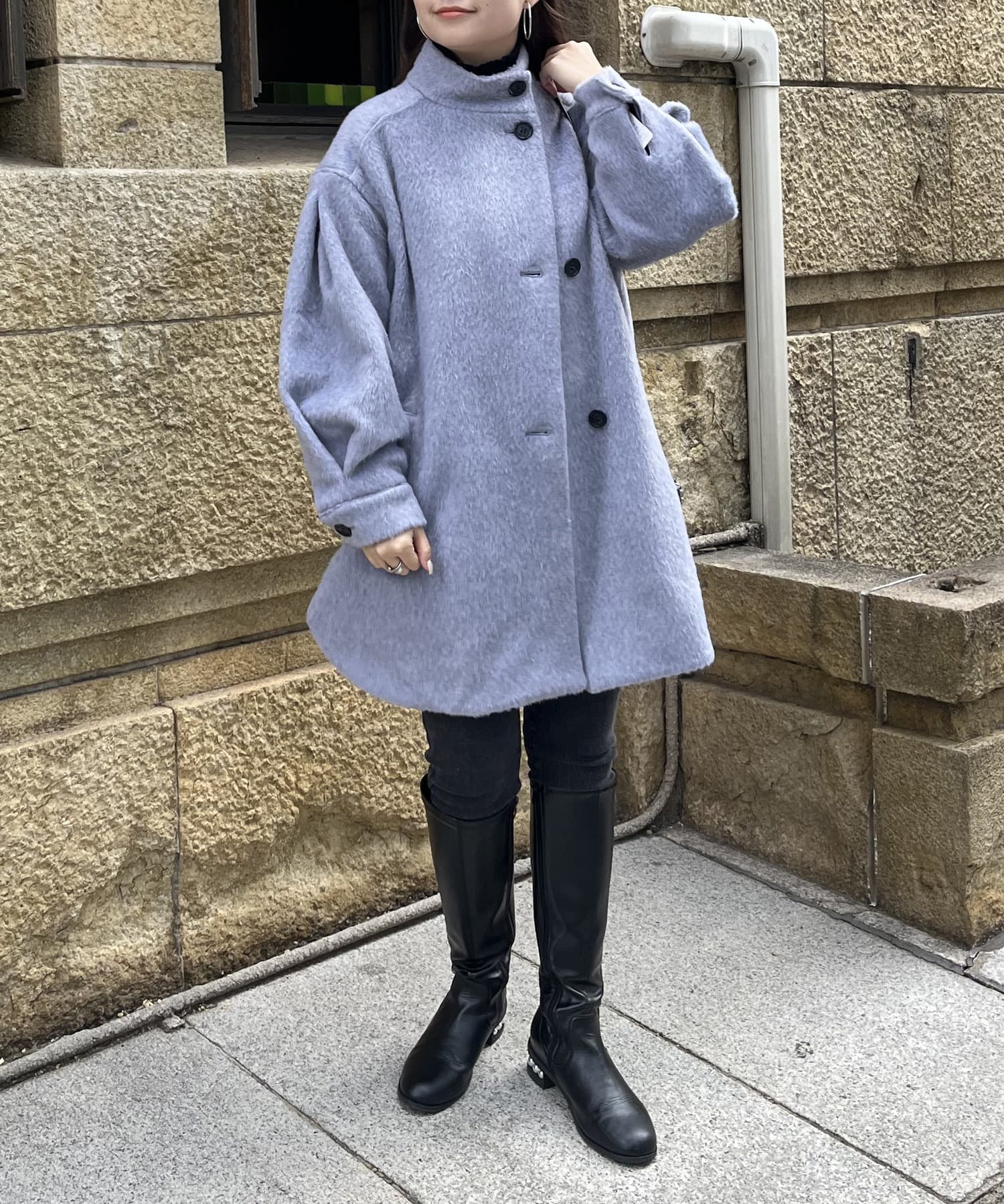 スタンドネックシャギーポンチョコート