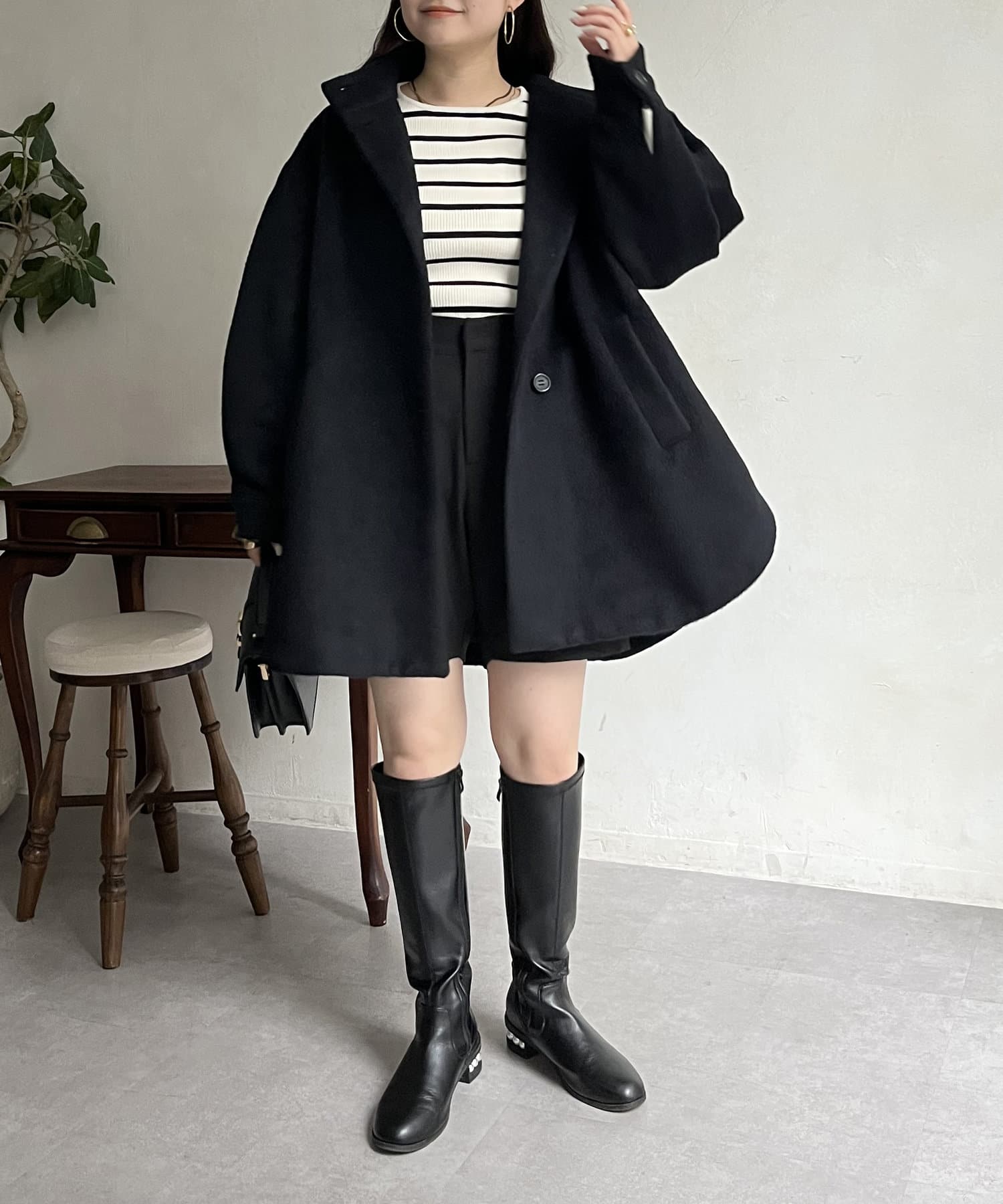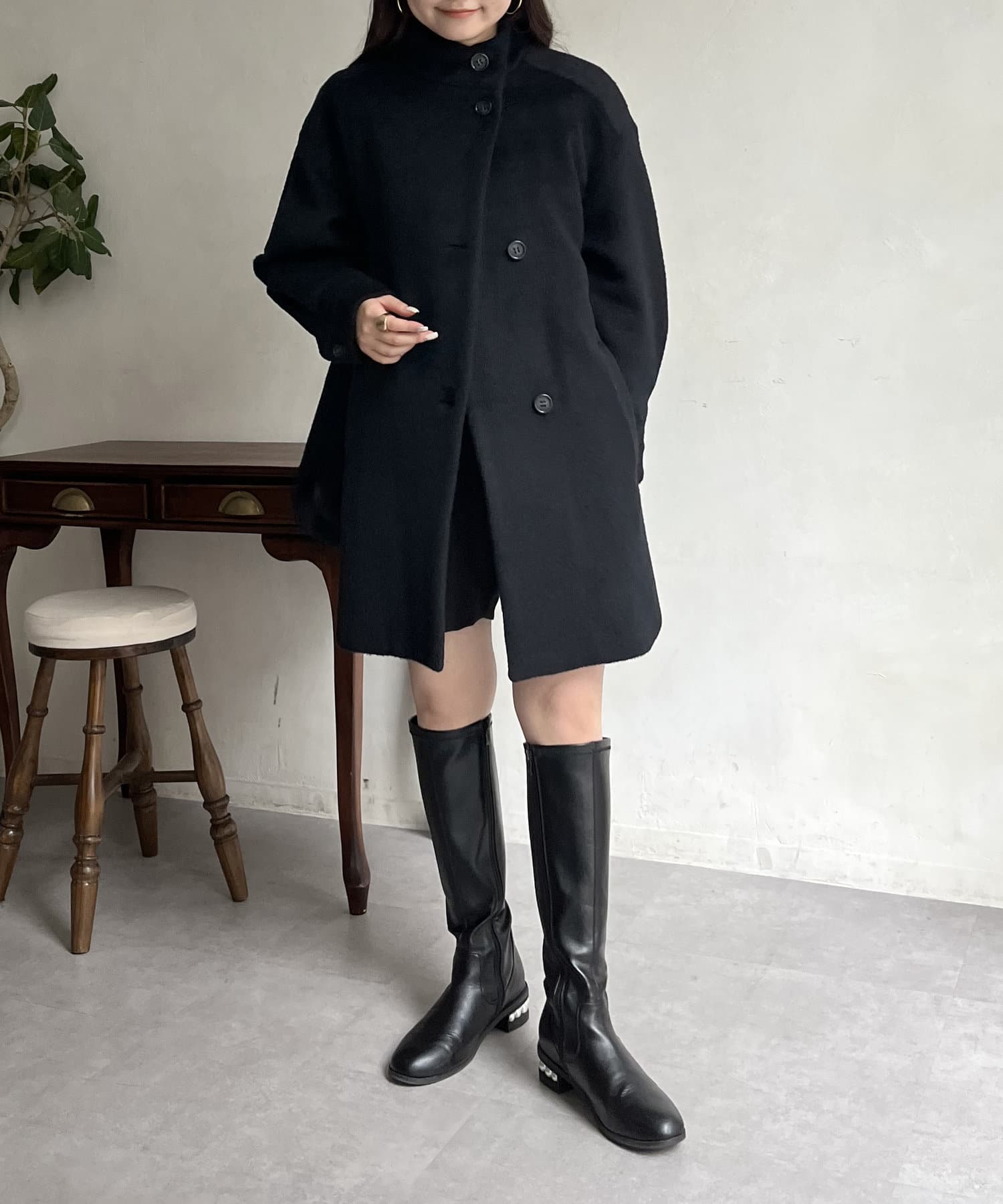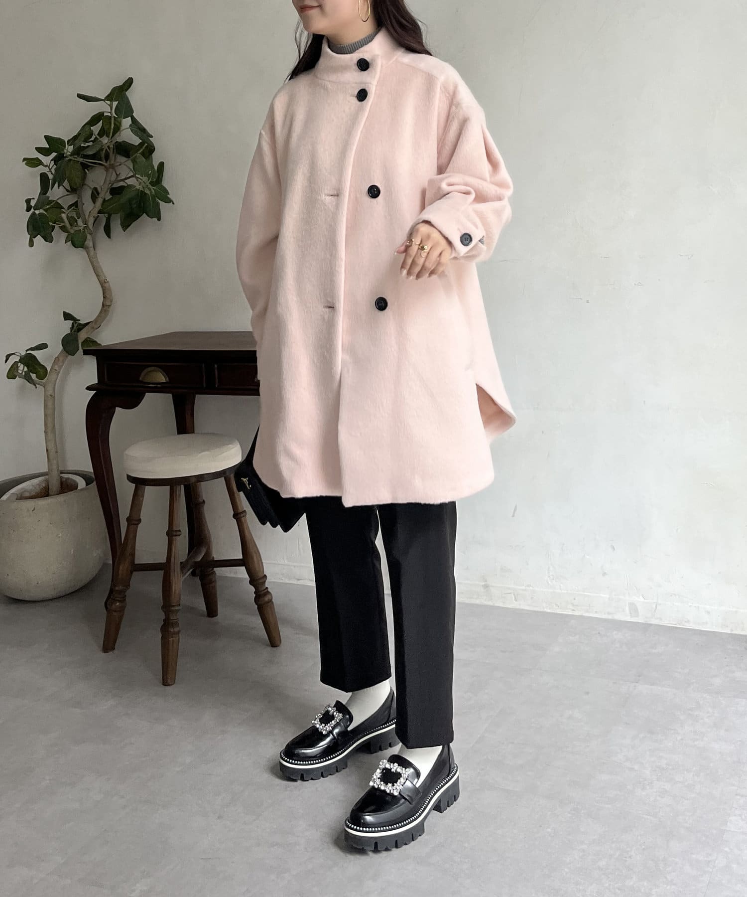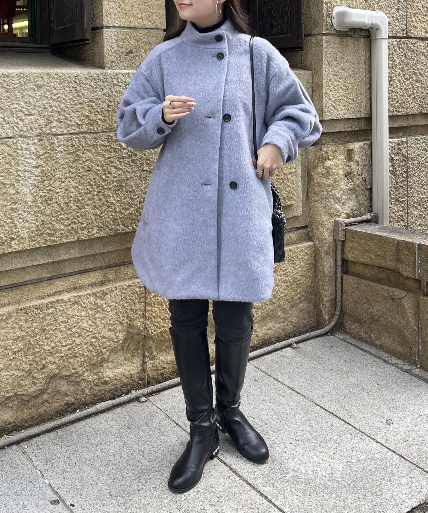 スタンドネックシャギーポンチョコート
