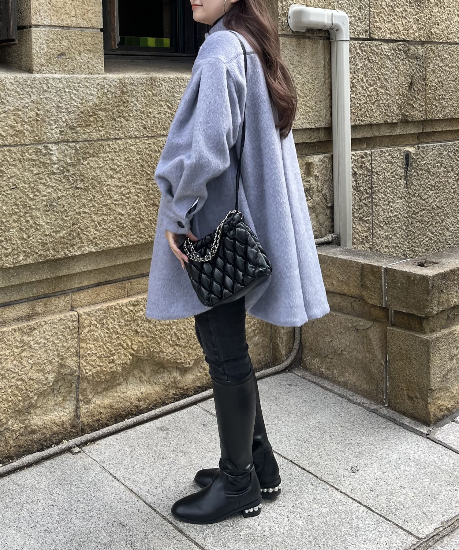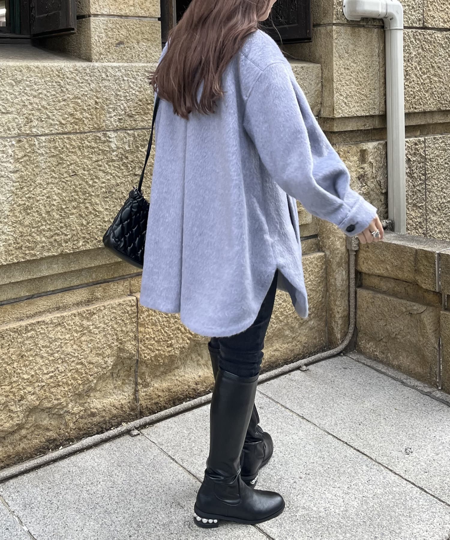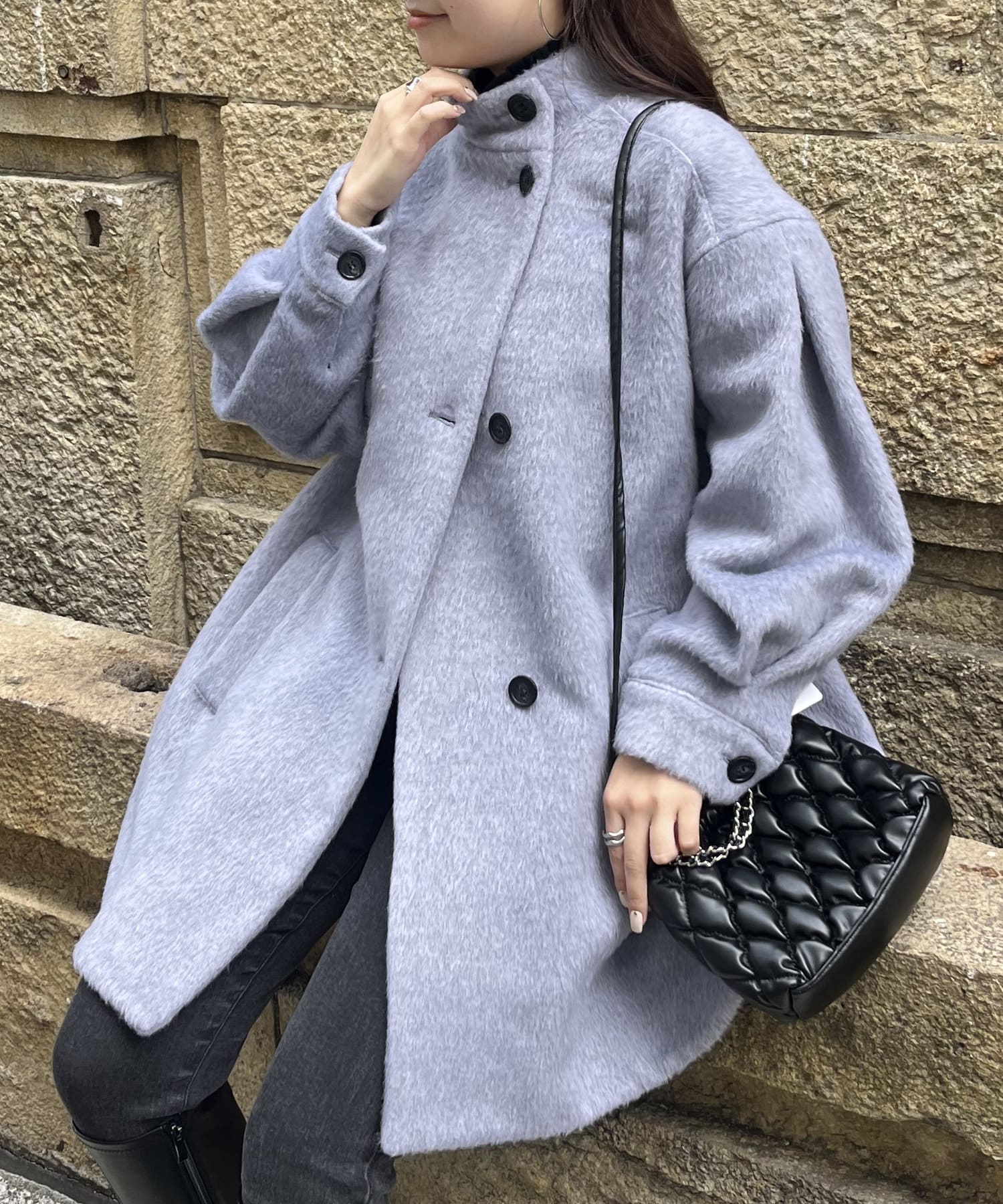 たくさん着込んでも羽織れるシャギーコート