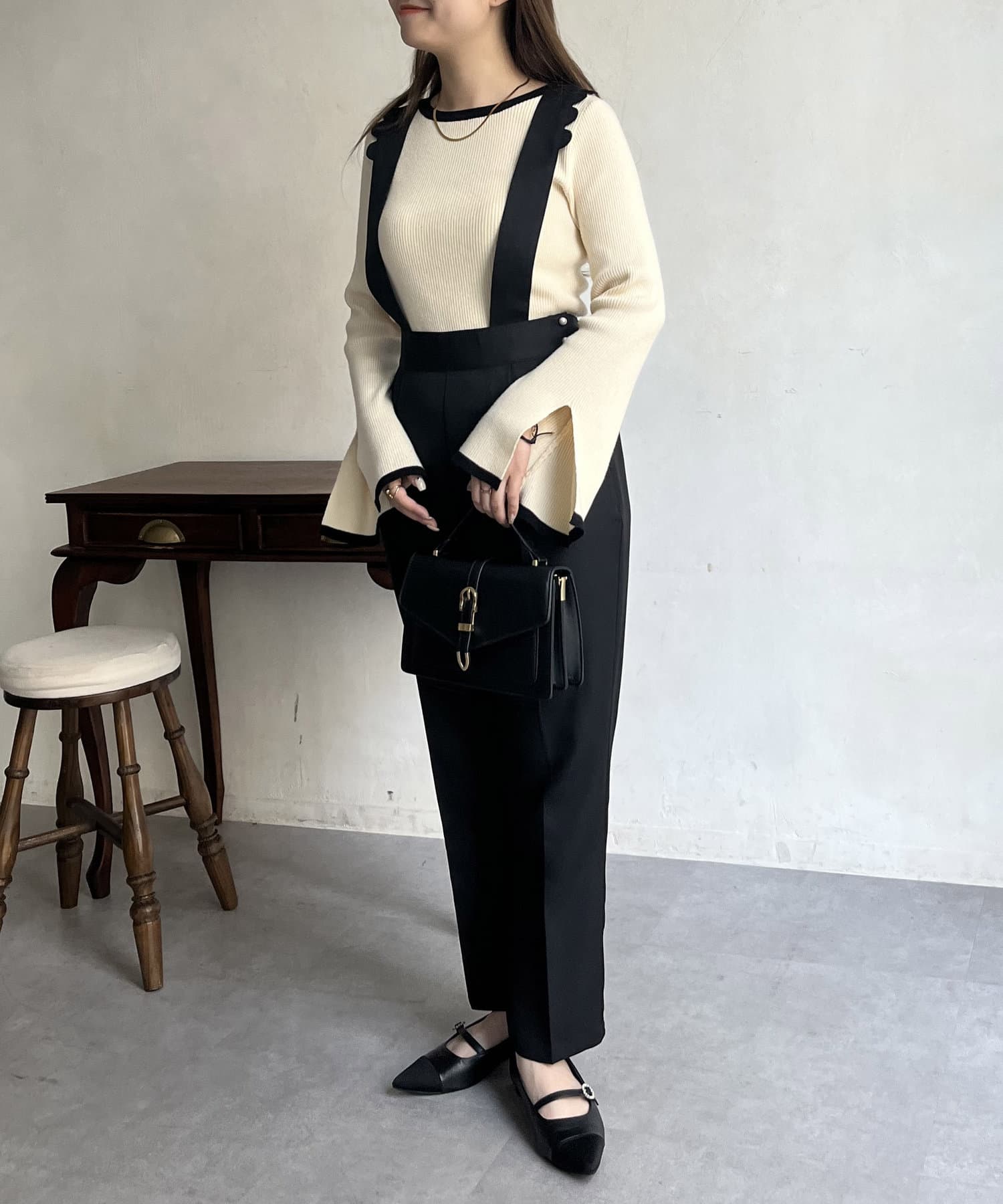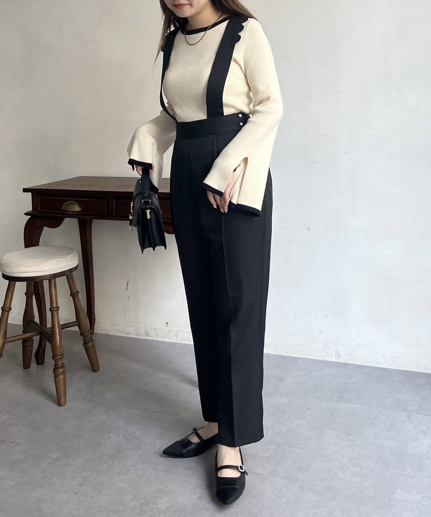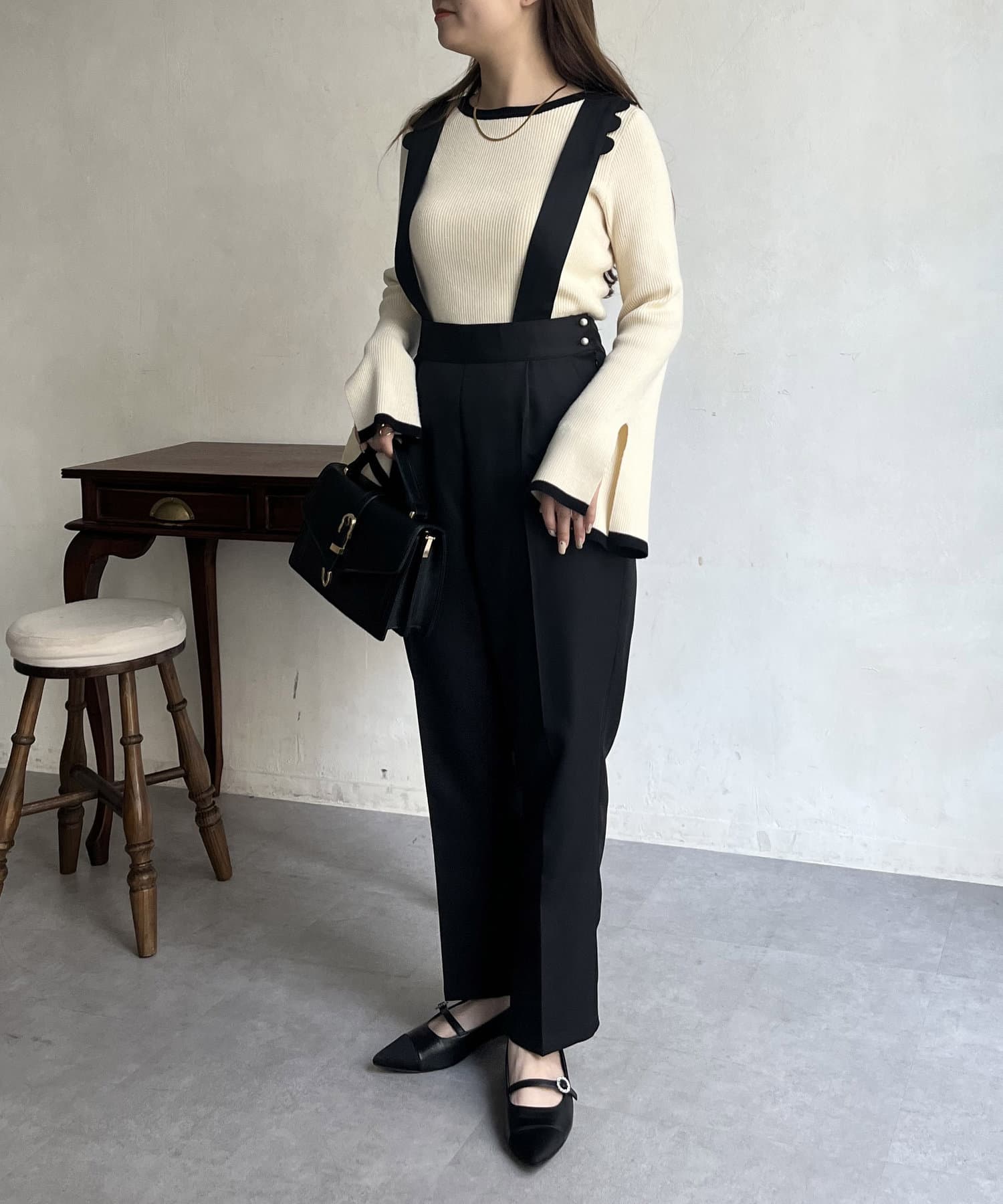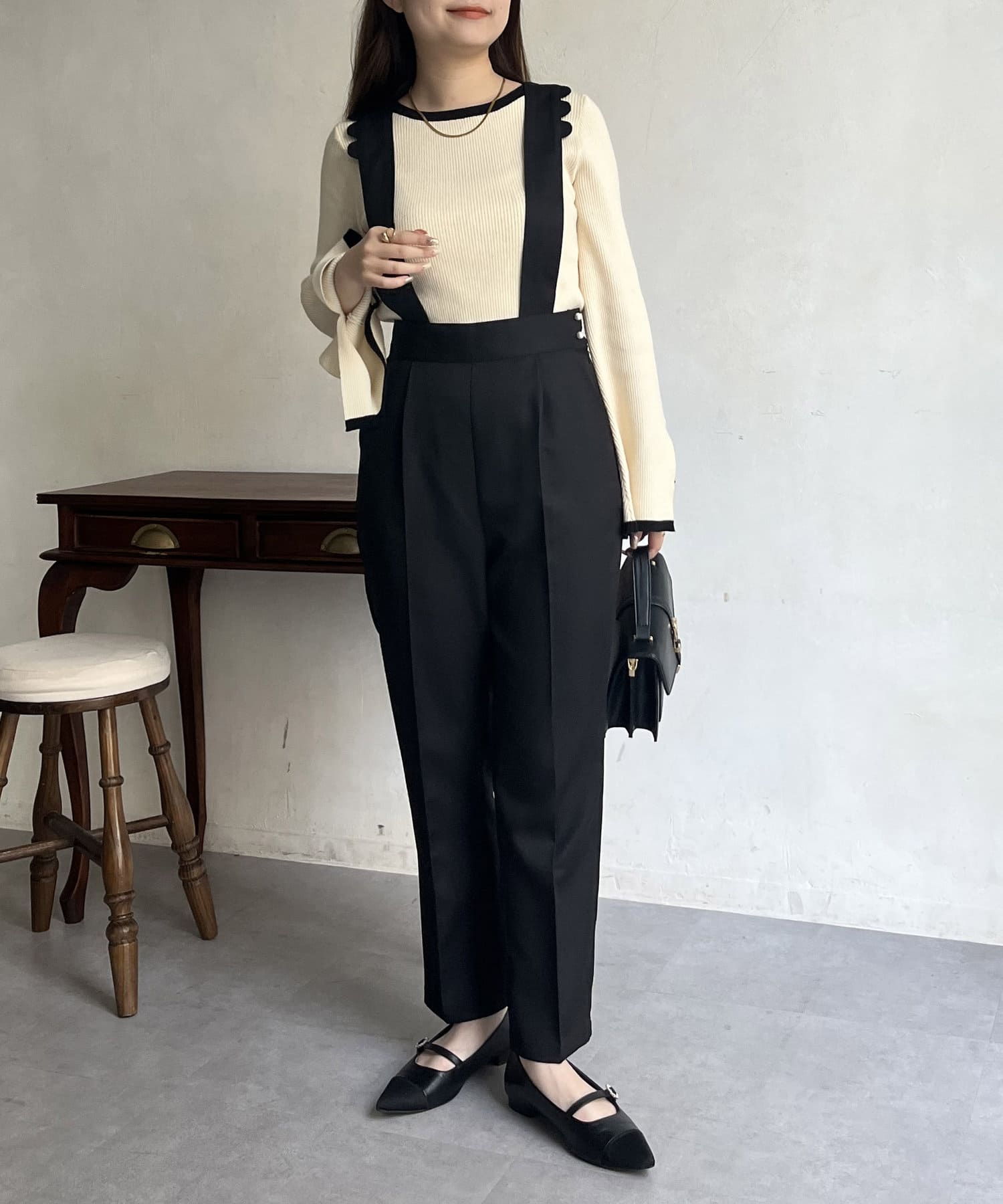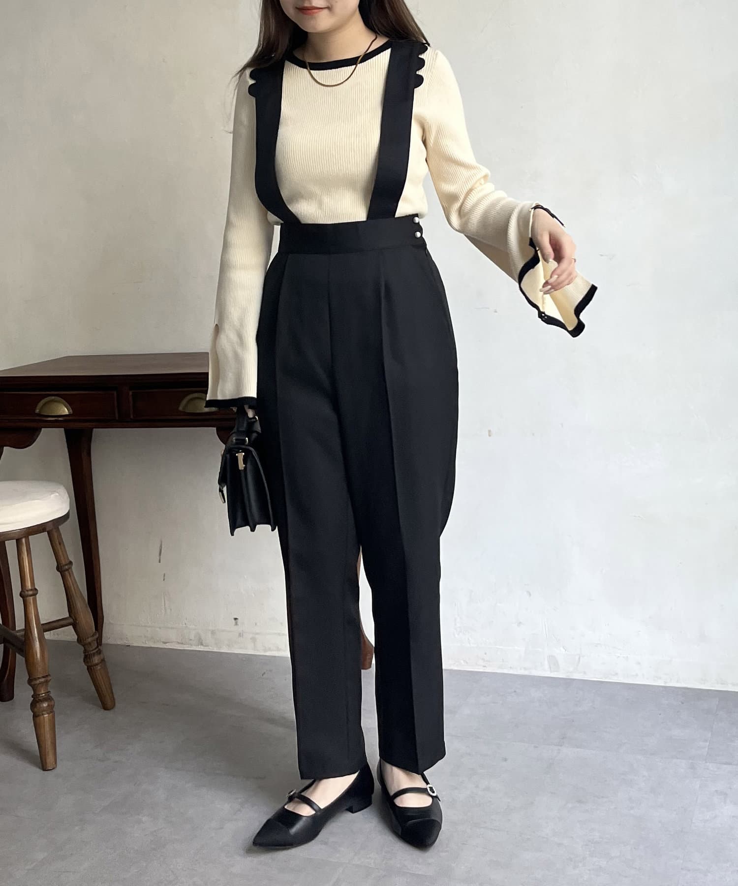 TOP > prose verse > レディース > パンツ > その他パンツ > 【肩紐取り外し可能】スカラップサスペンダーパンツ