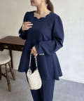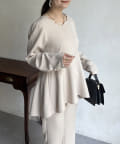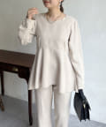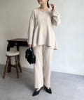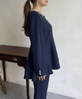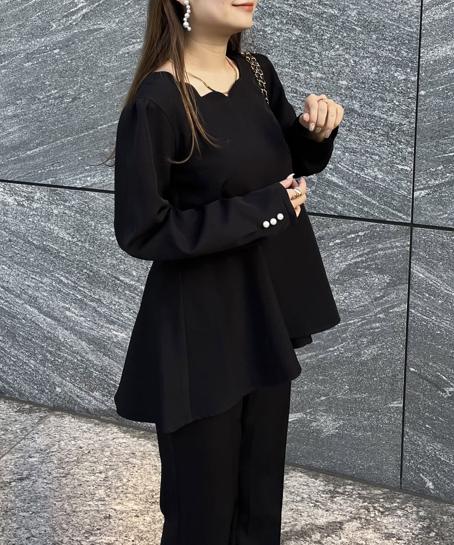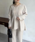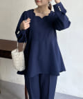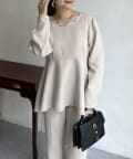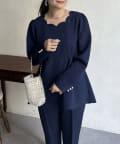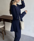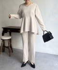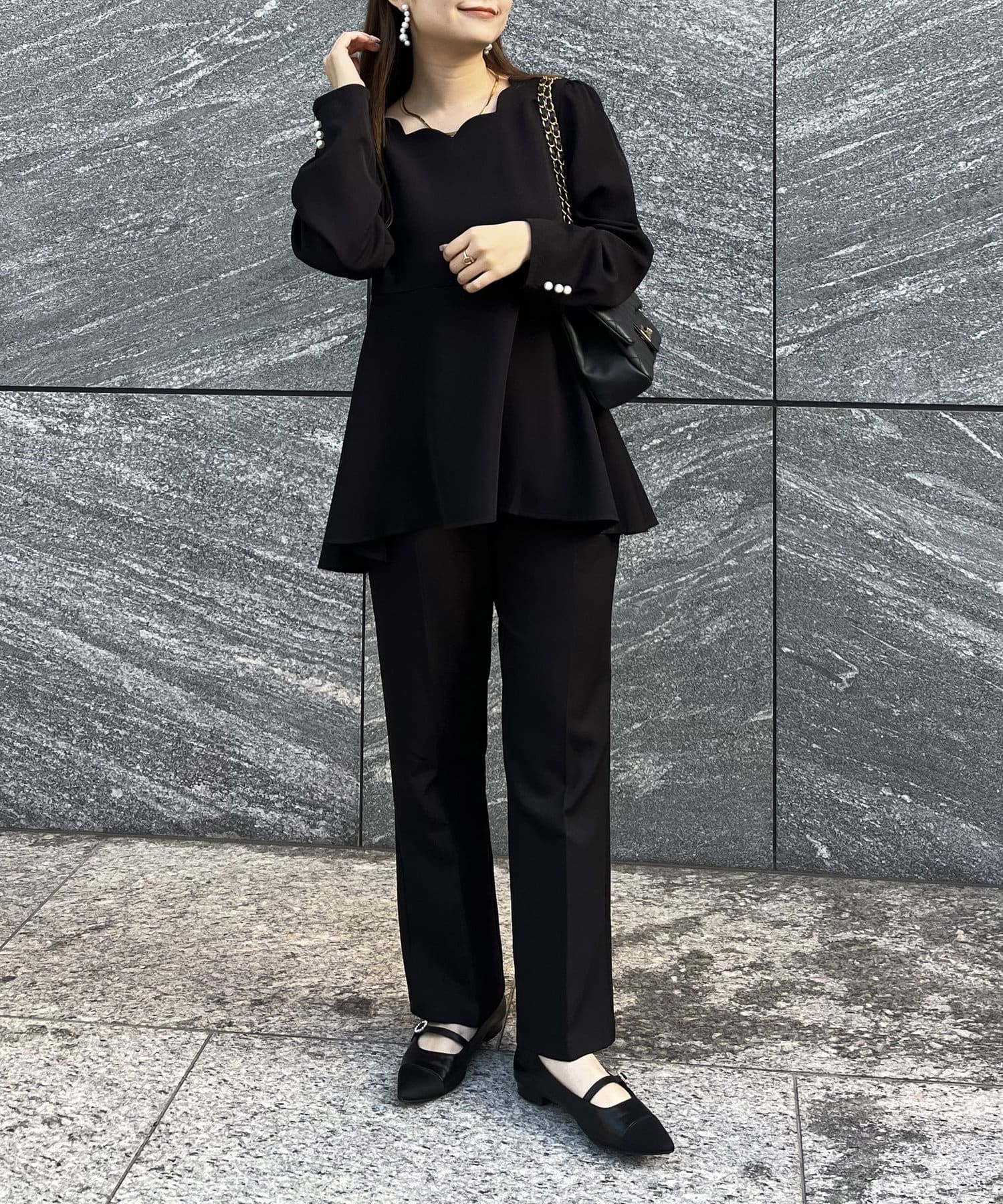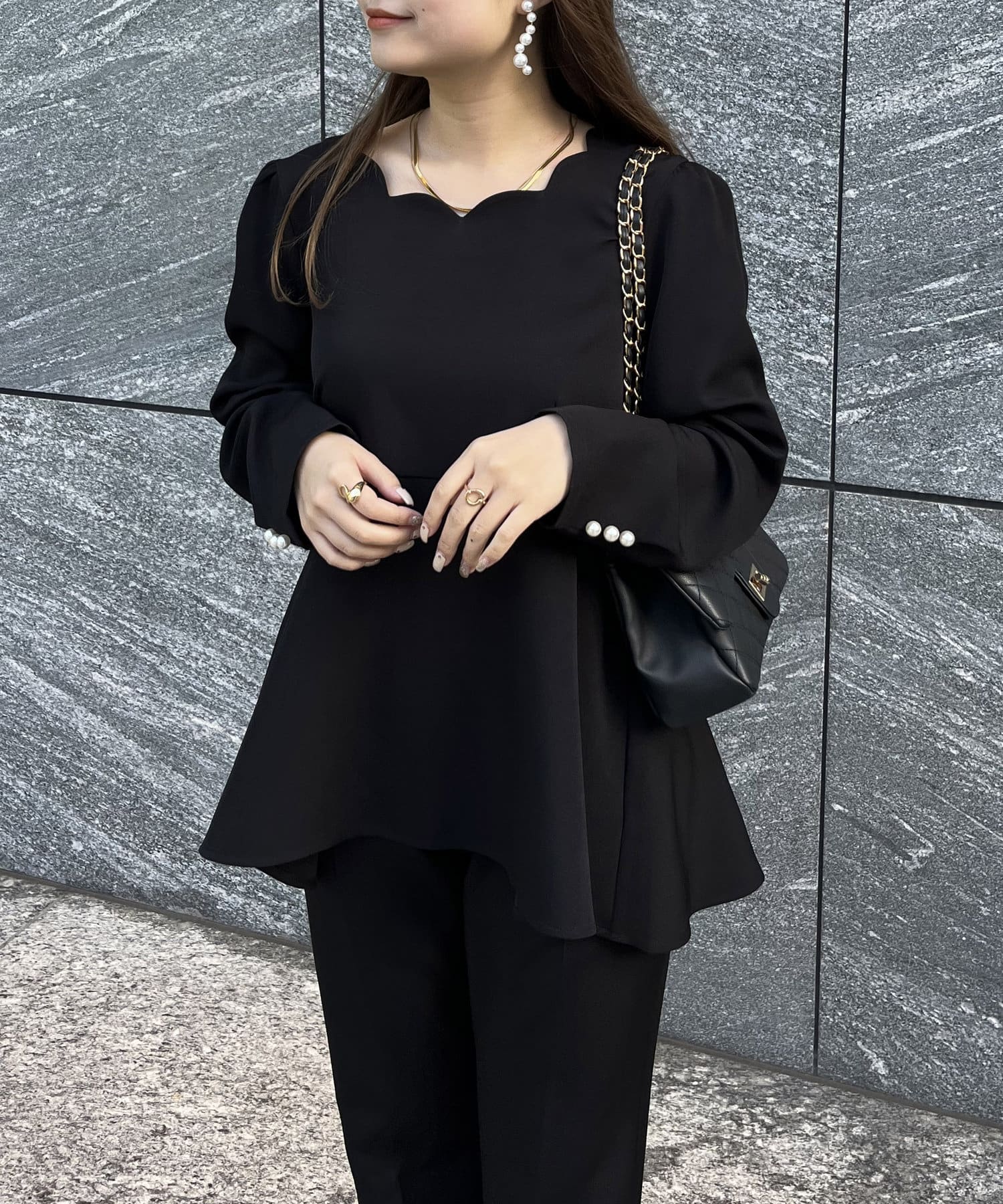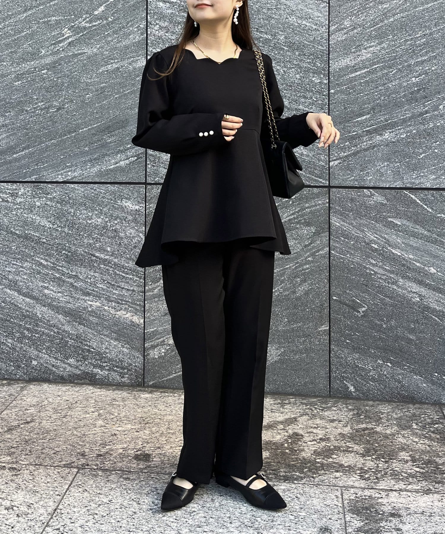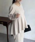 【セットアップ着用可能】袖パールスカラップネックペプラムブラウス