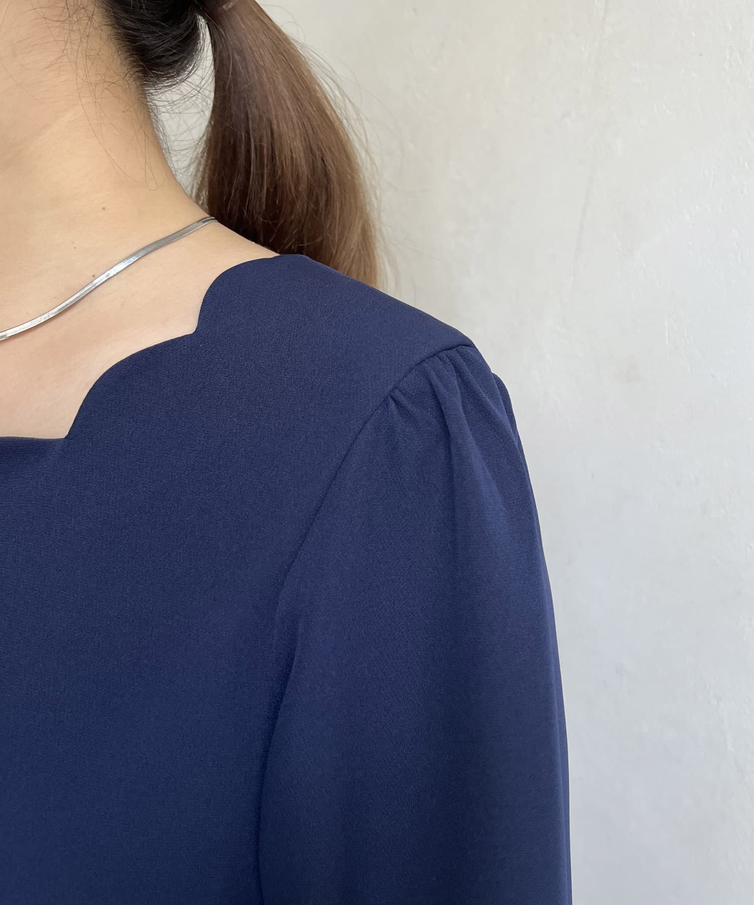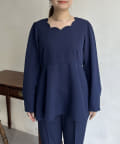 スカラップネックが女性らしいペプラムブラウス