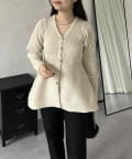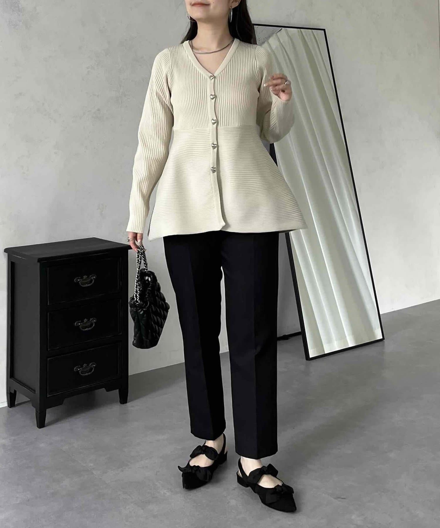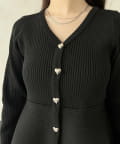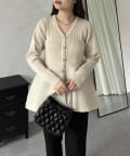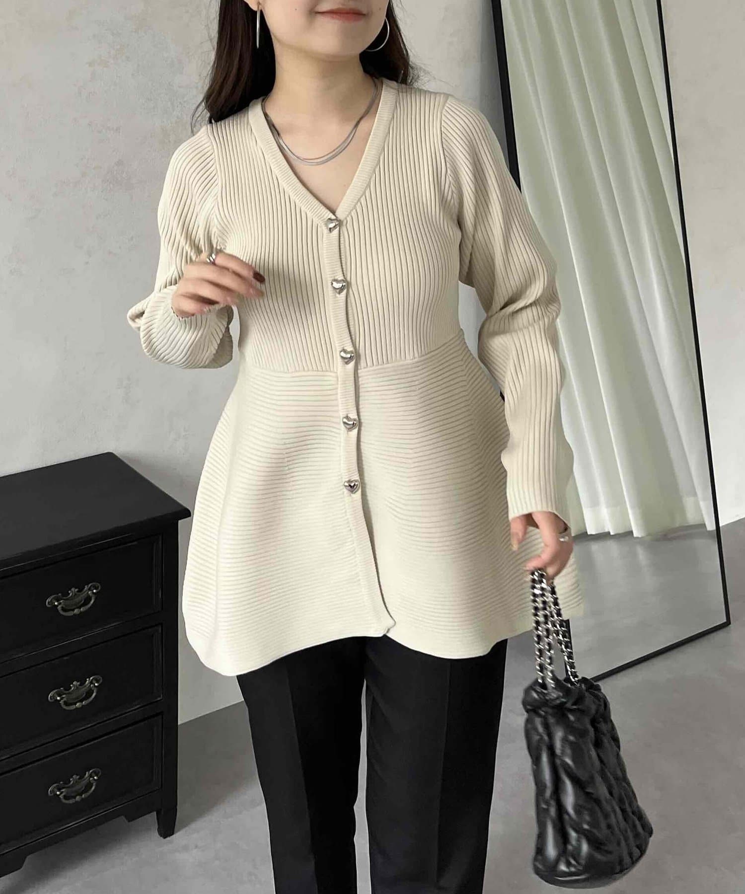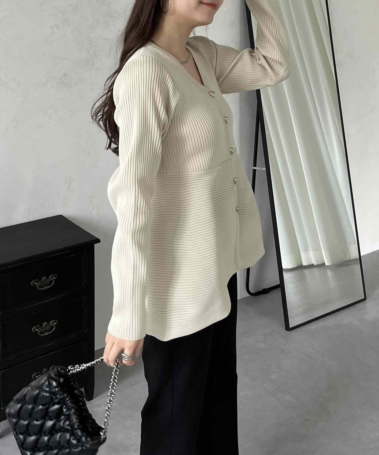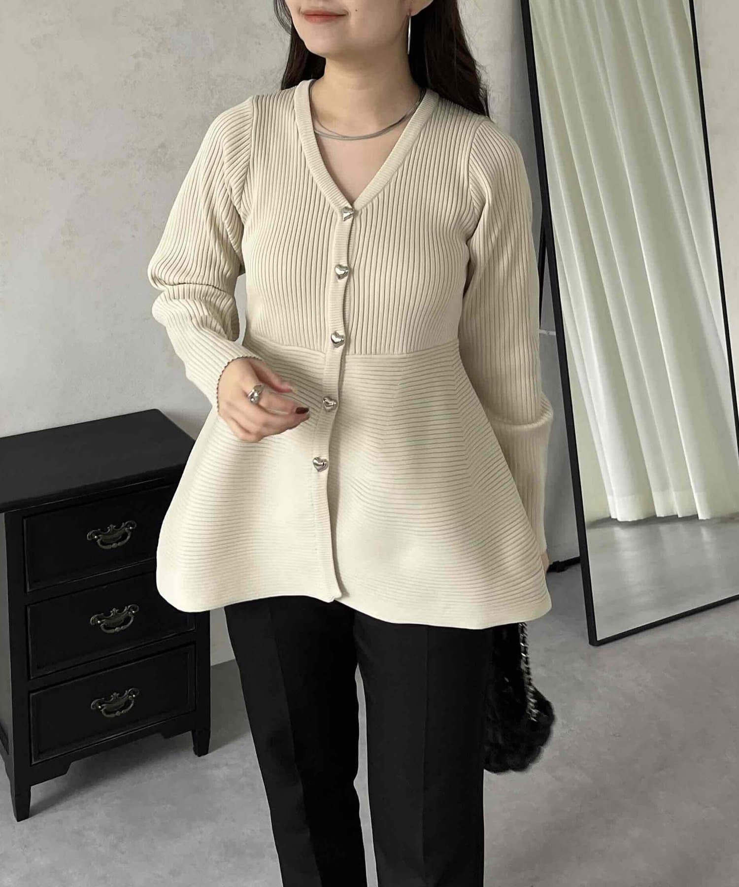 ハートボタンVネックリブペプラムカーディガン