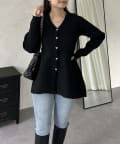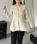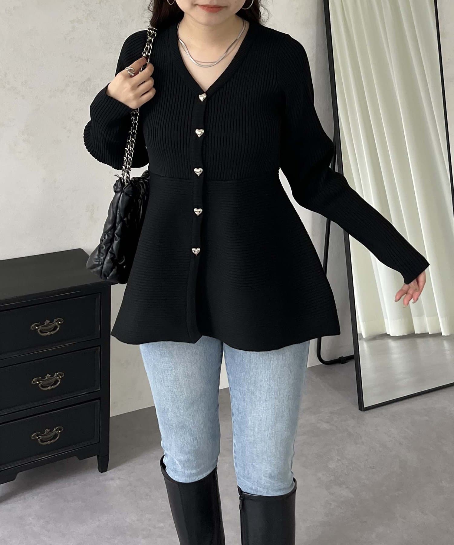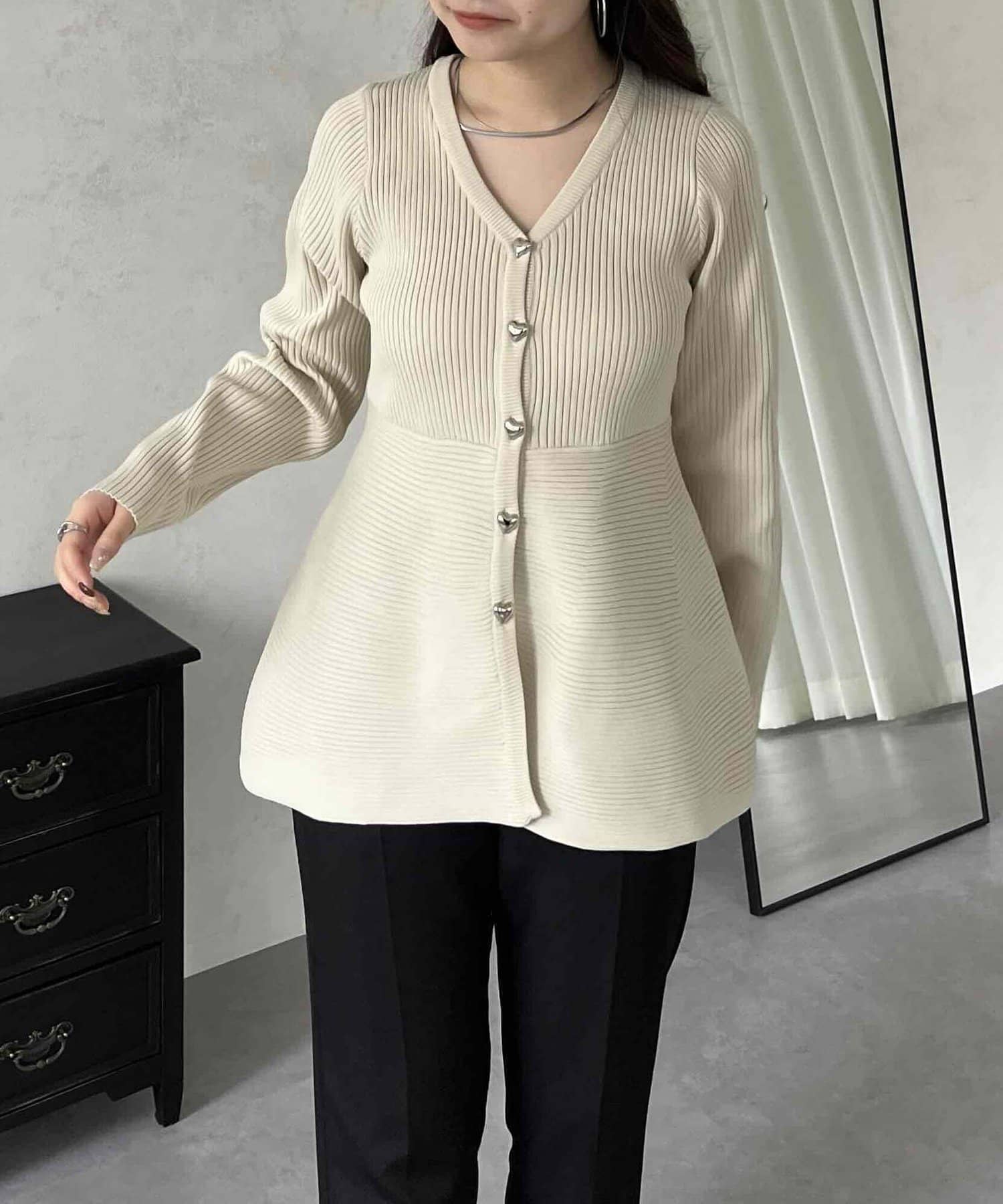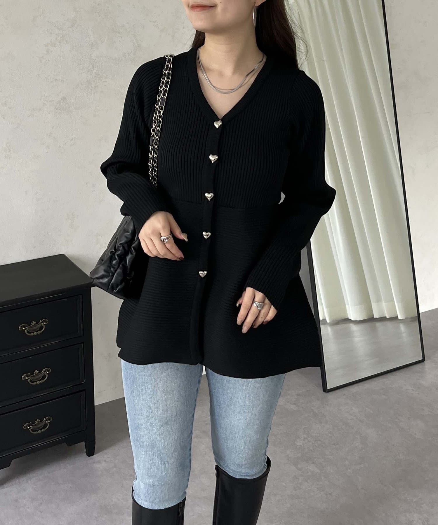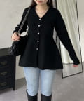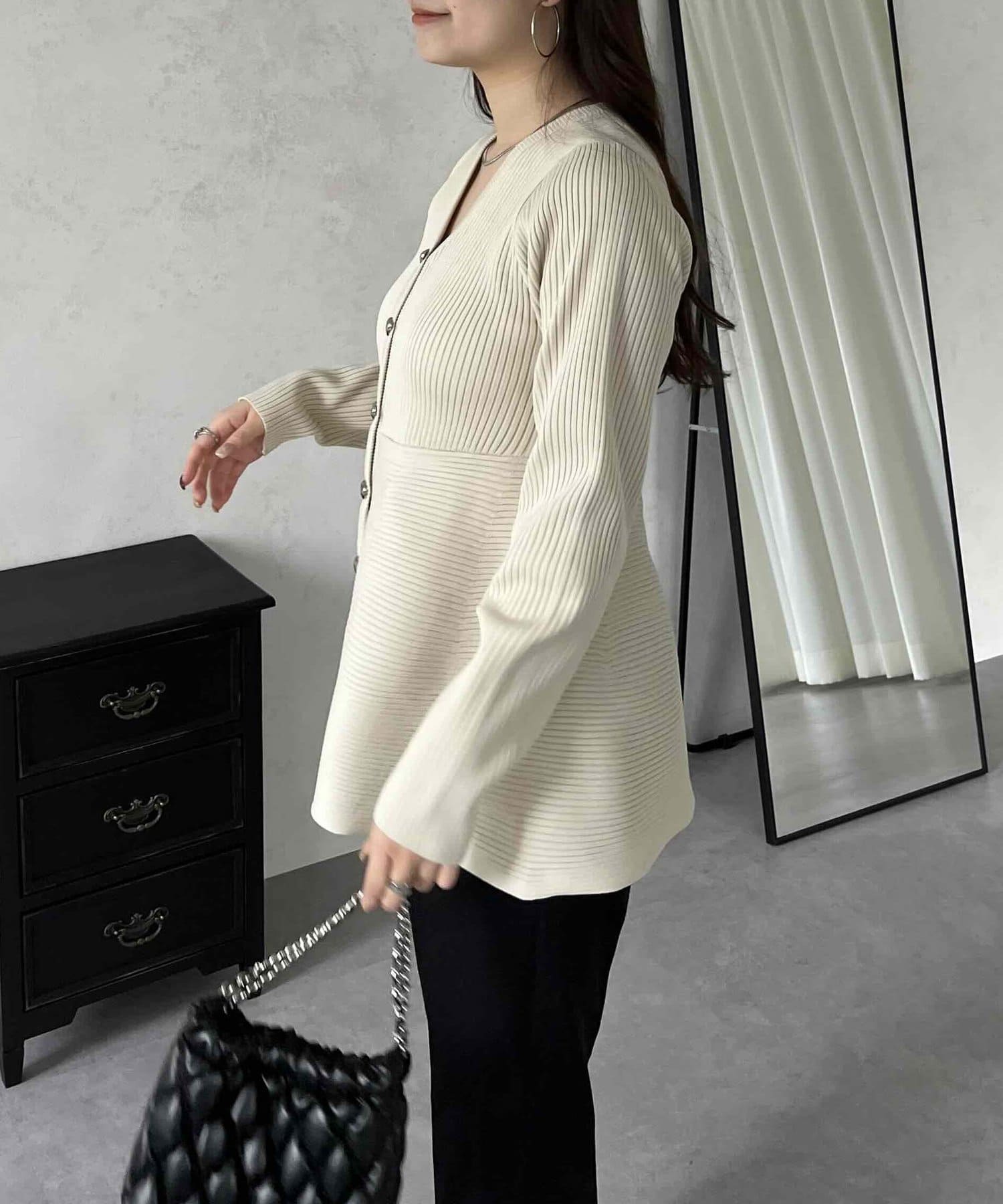 ハートボタンVネックリブペプラムカーディガン