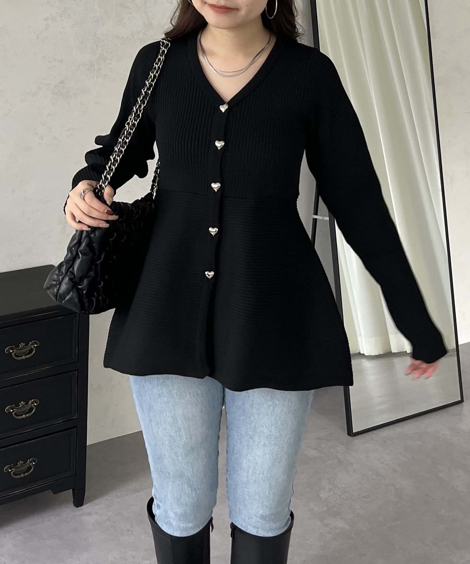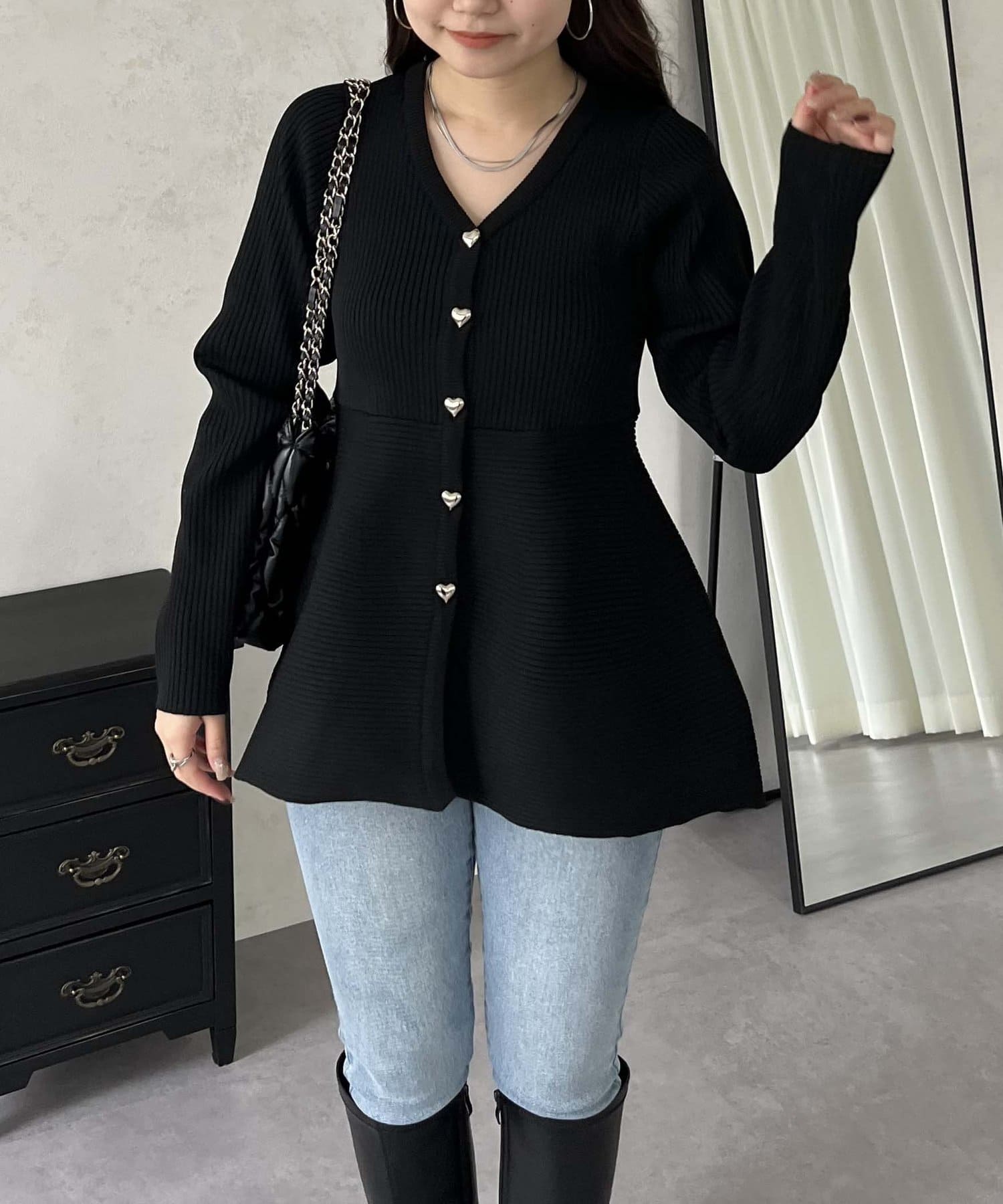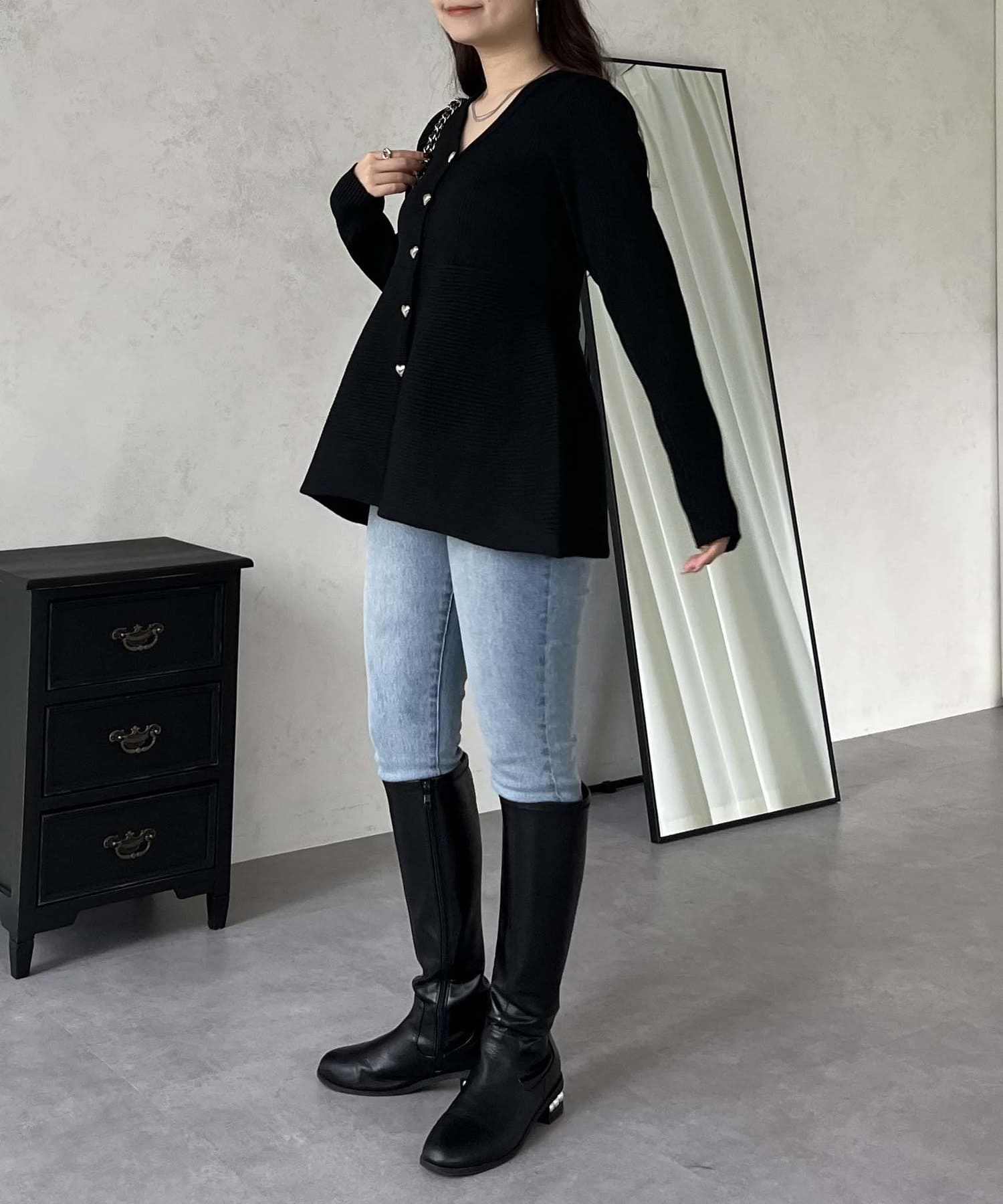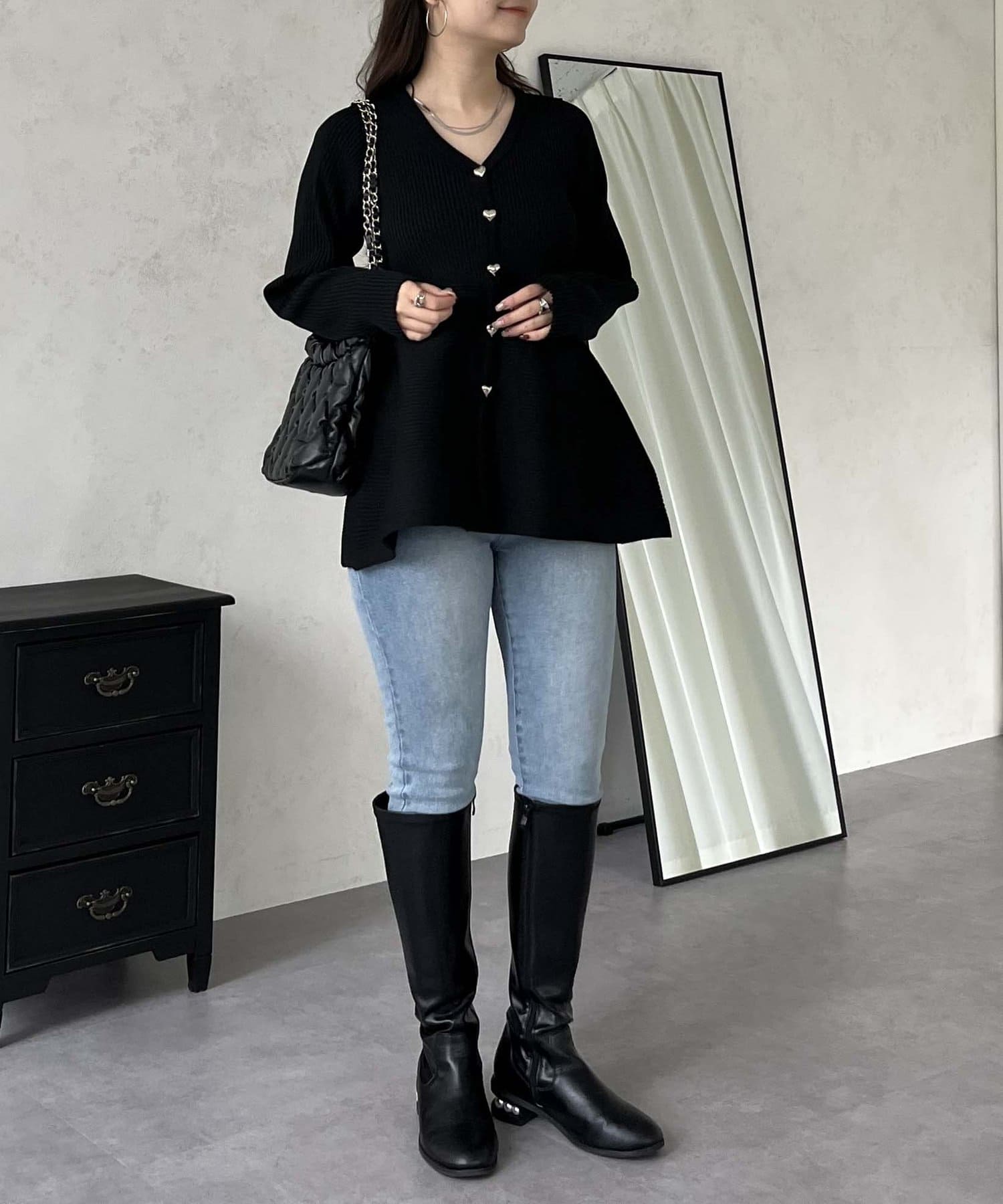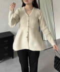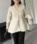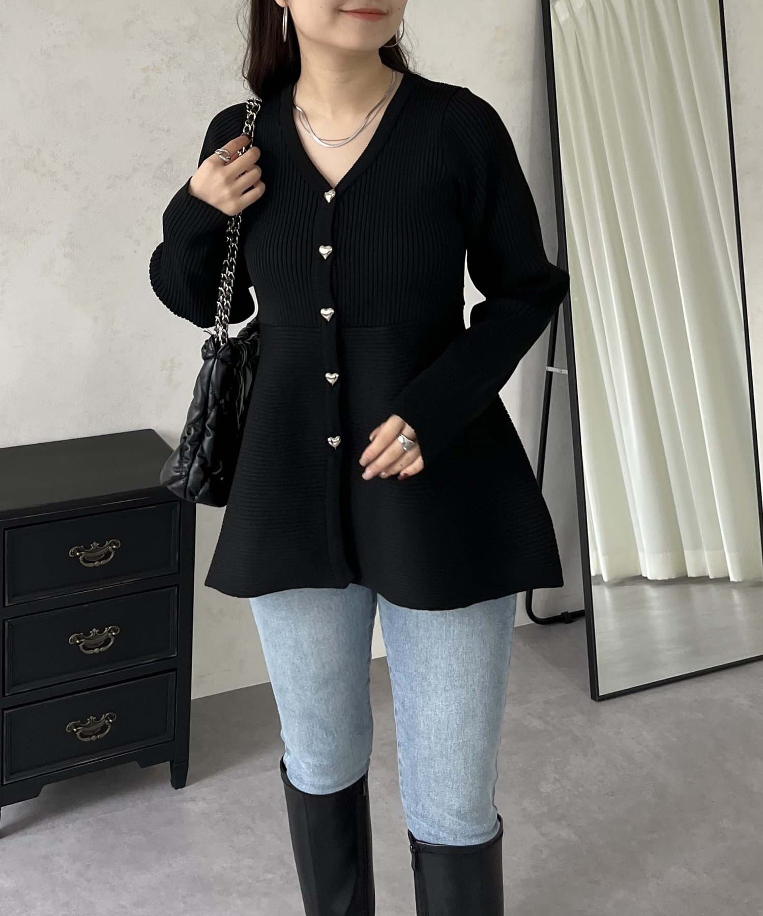 ハートボタンVネックリブペプラムカーディガン