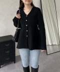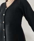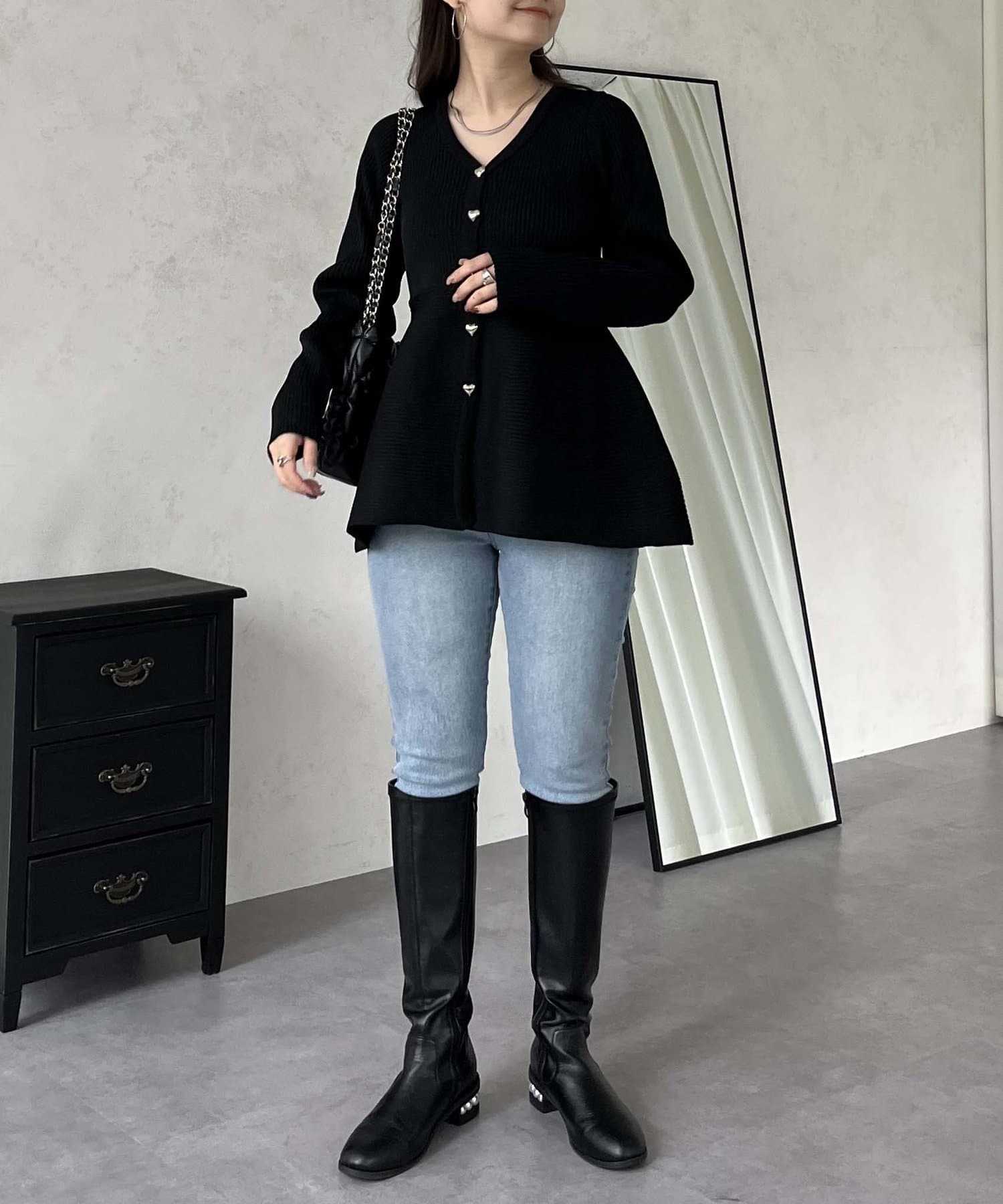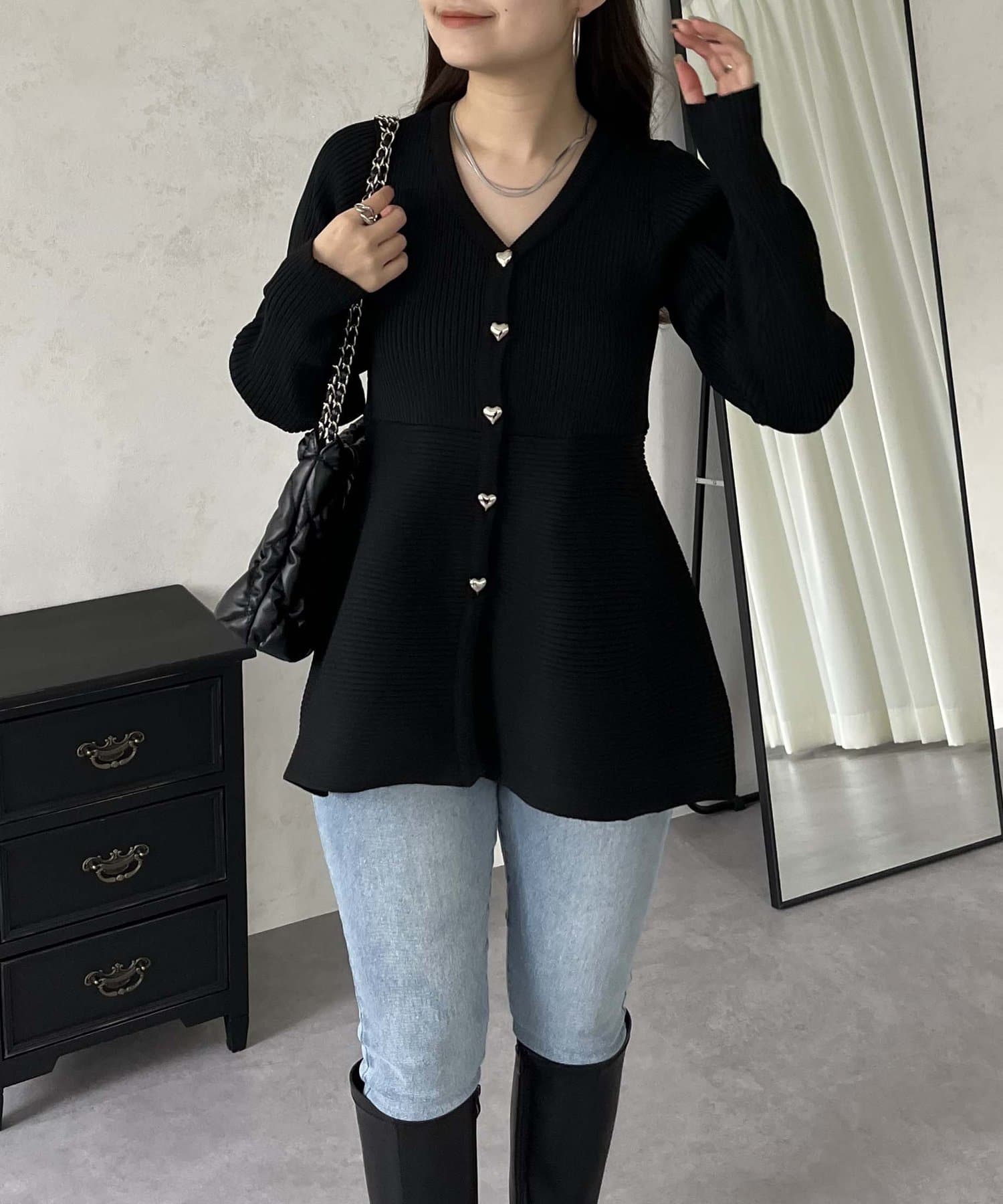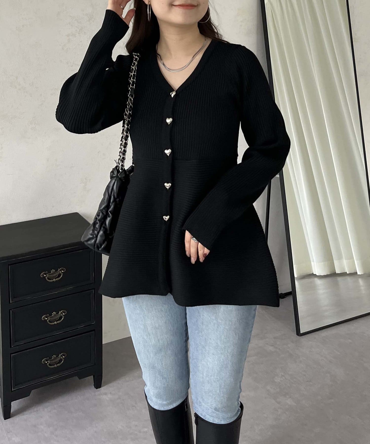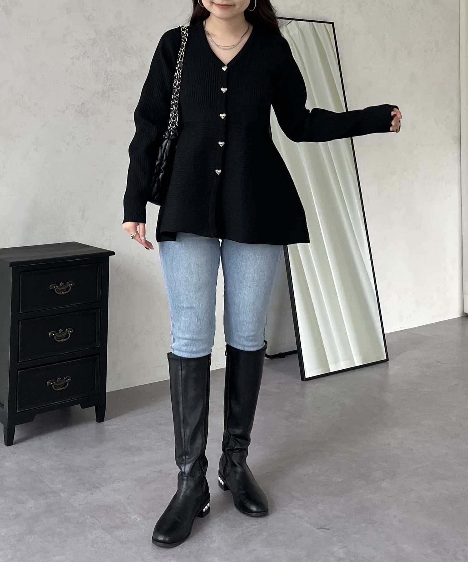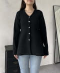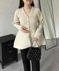 ハートボタンVネックリブペプラムカーディガン
