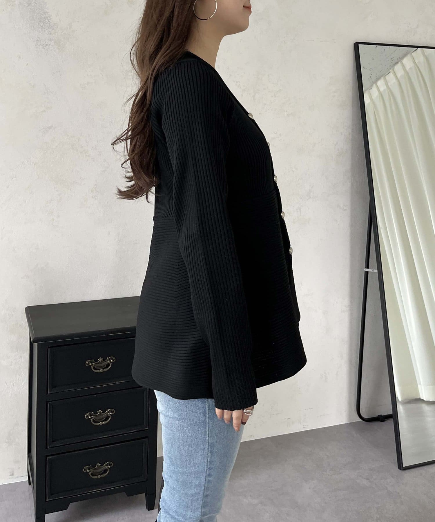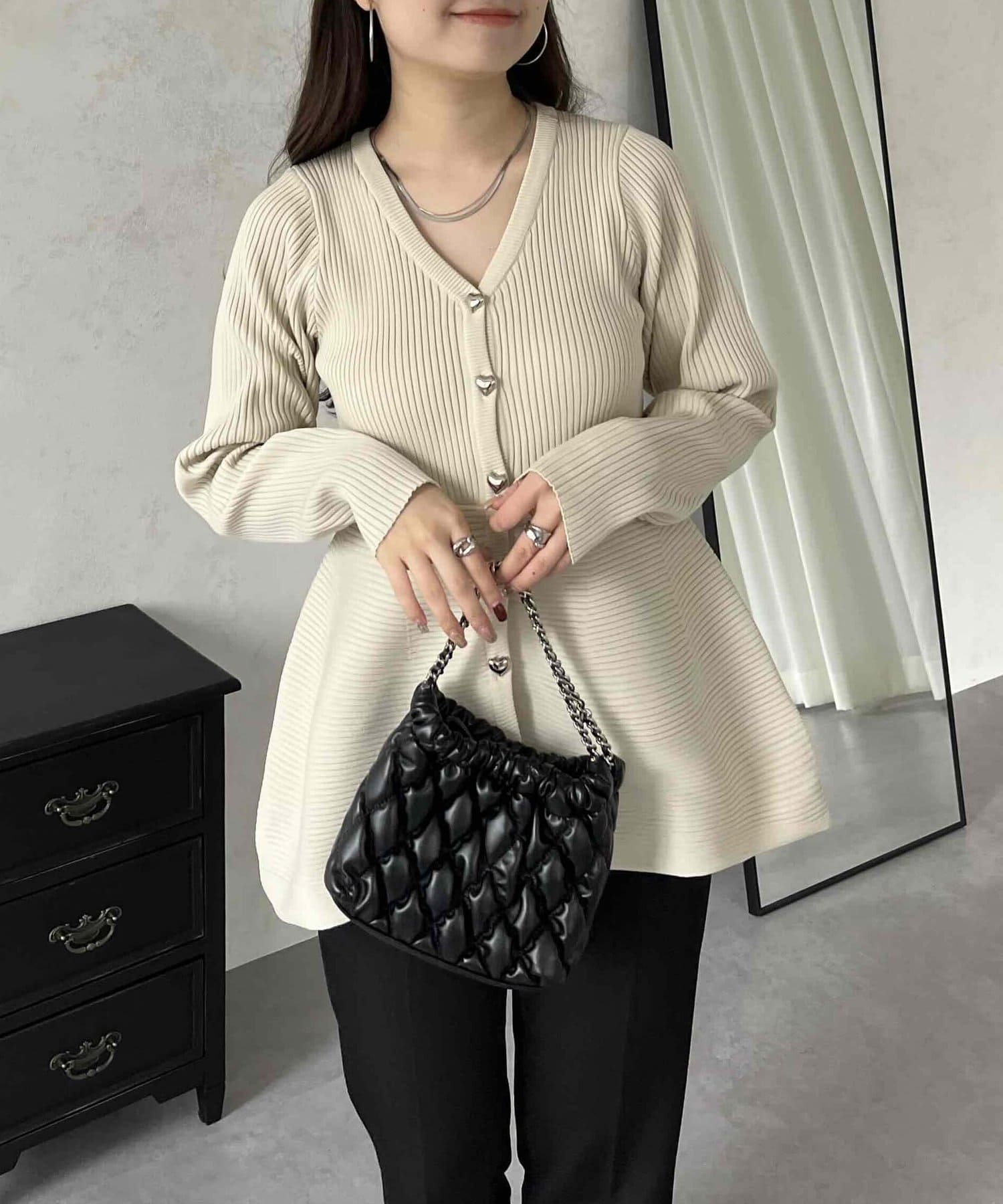 prose verse(プロズヴェール) ハートボタンVネックリブペプラムカーディガン