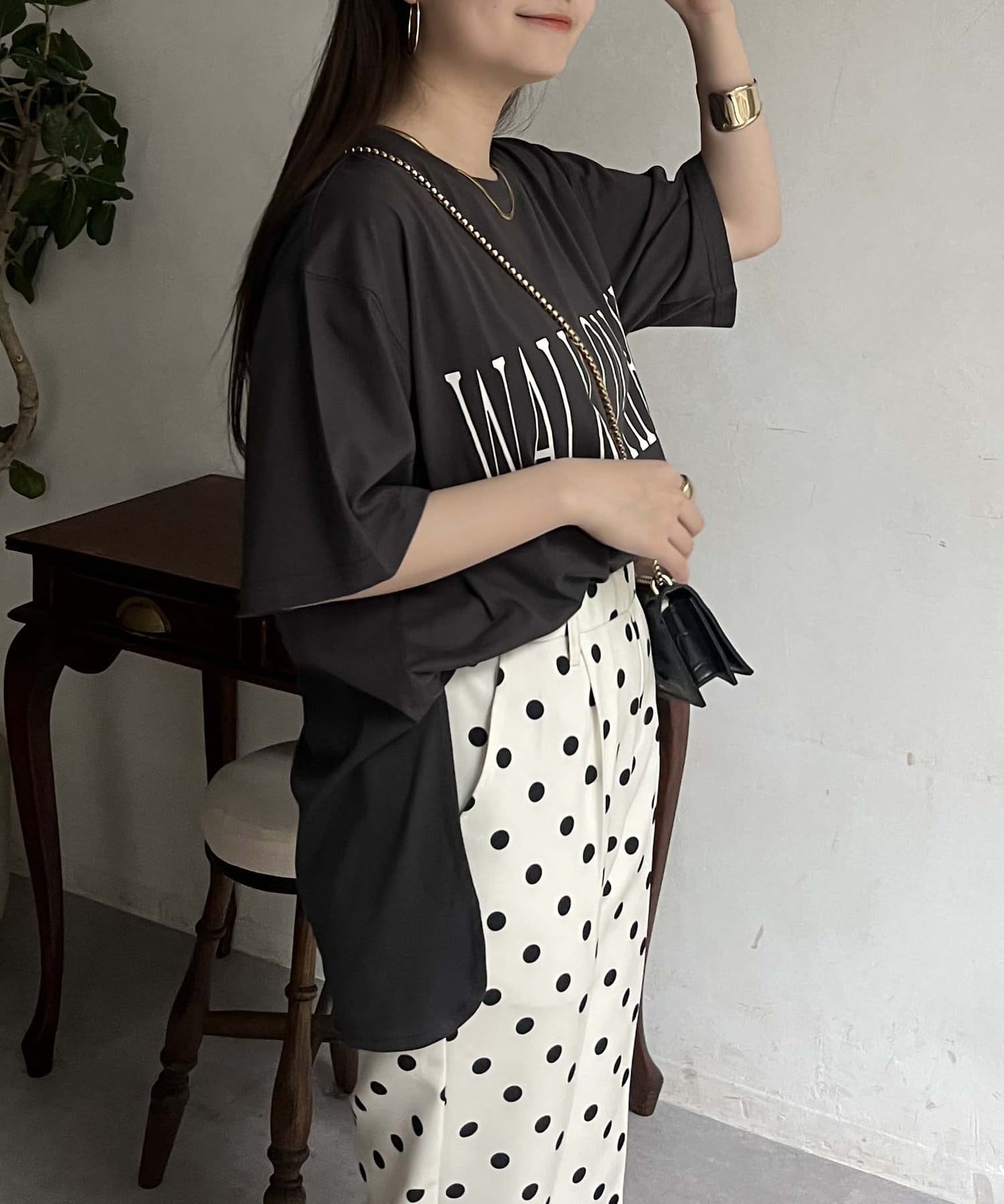 ロゴ/Tシャツ/ラウンドヘム/大人カジュアル