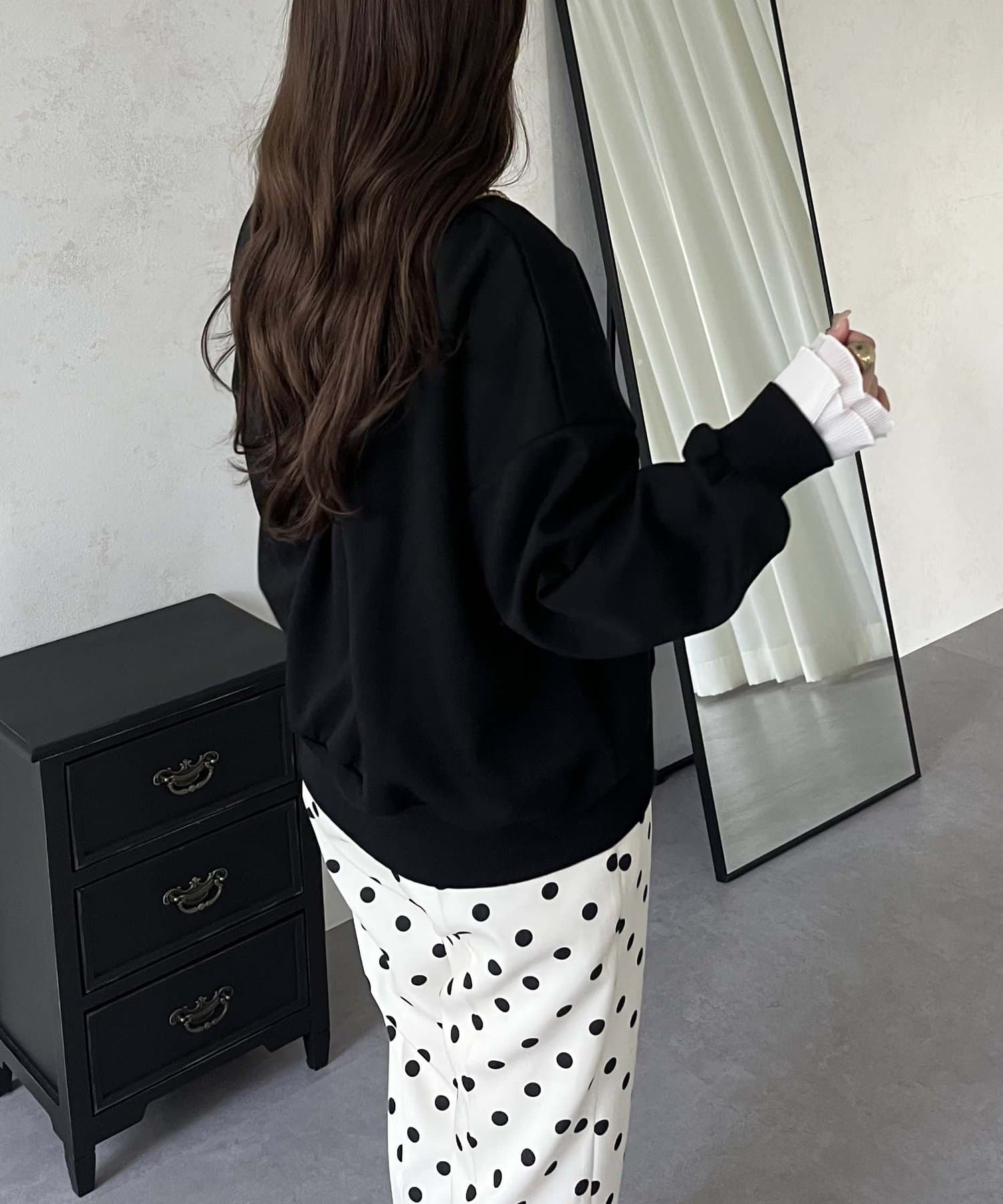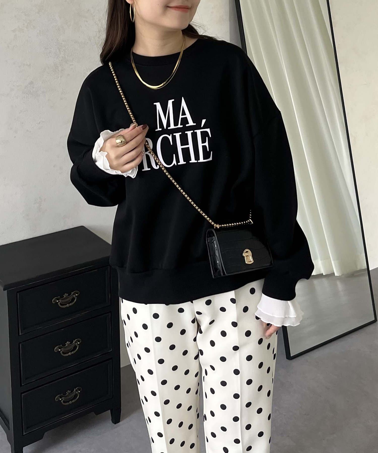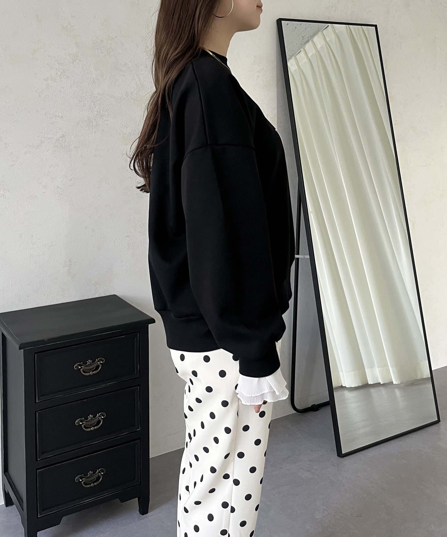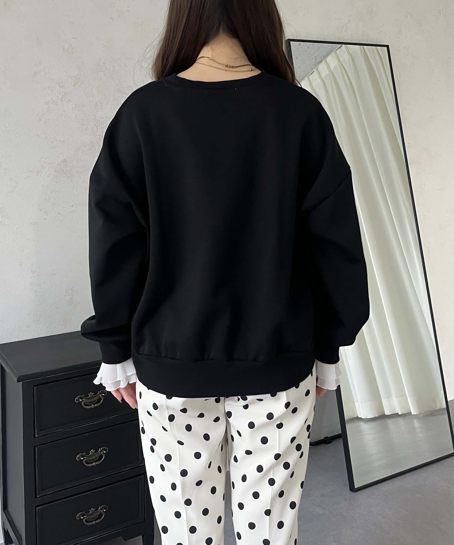 ●スウェットとロンTの間くらいの分厚さがある生地にプラスで袖口にフリルが施されているのがポイント!