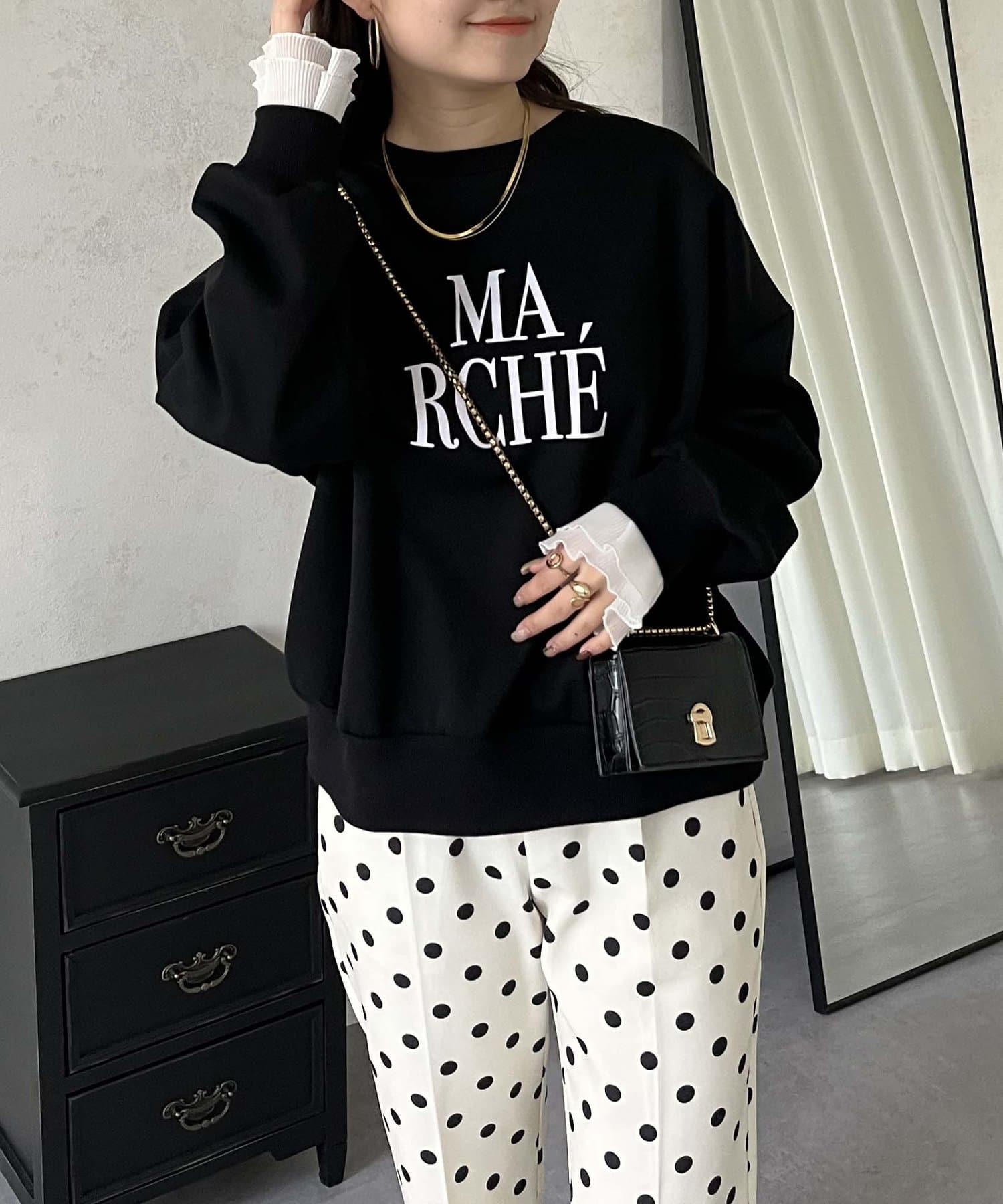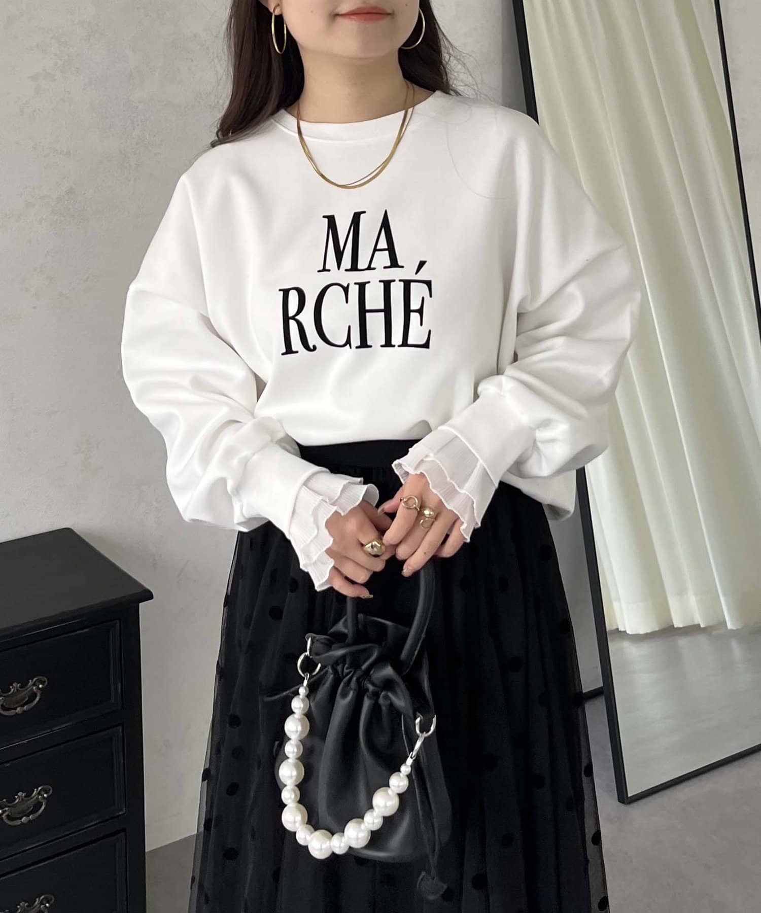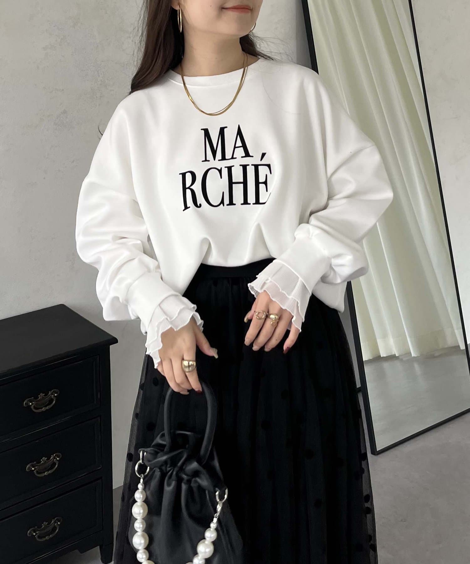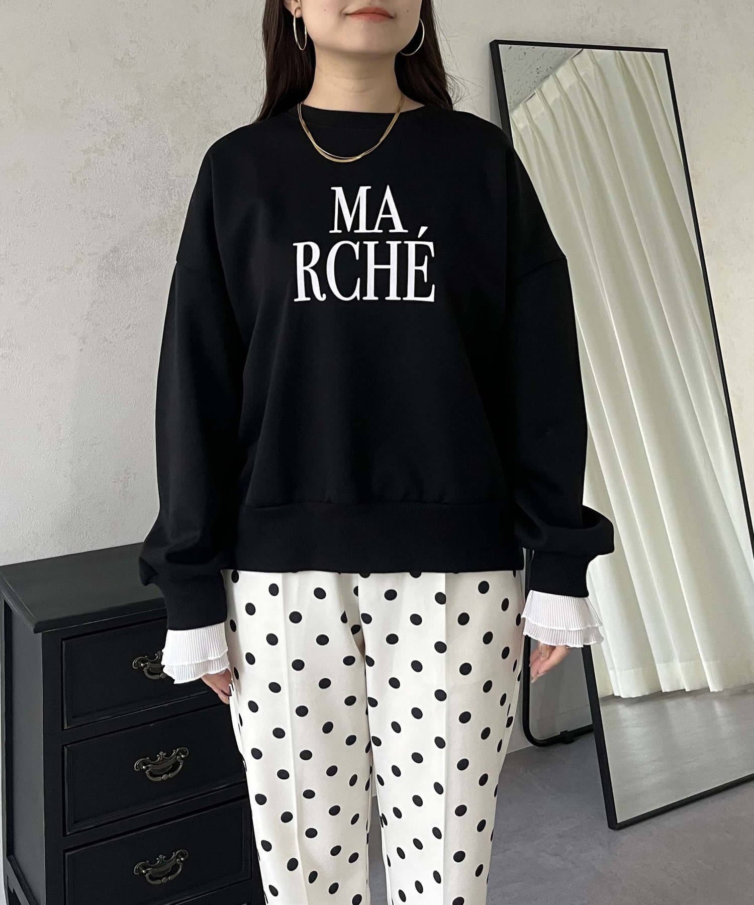 ●スウェットとロンTの間くらいの分厚さがある生地にプラスで袖口にフリルが施されているのがポイント!