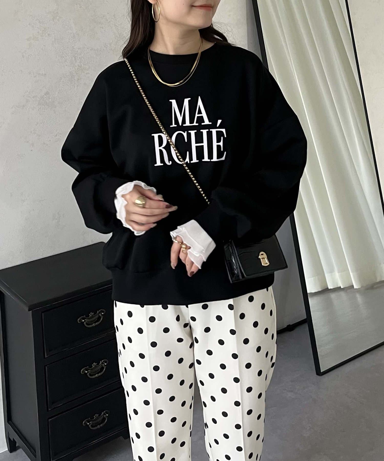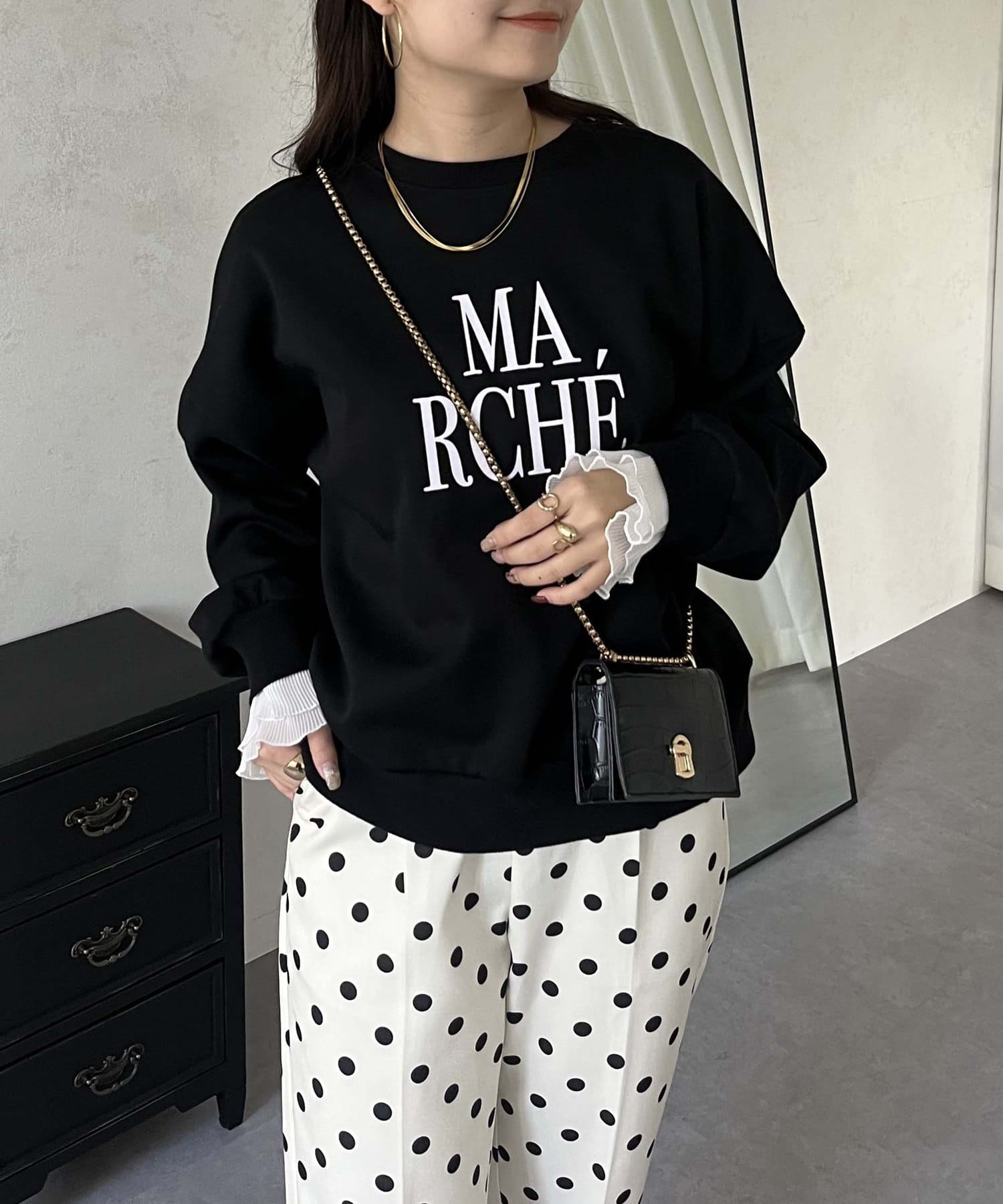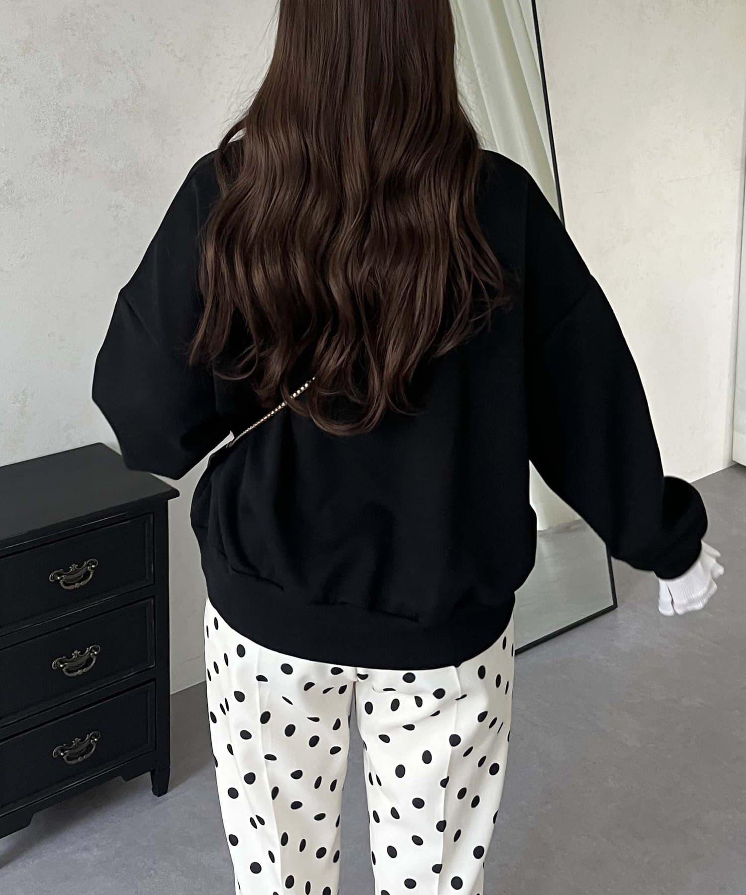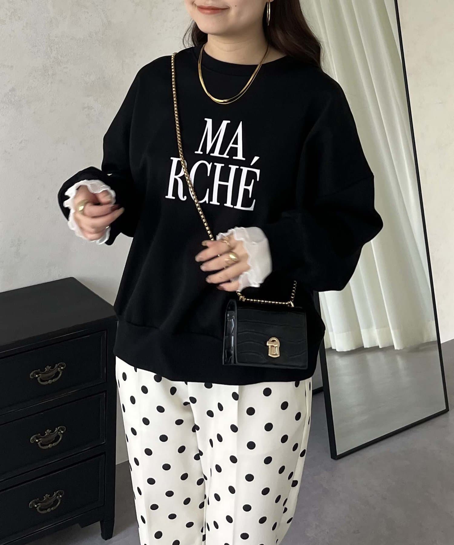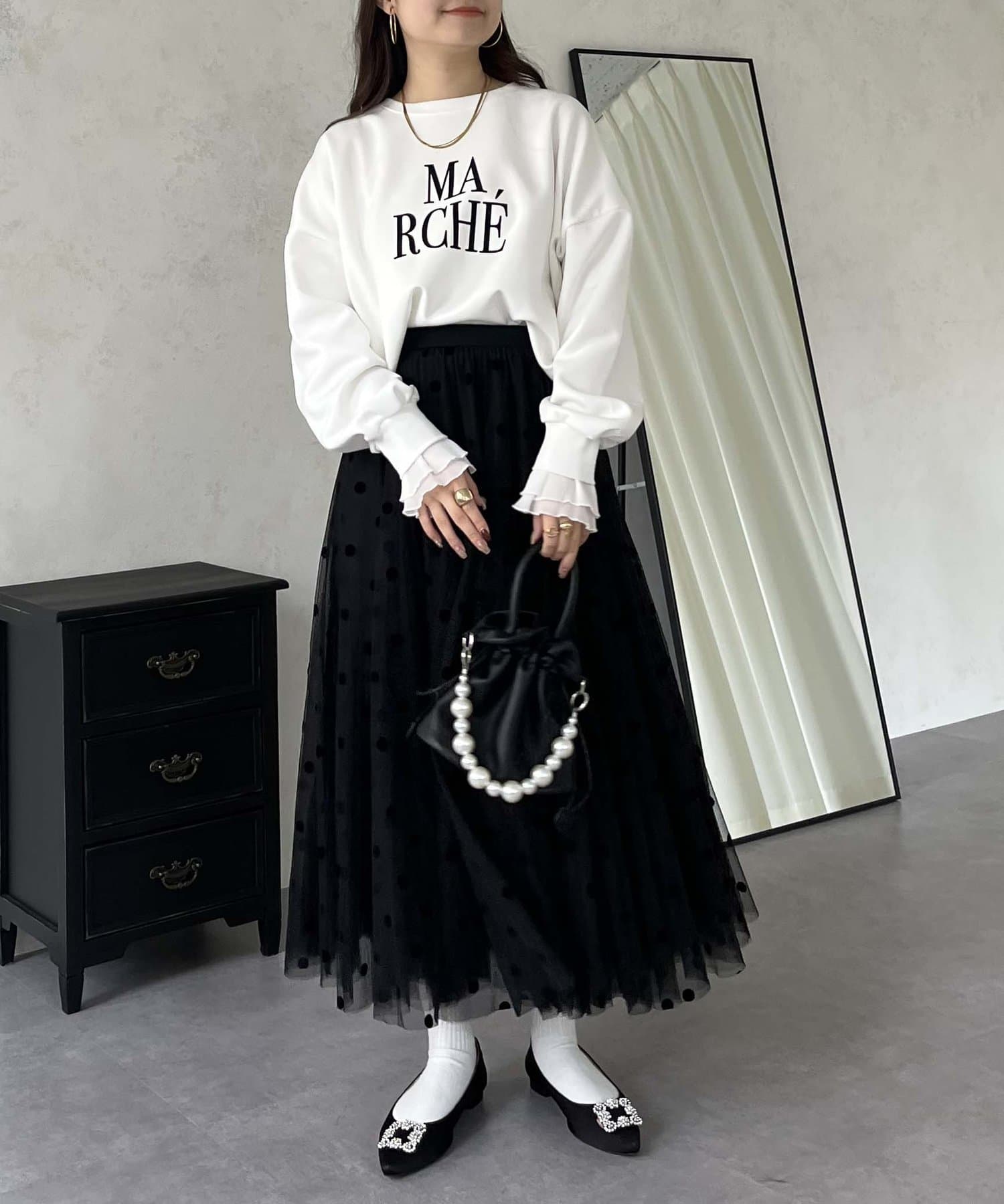 ●スウェットとロンTの間くらいの分厚さがある生地にプラスで袖口にフリルが施されているのがポイント!