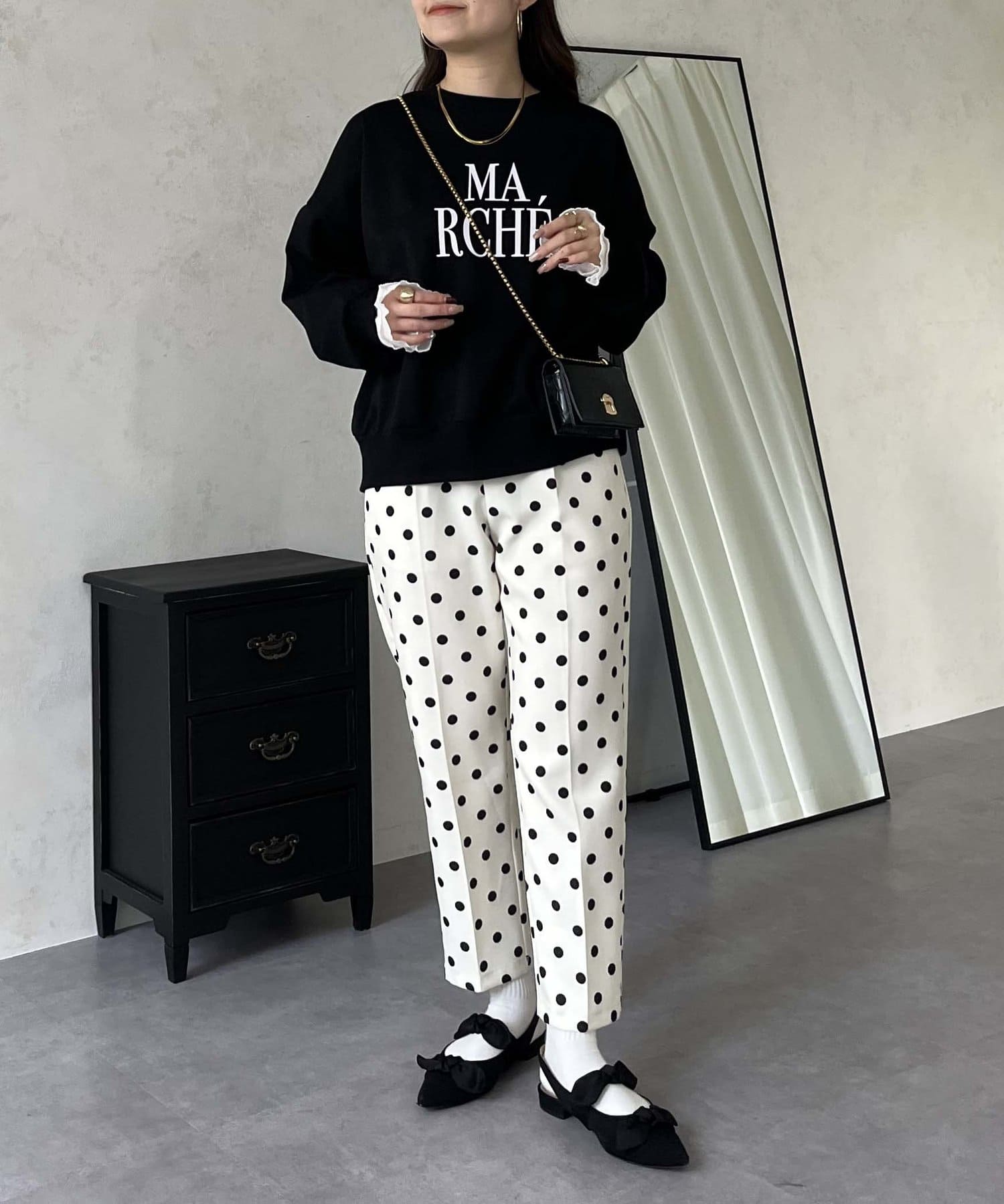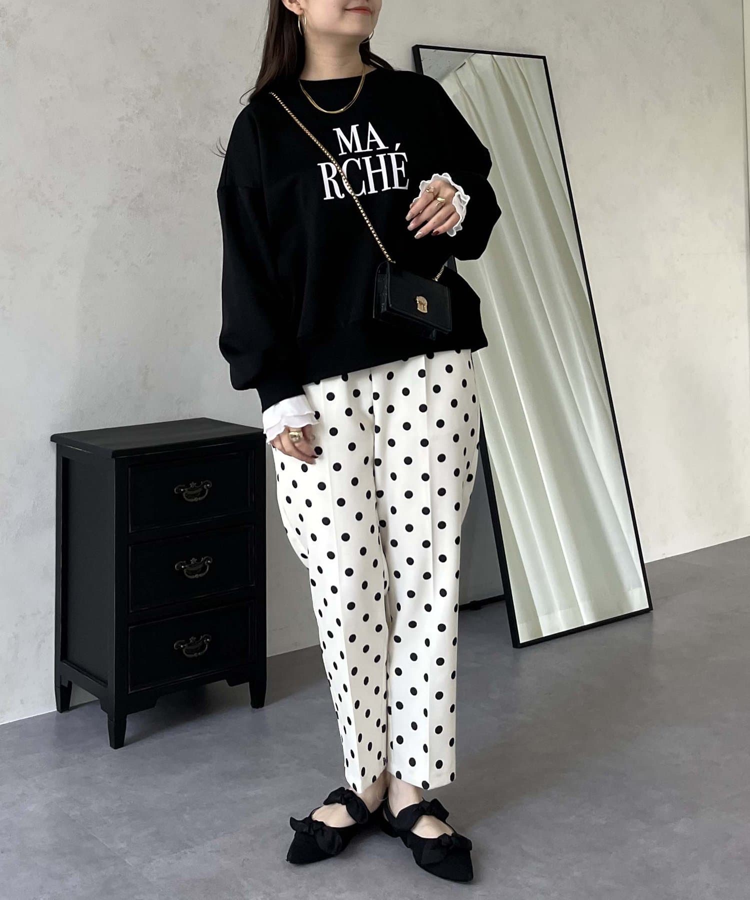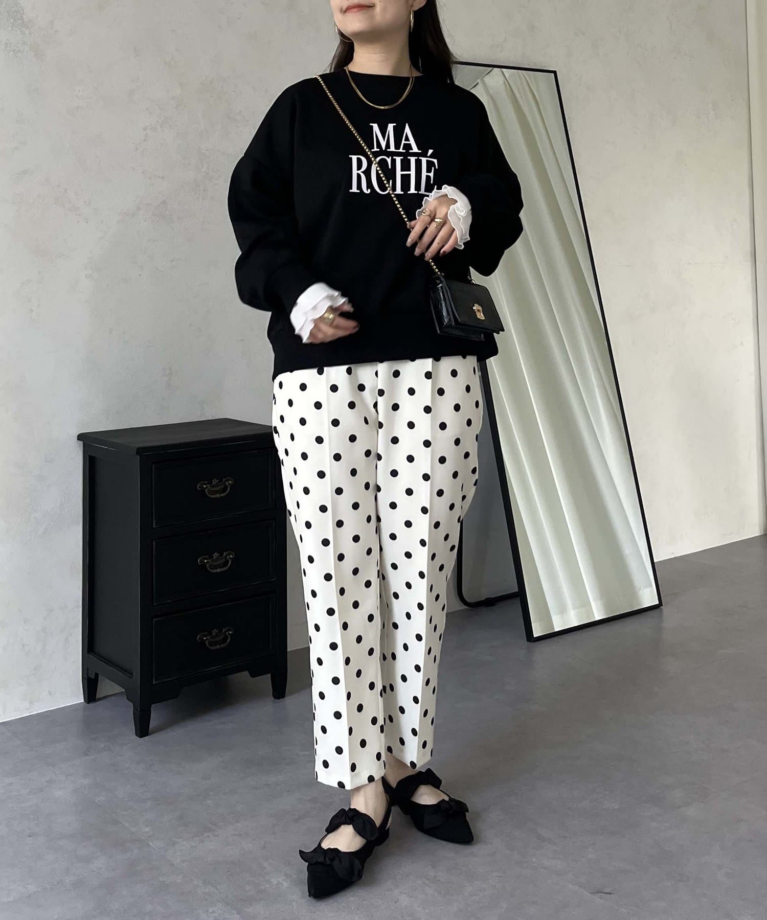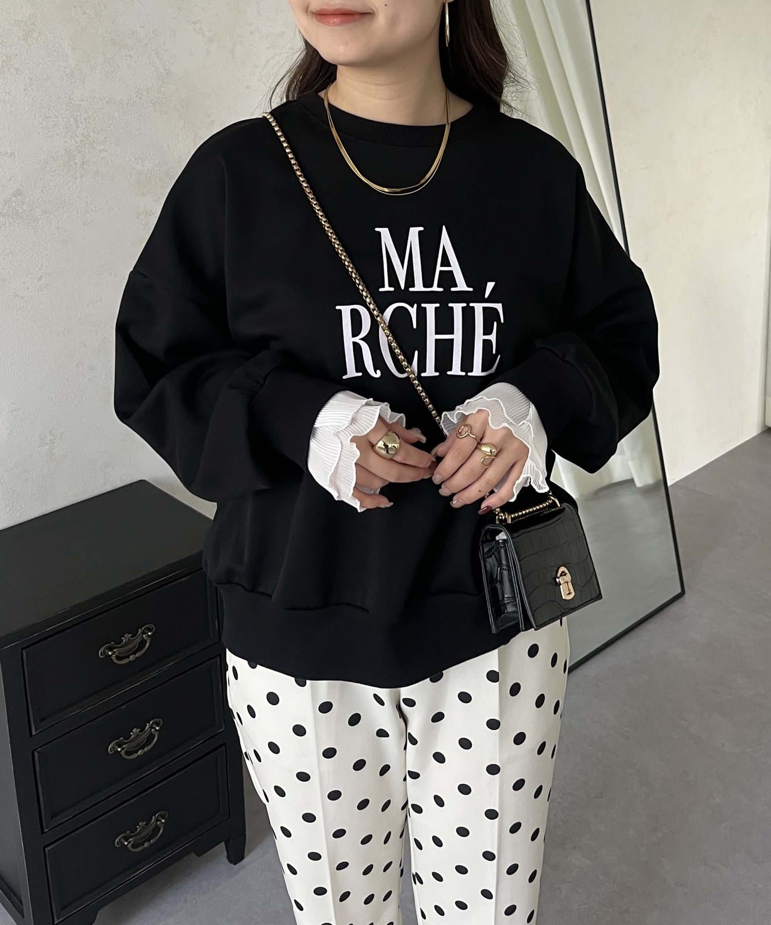 ●スウェットとロンTの間くらいの分厚さがある生地にプラスで袖口にフリルが施されているのがポイント!