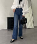 ハイウエスト/ストレッチ/フレアデニム/大人カジュアル/シンプル