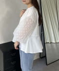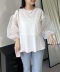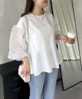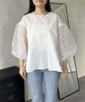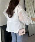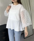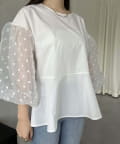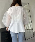 シアードットボリュームスリーブペプラムブラウス
