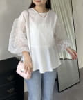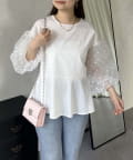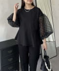 シアー/ボリュームスリーブ/ドット/ペプラム/大人可愛い