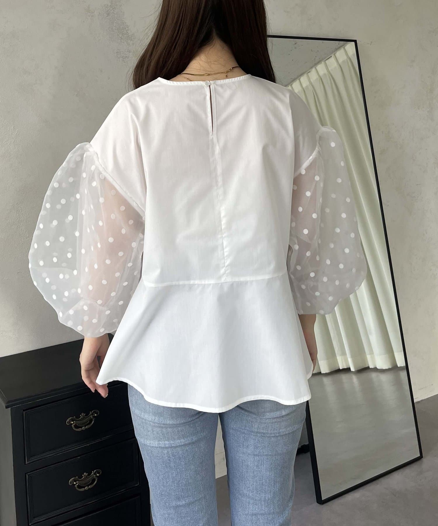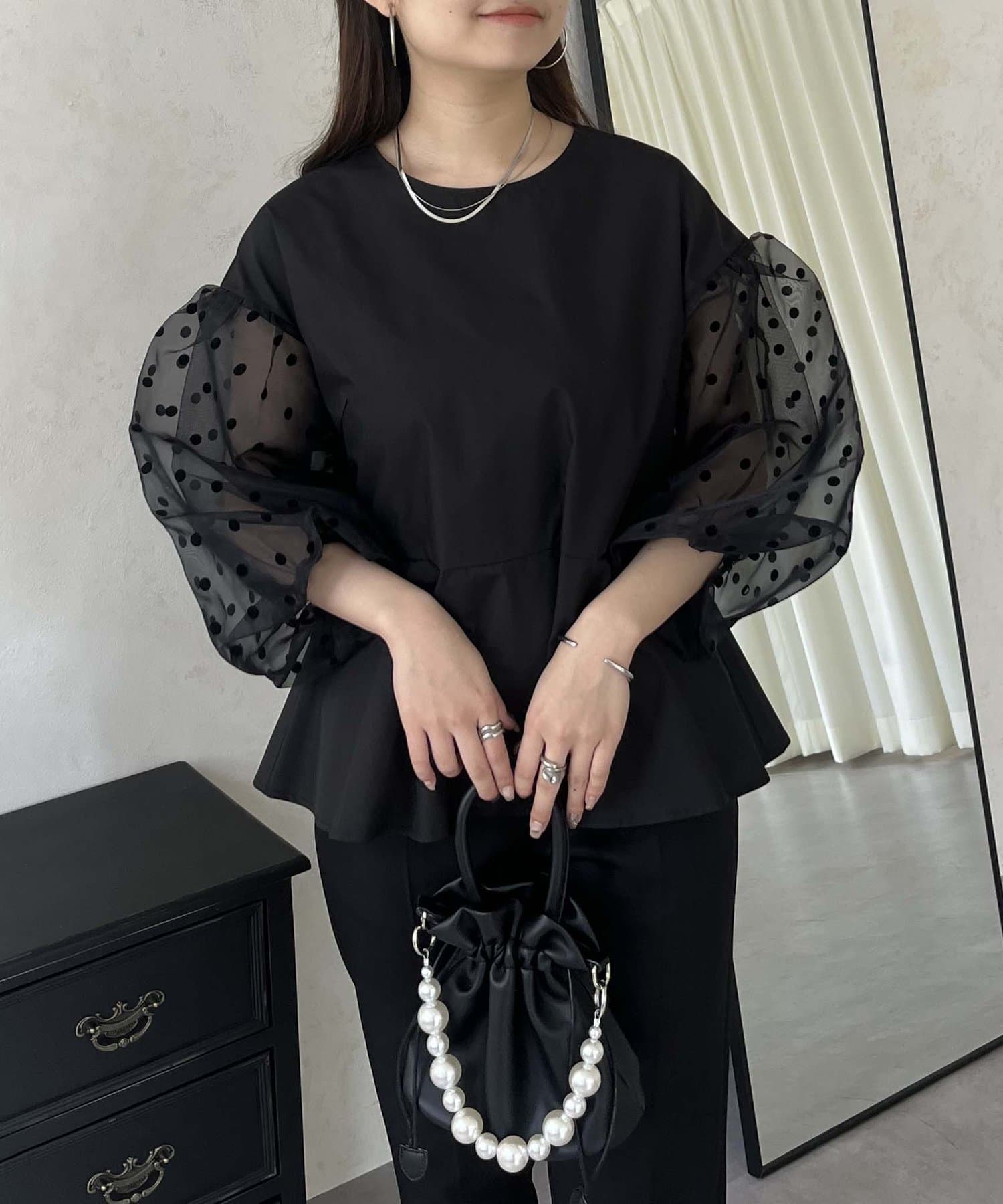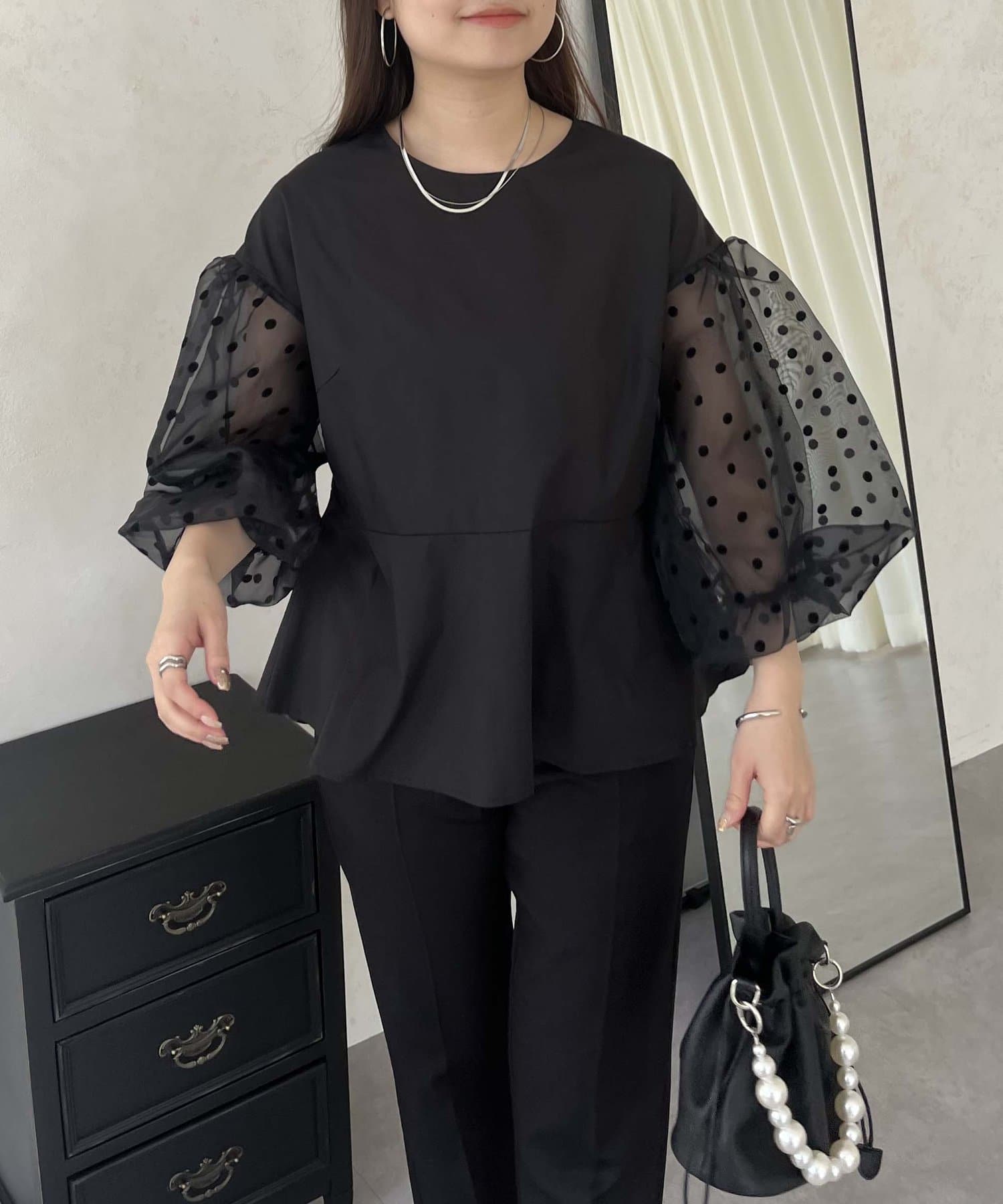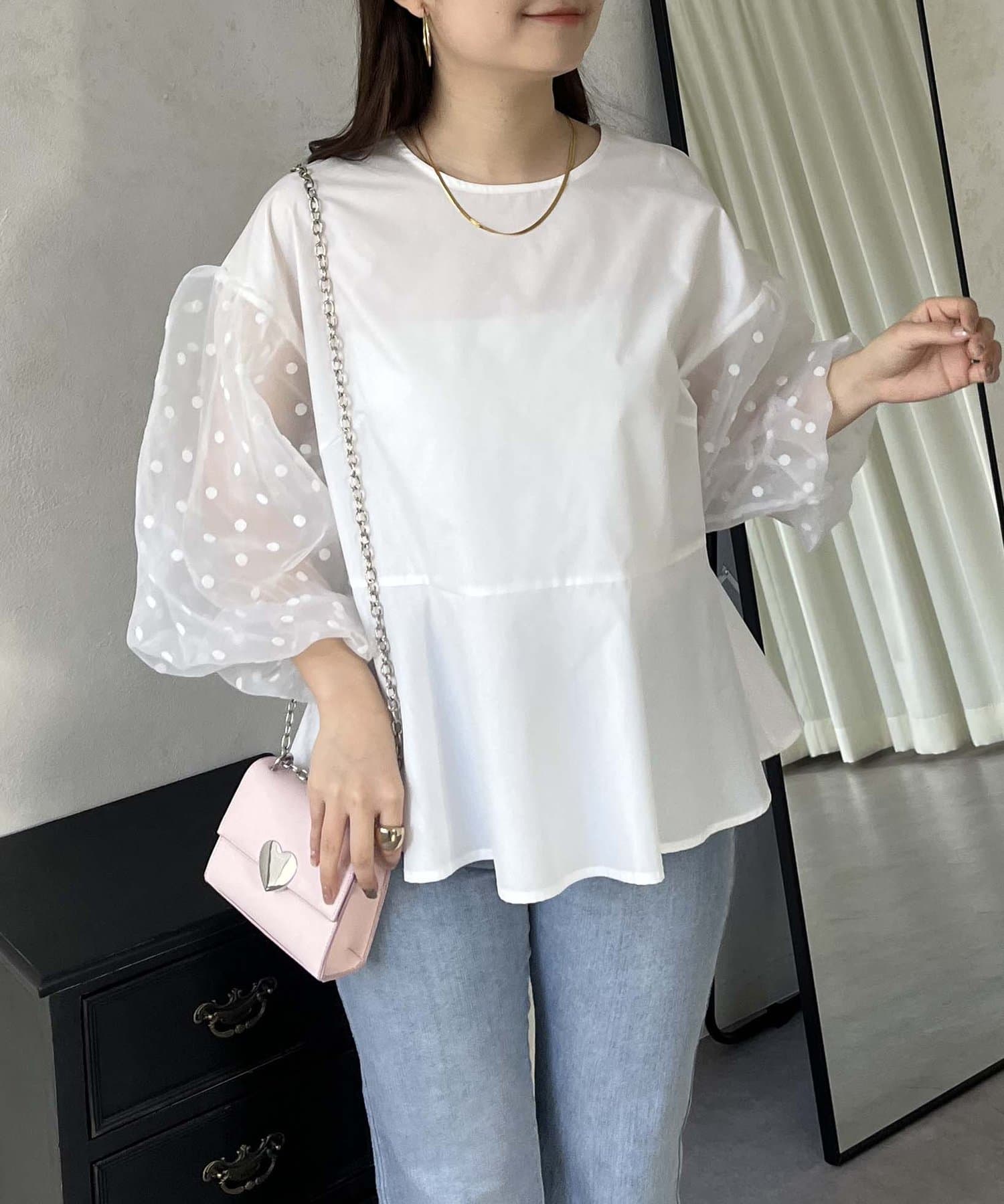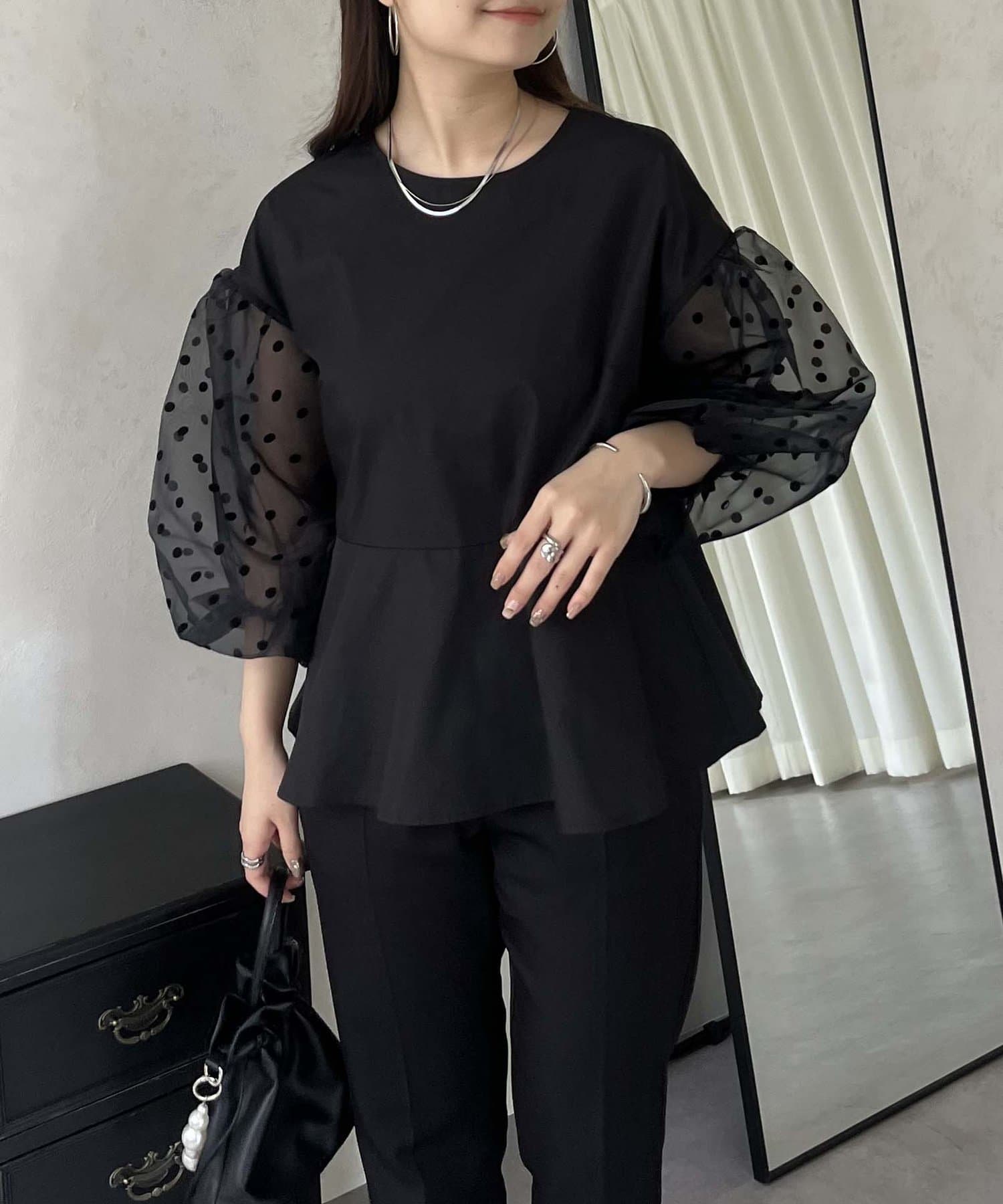 シアー/ボリュームスリーブ/ドット/ペプラム/大人可愛い
