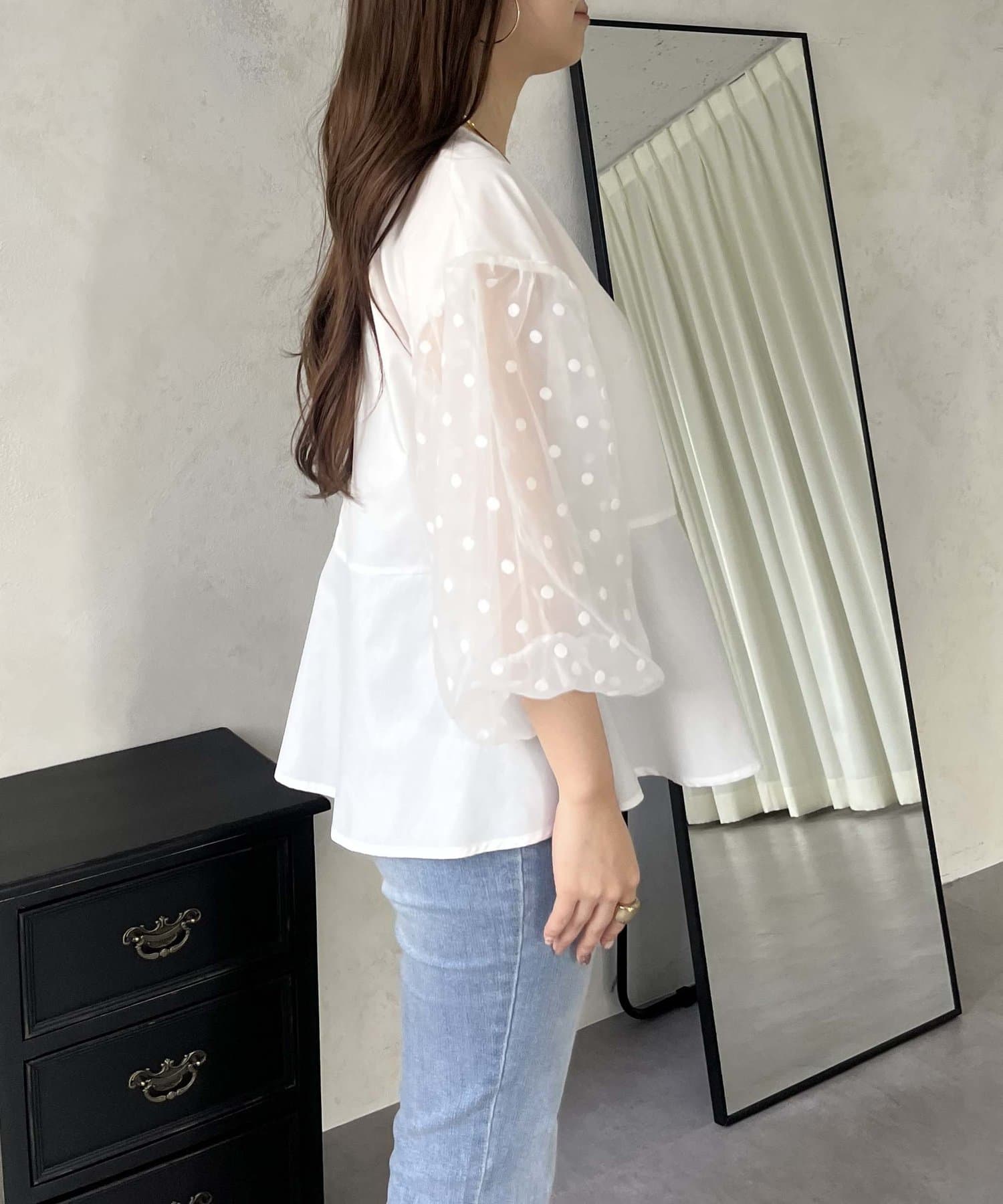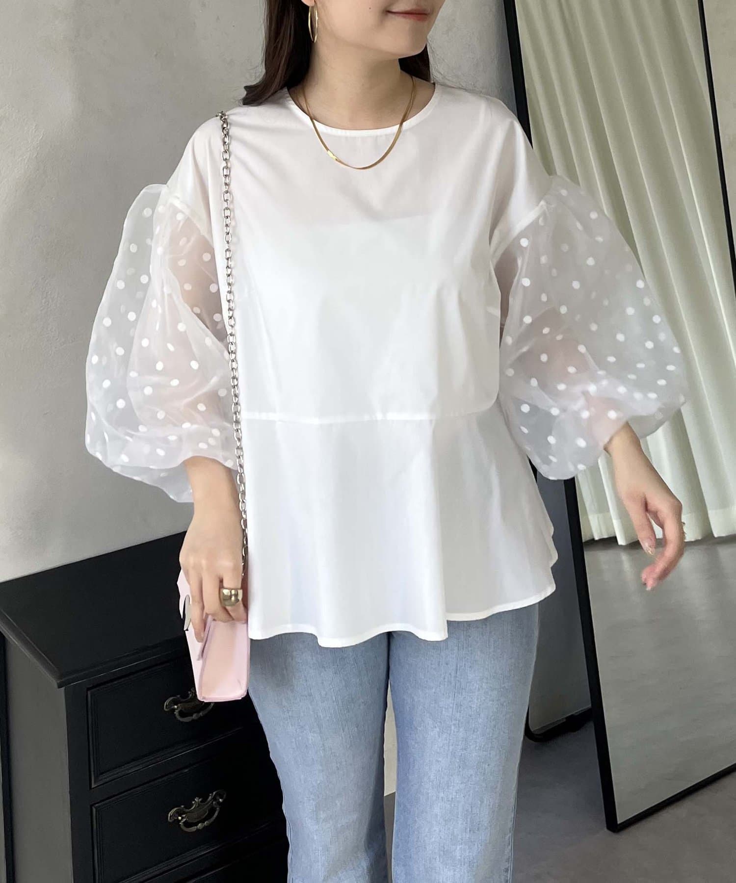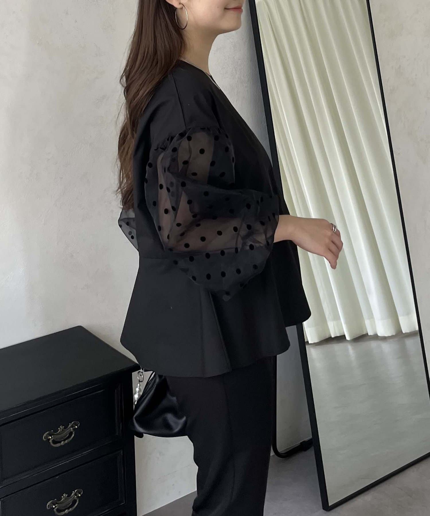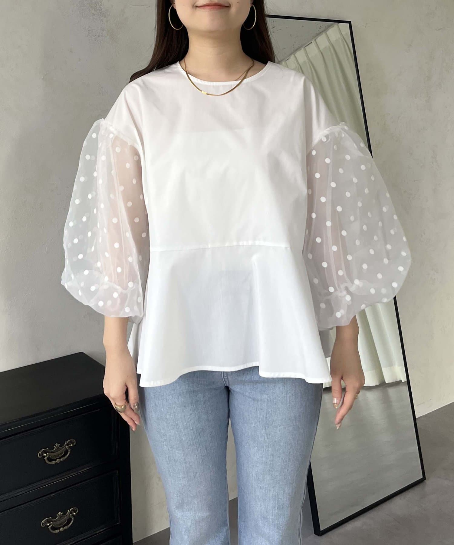 シアー/ボリュームスリーブ/ドット/ペプラム/大人可愛い
