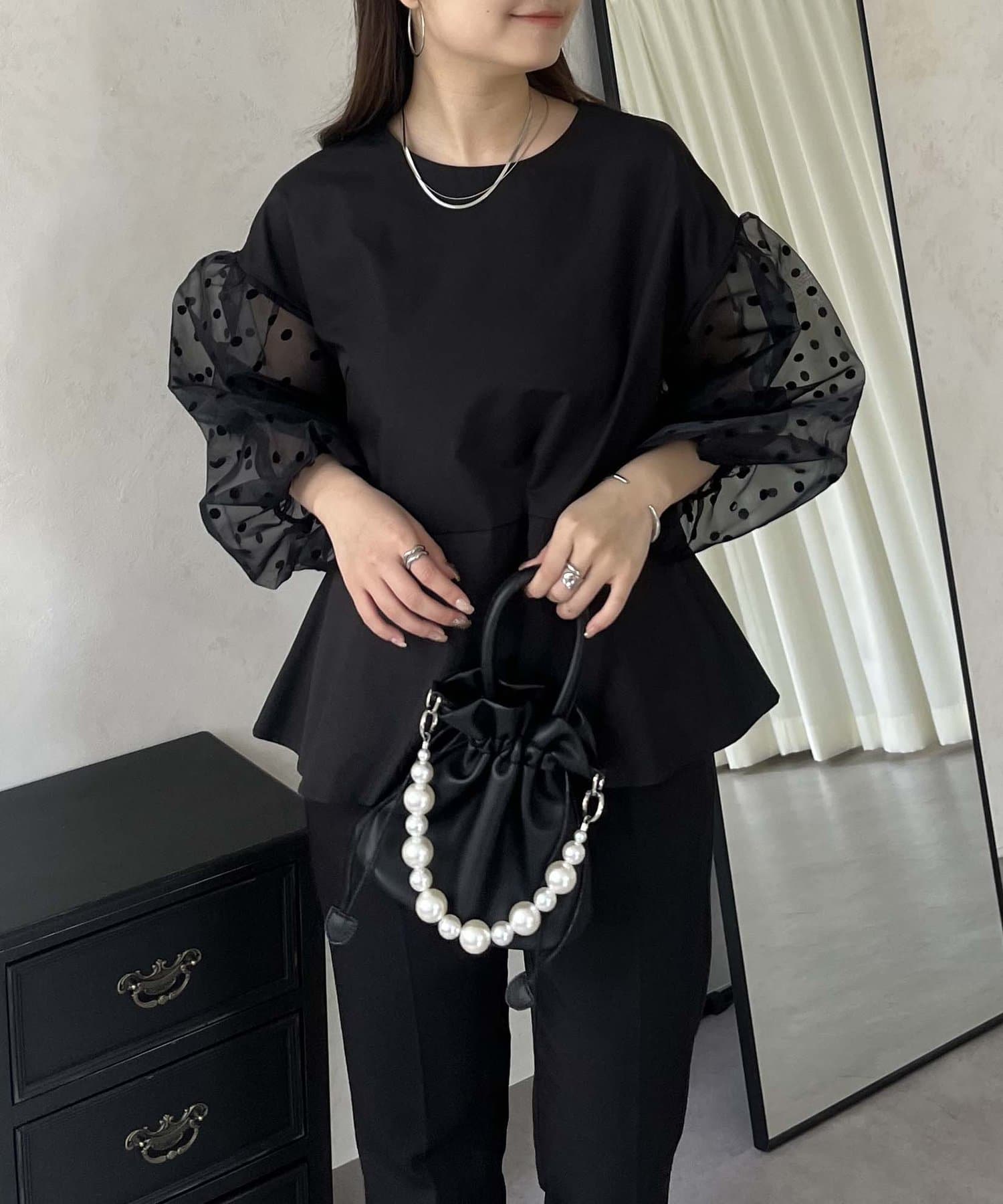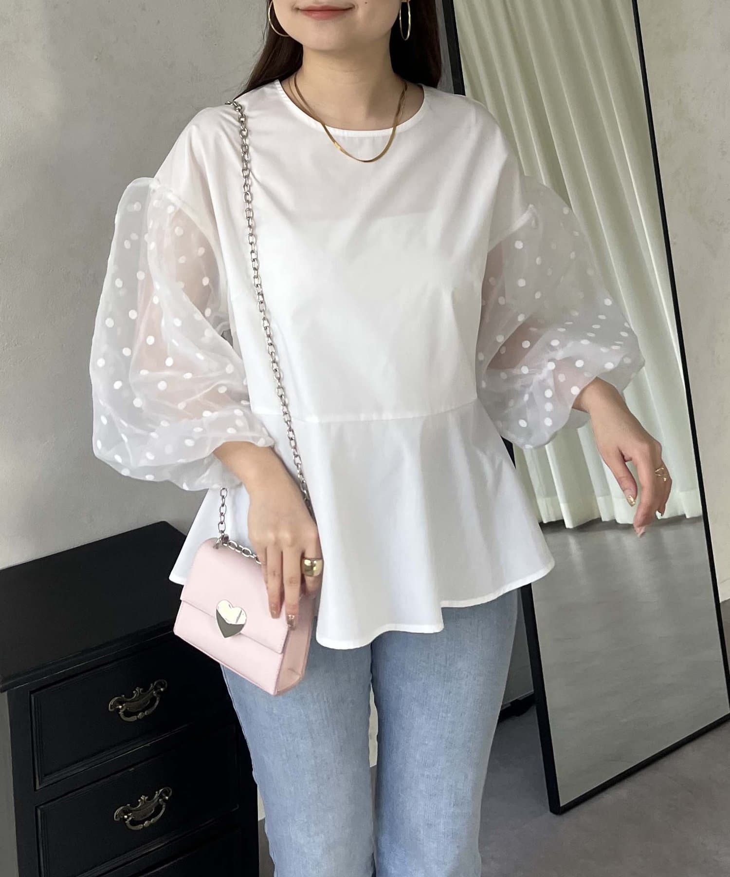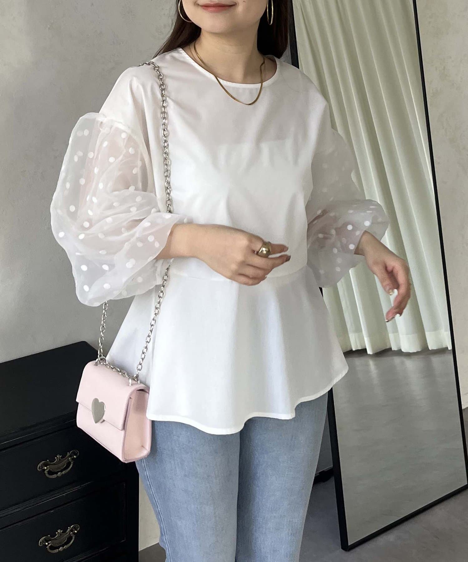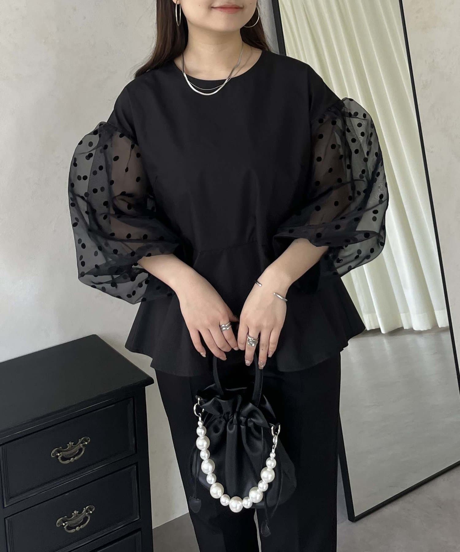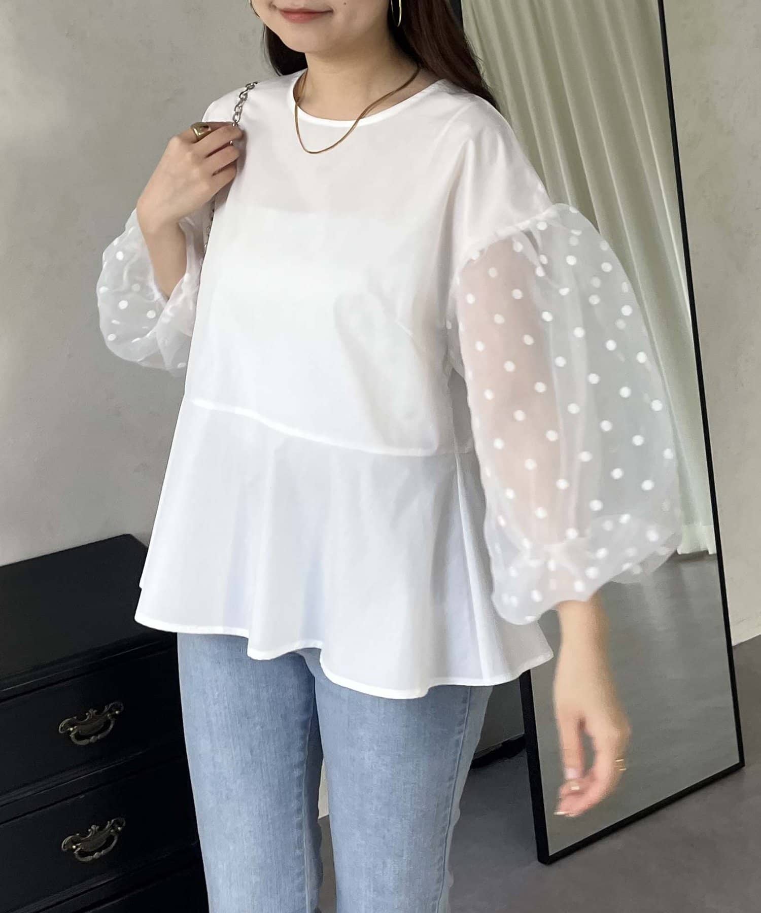 シアー/ボリュームスリーブ/ドット/ペプラム/大人可愛い