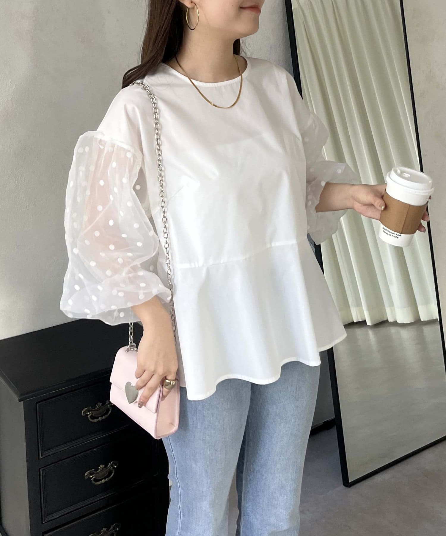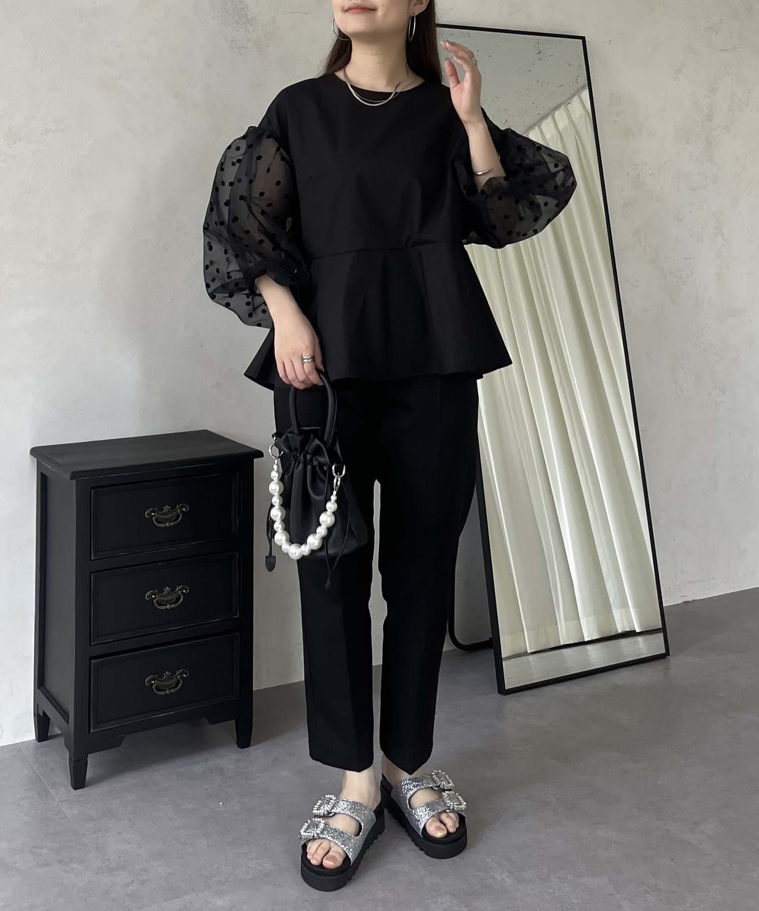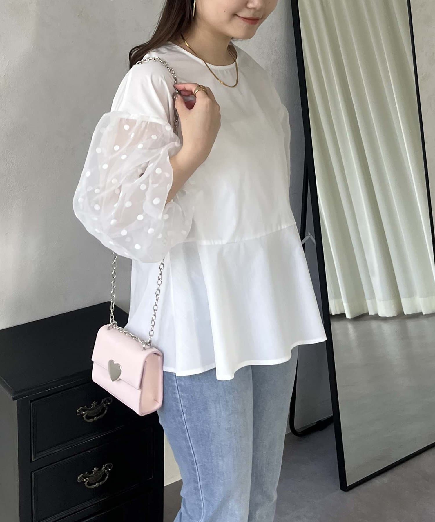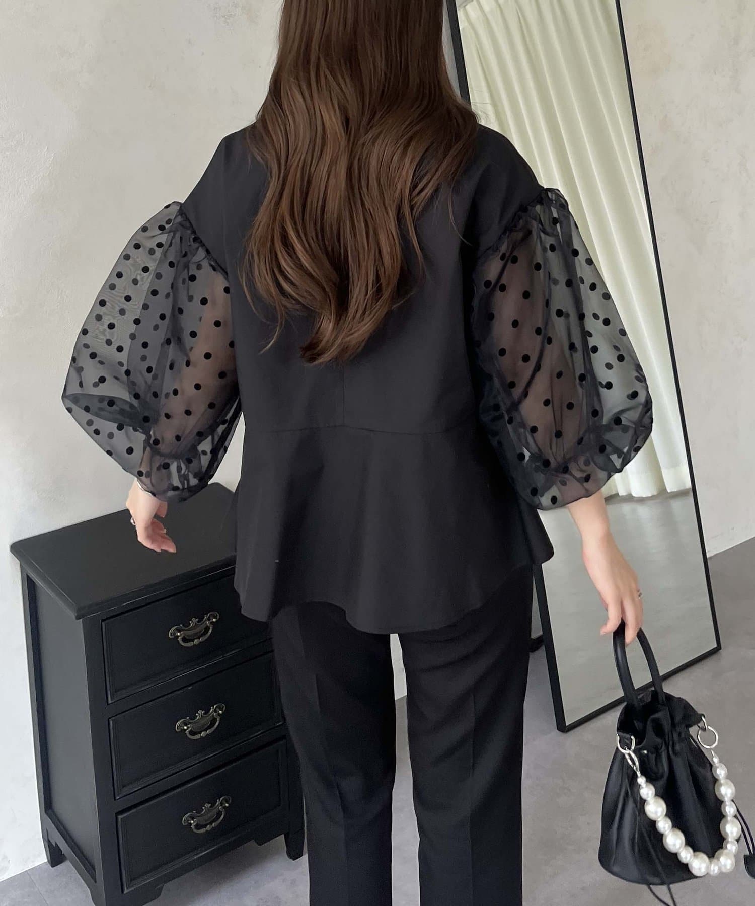 シアー/ボリュームスリーブ/ドット/ペプラム/大人可愛い