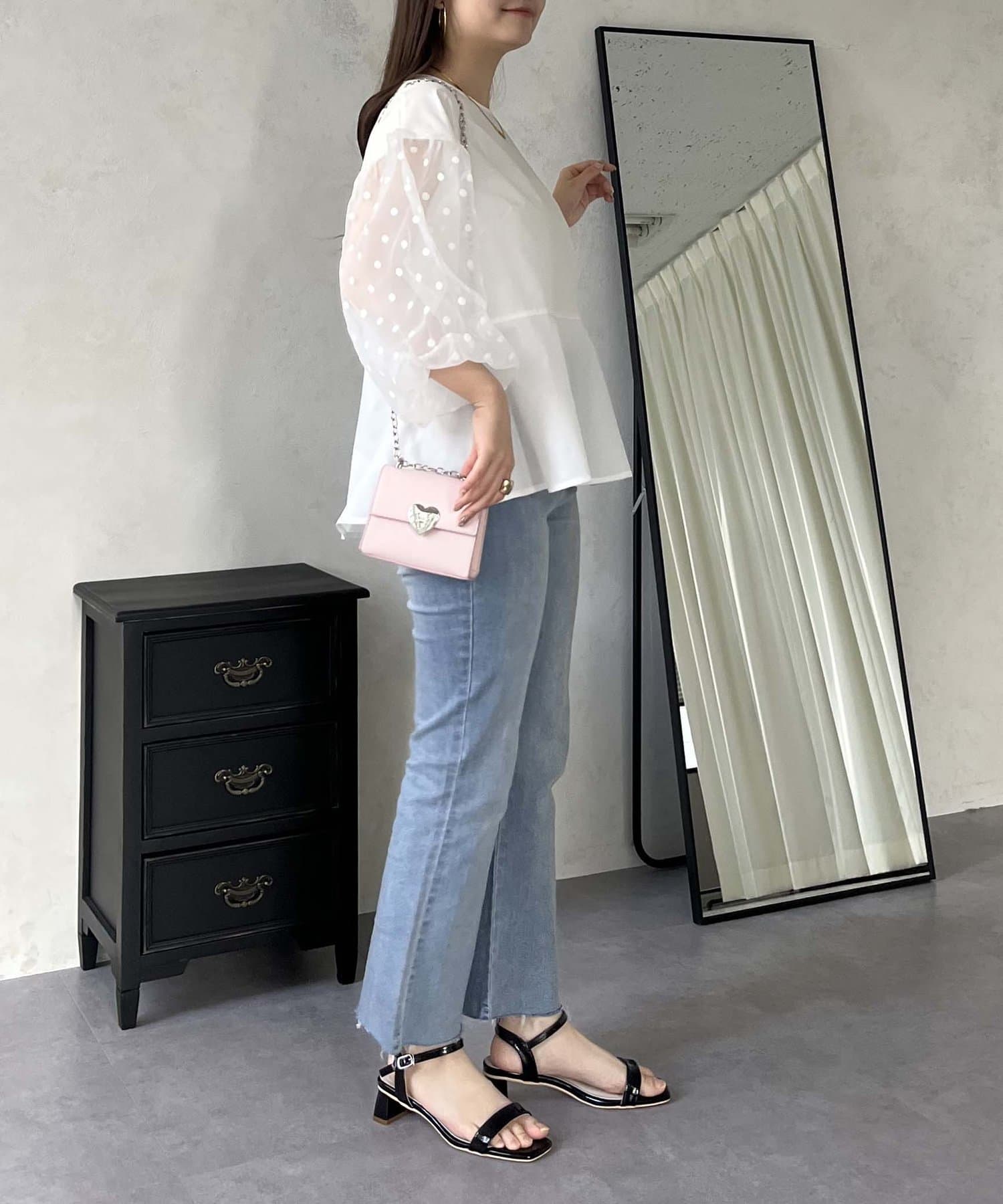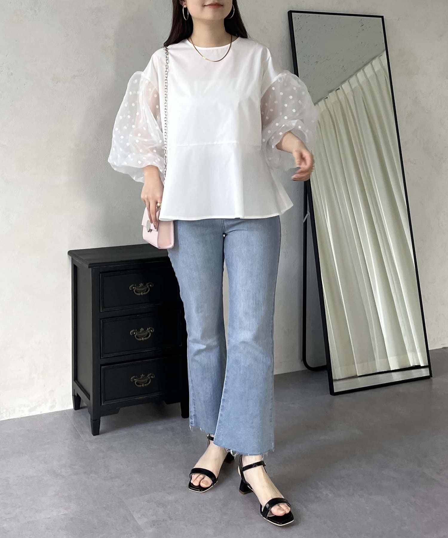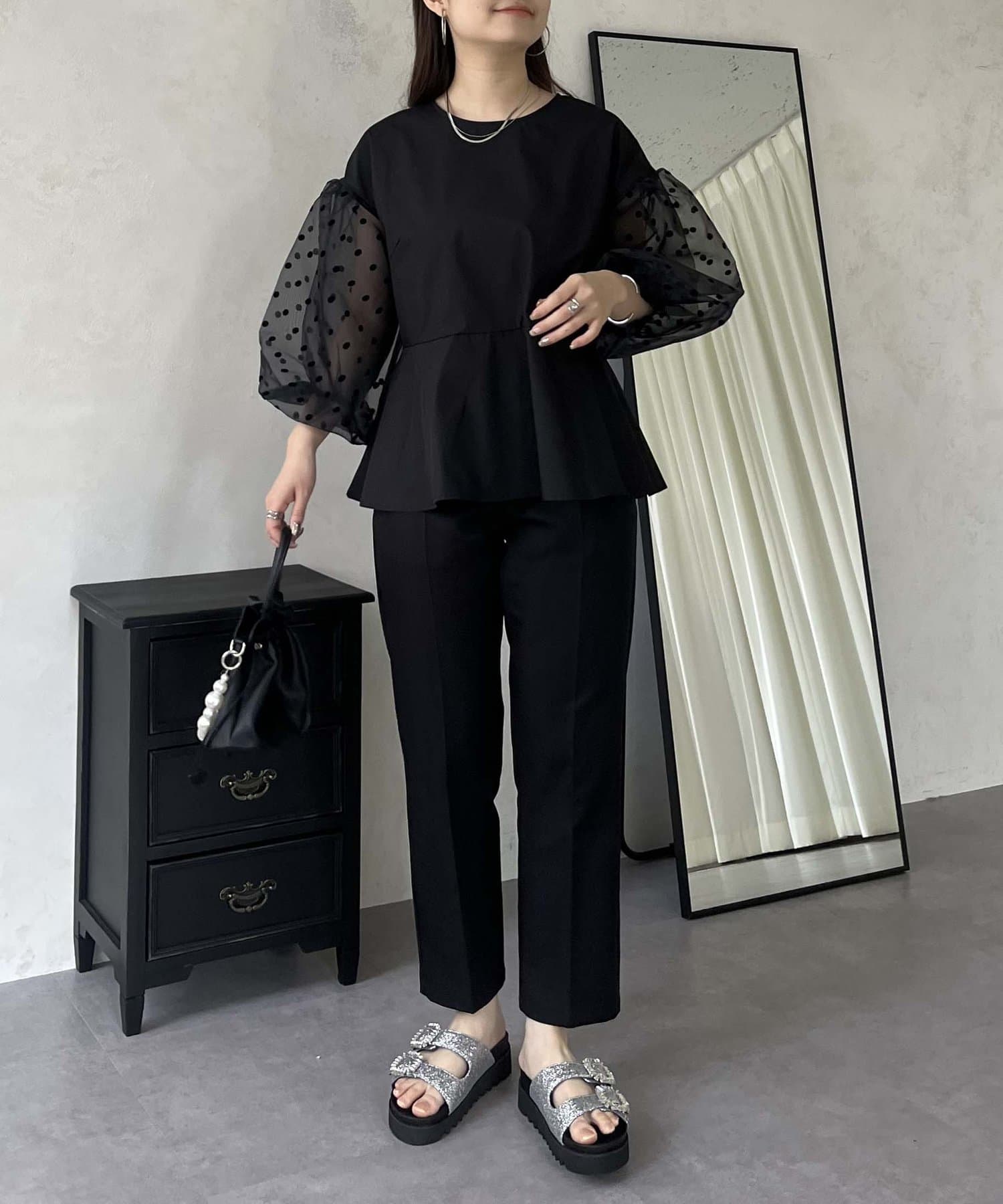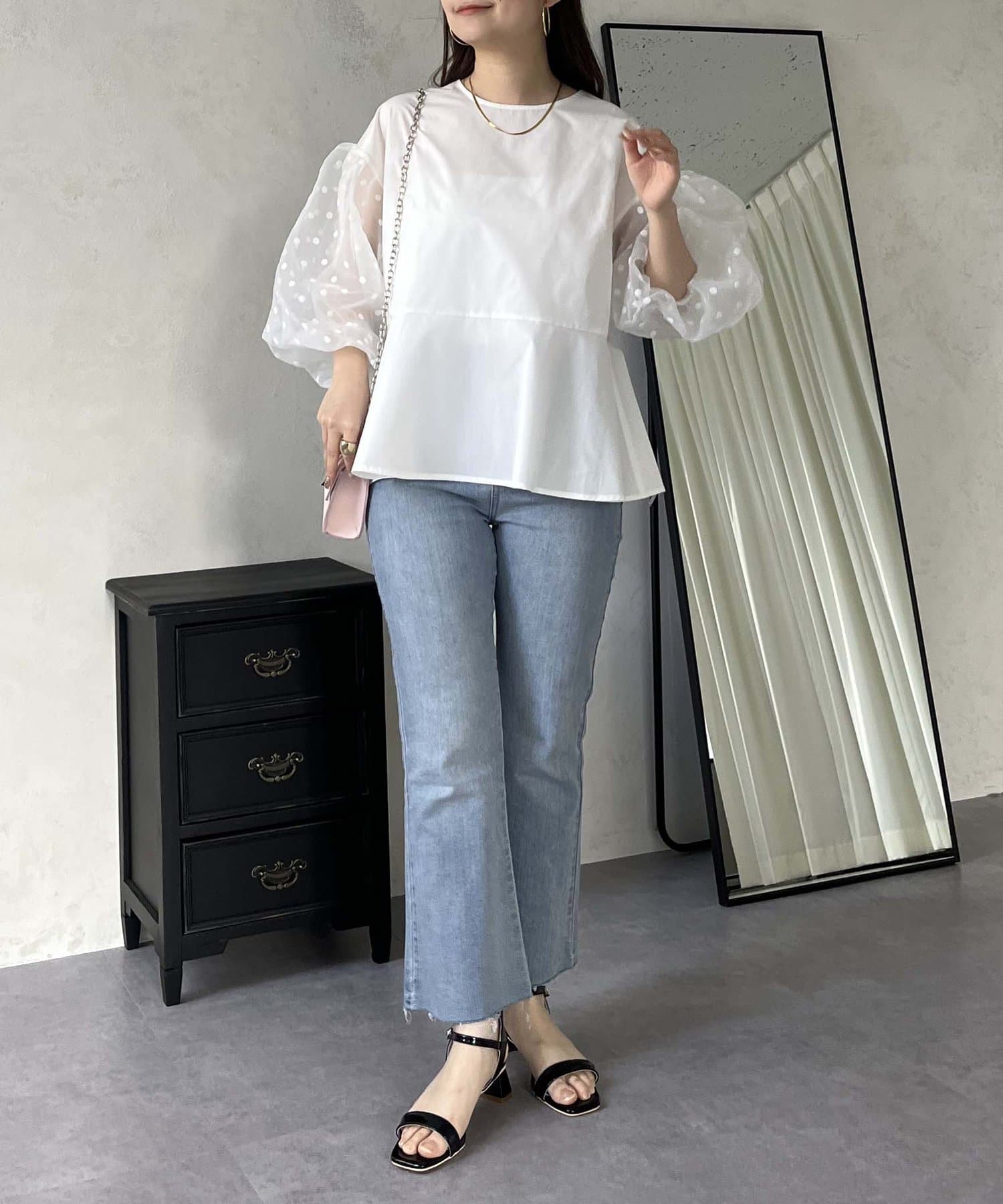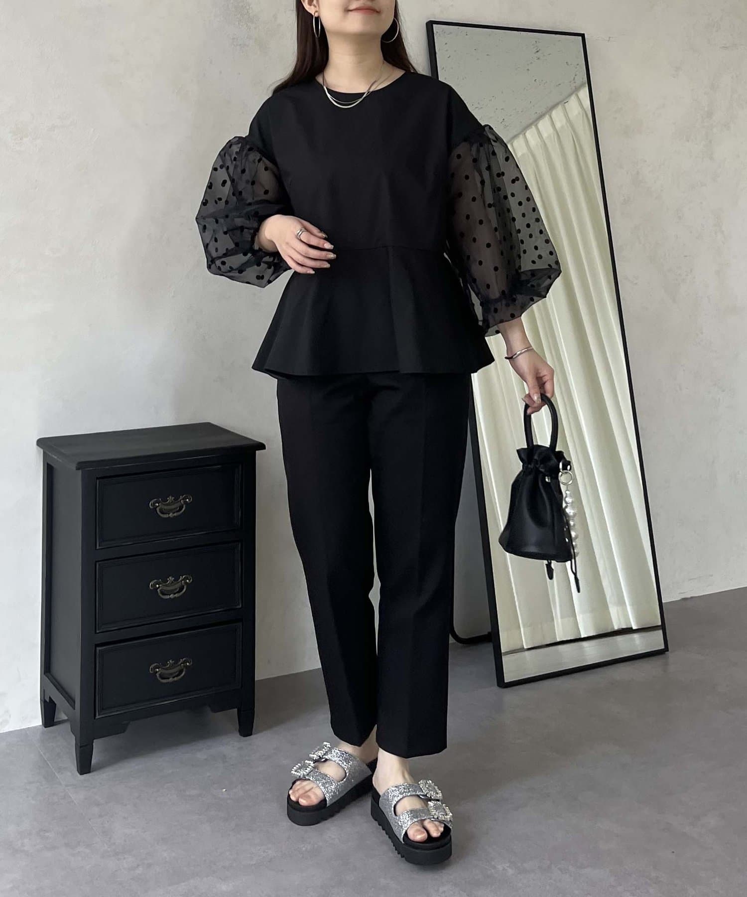 シアー/ボリュームスリーブ/ドット/ペプラム/大人可愛い