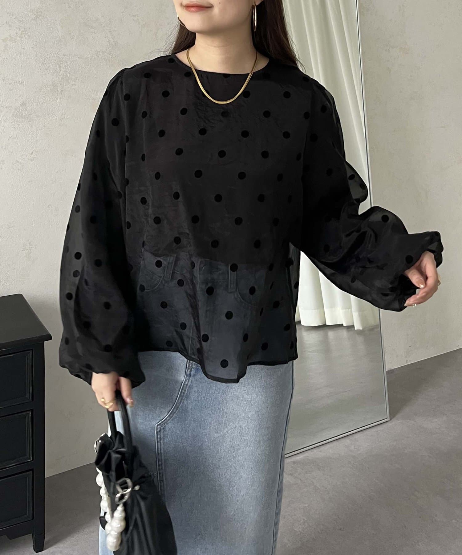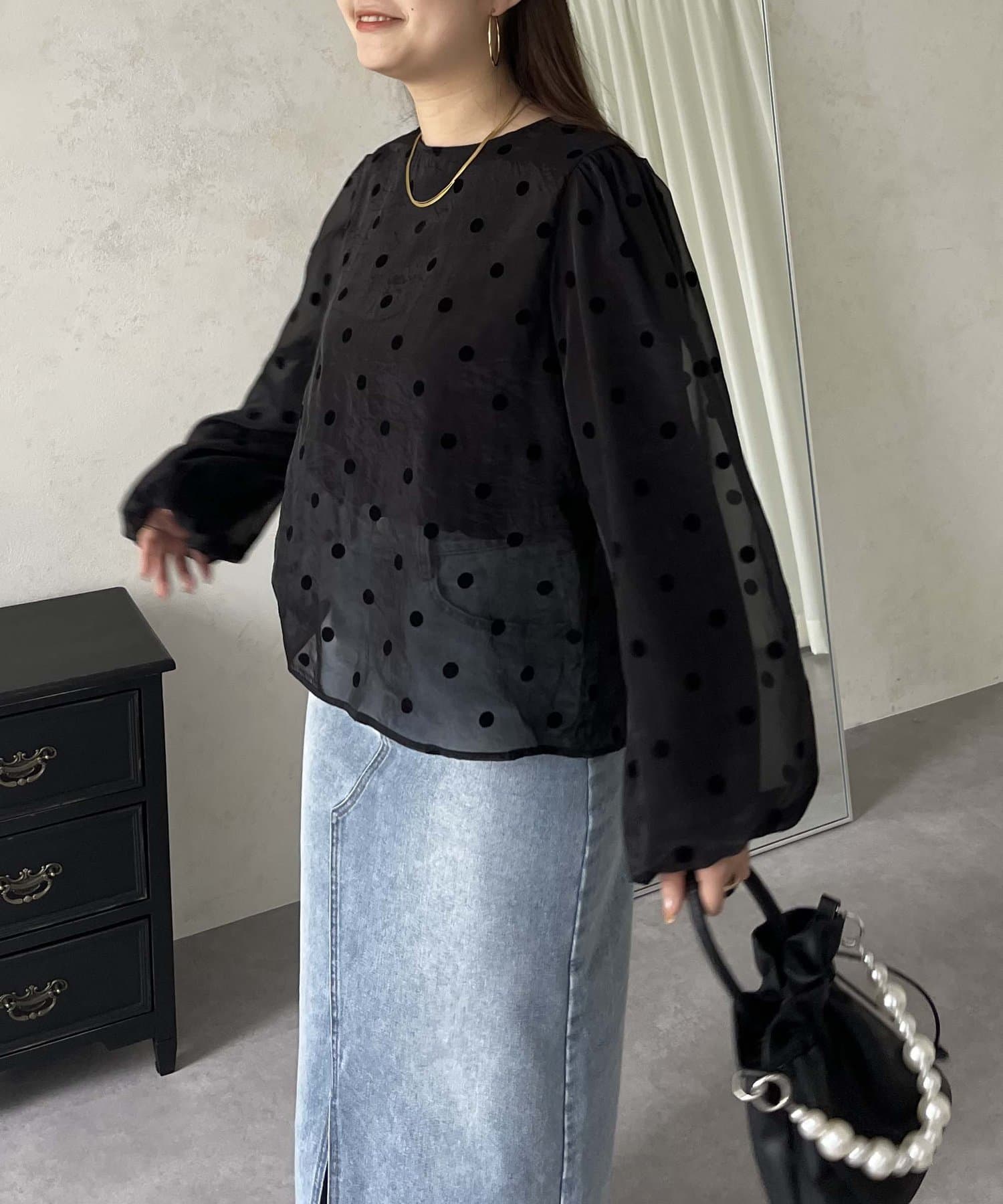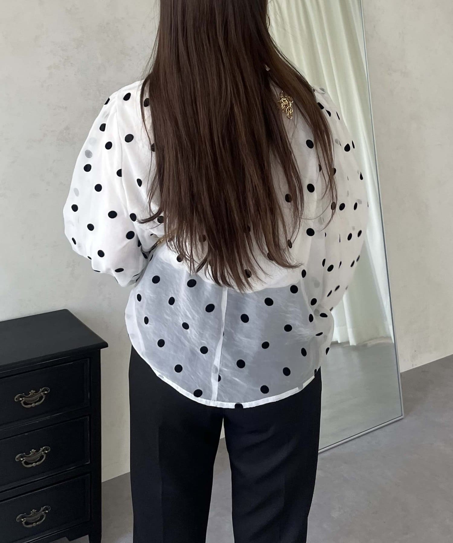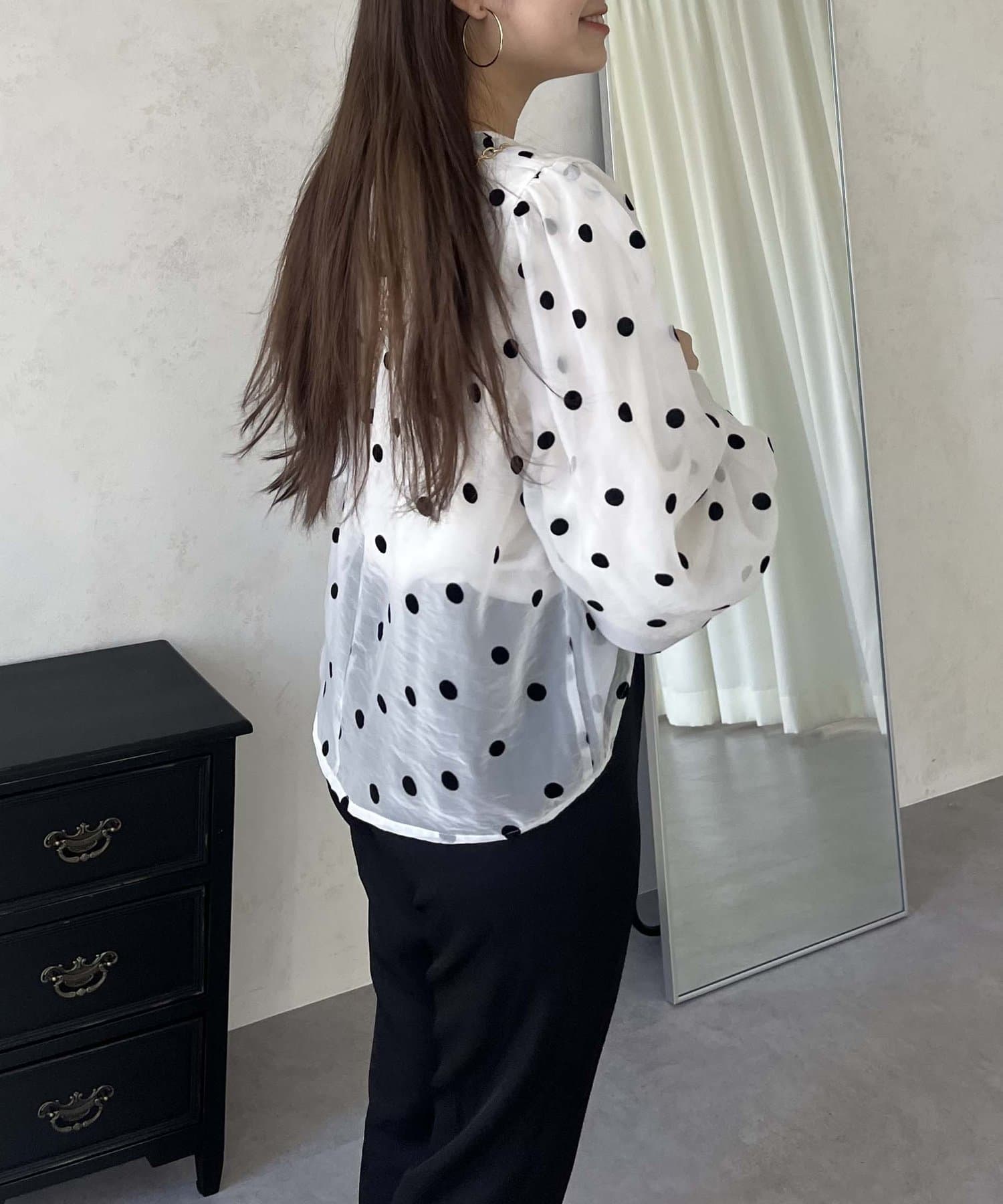 フロッキー/ドット/オーガンジー/ブラウス/キレイめ/大人可愛い