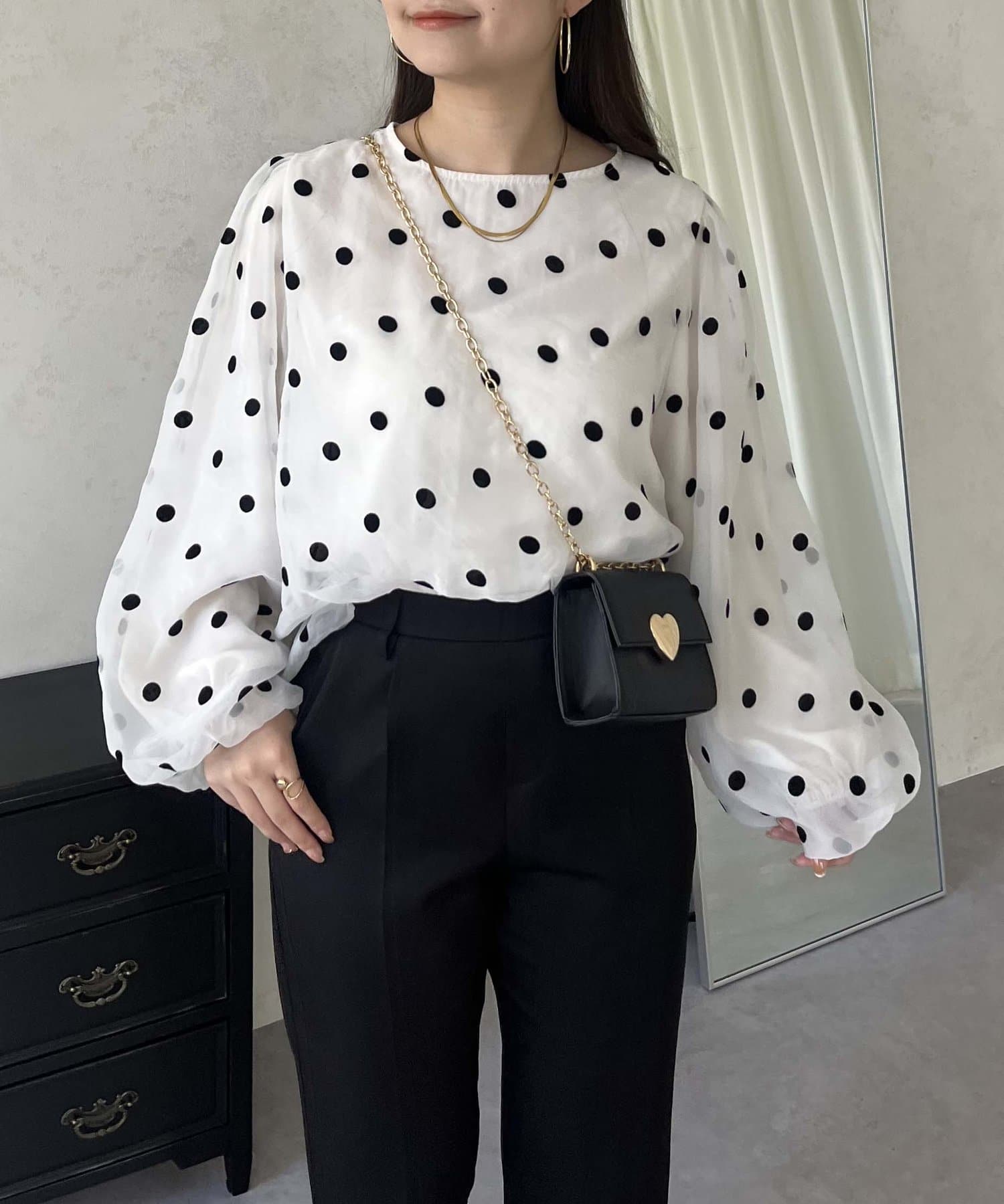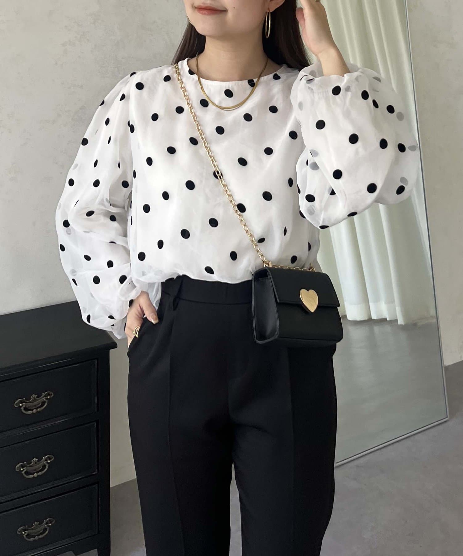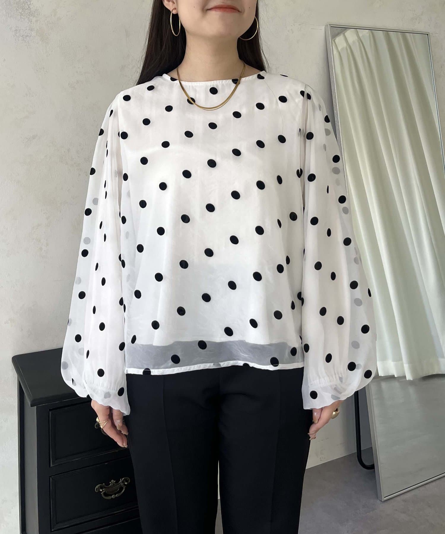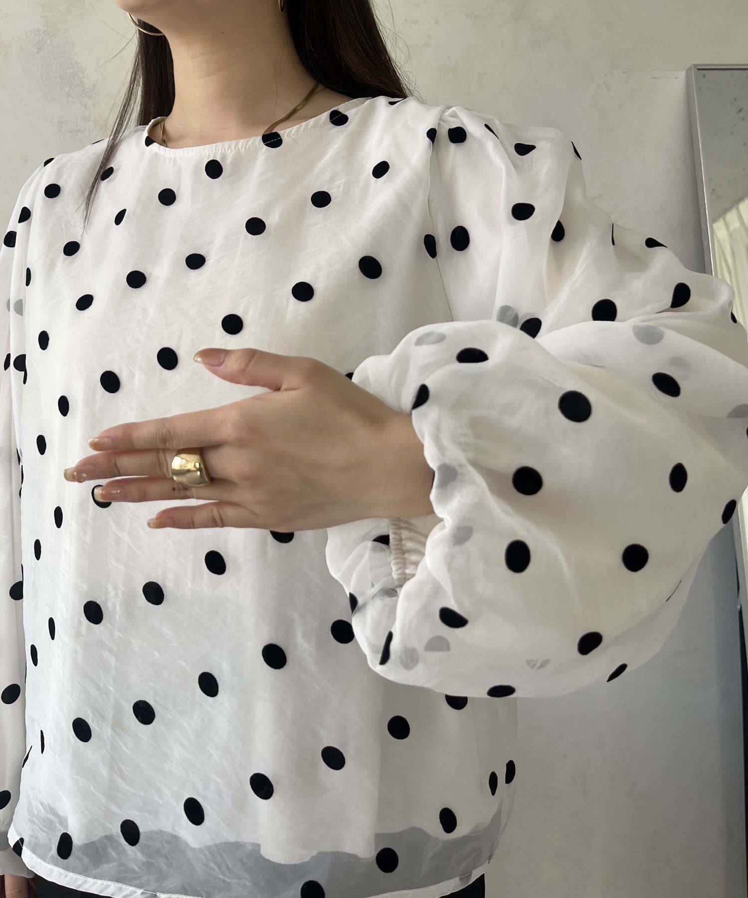 フロッキー/ドット/オーガンジー/ブラウス/キレイめ/大人可愛い