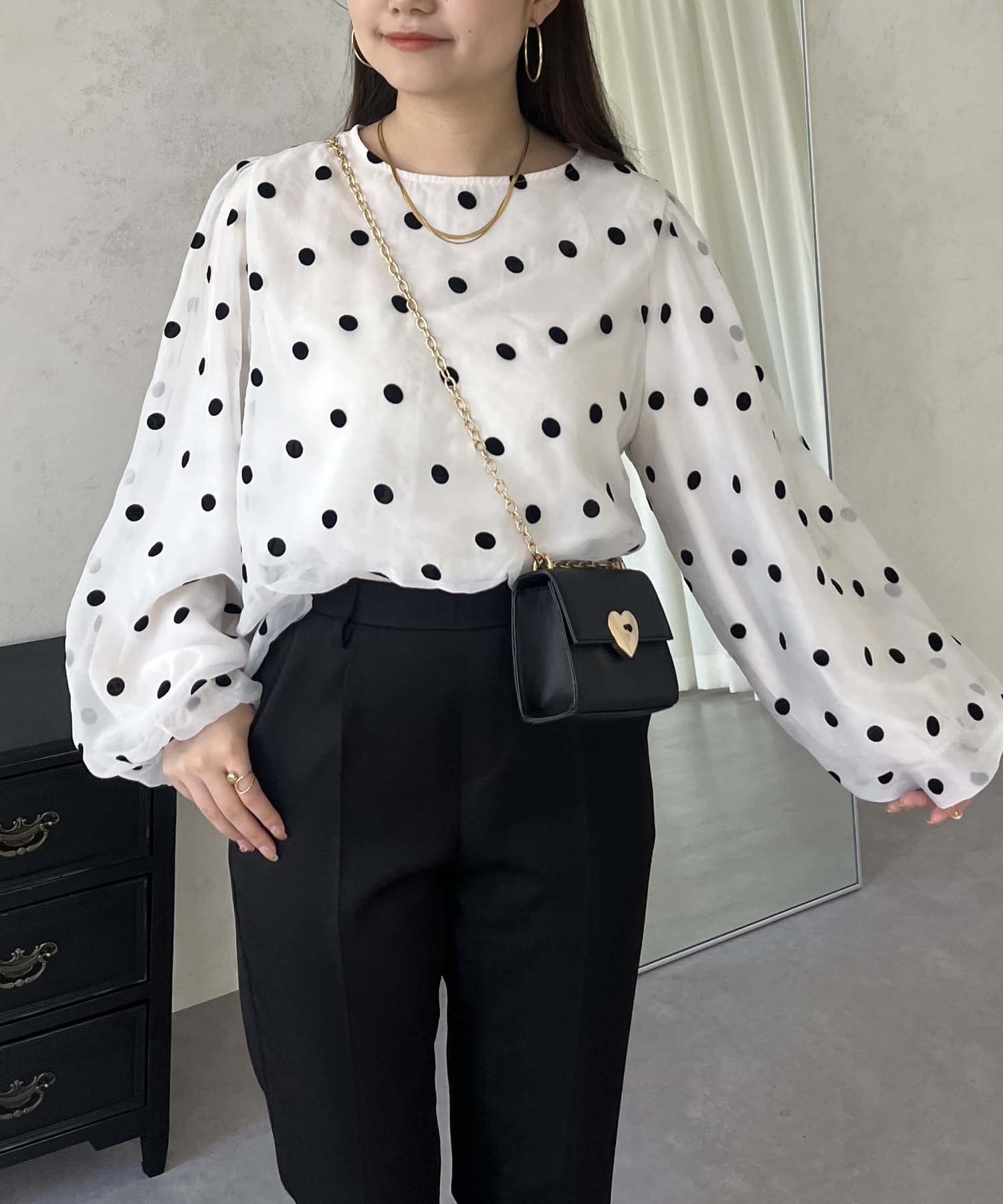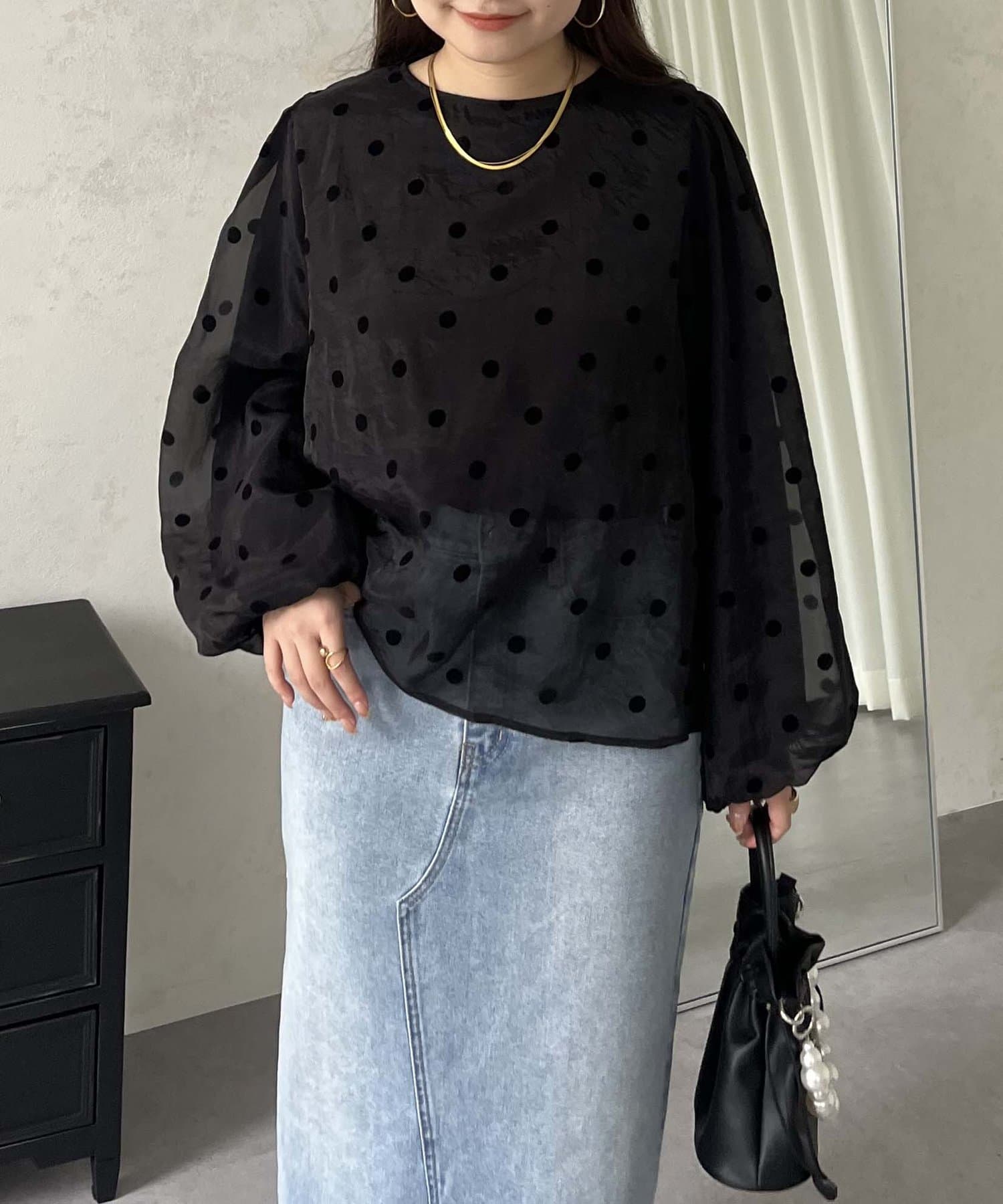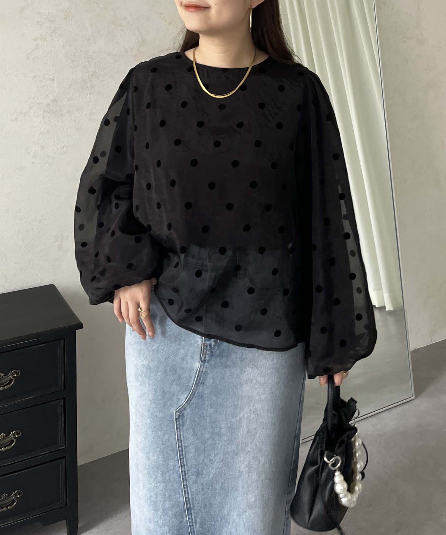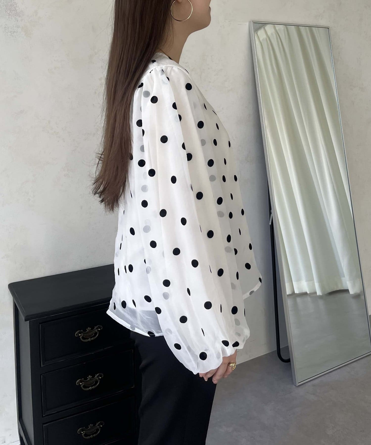 フロッキー/ドット/オーガンジー/ブラウス/キレイめ/大人可愛い