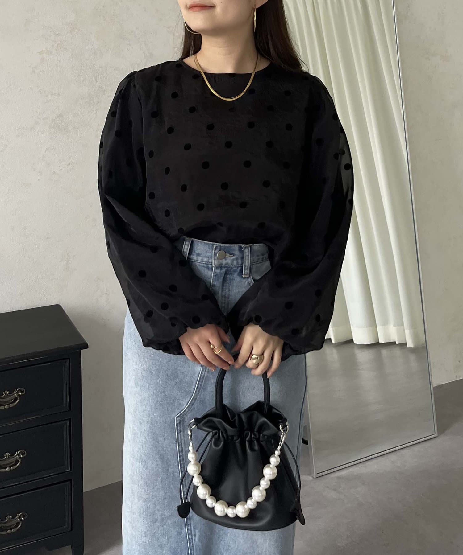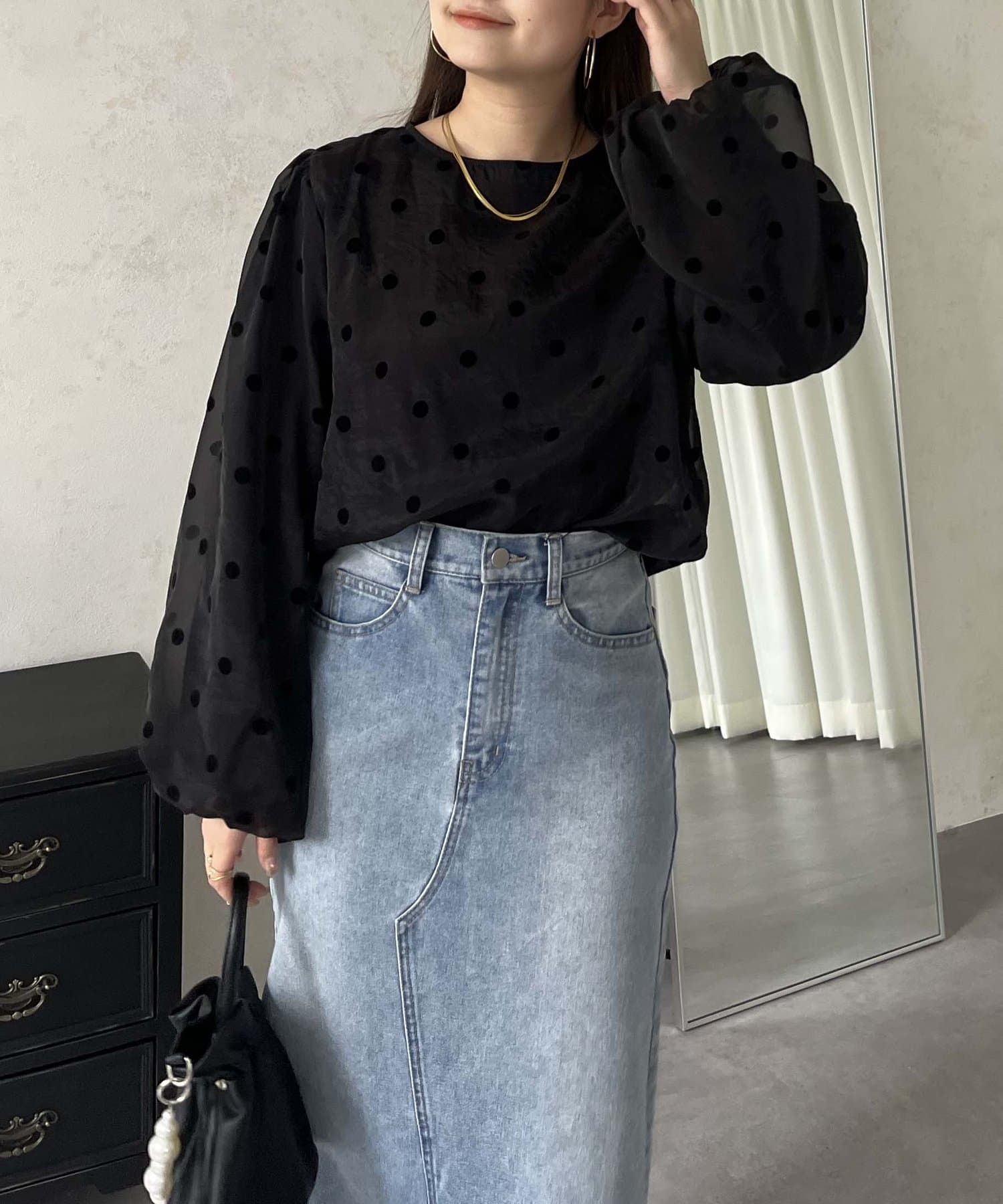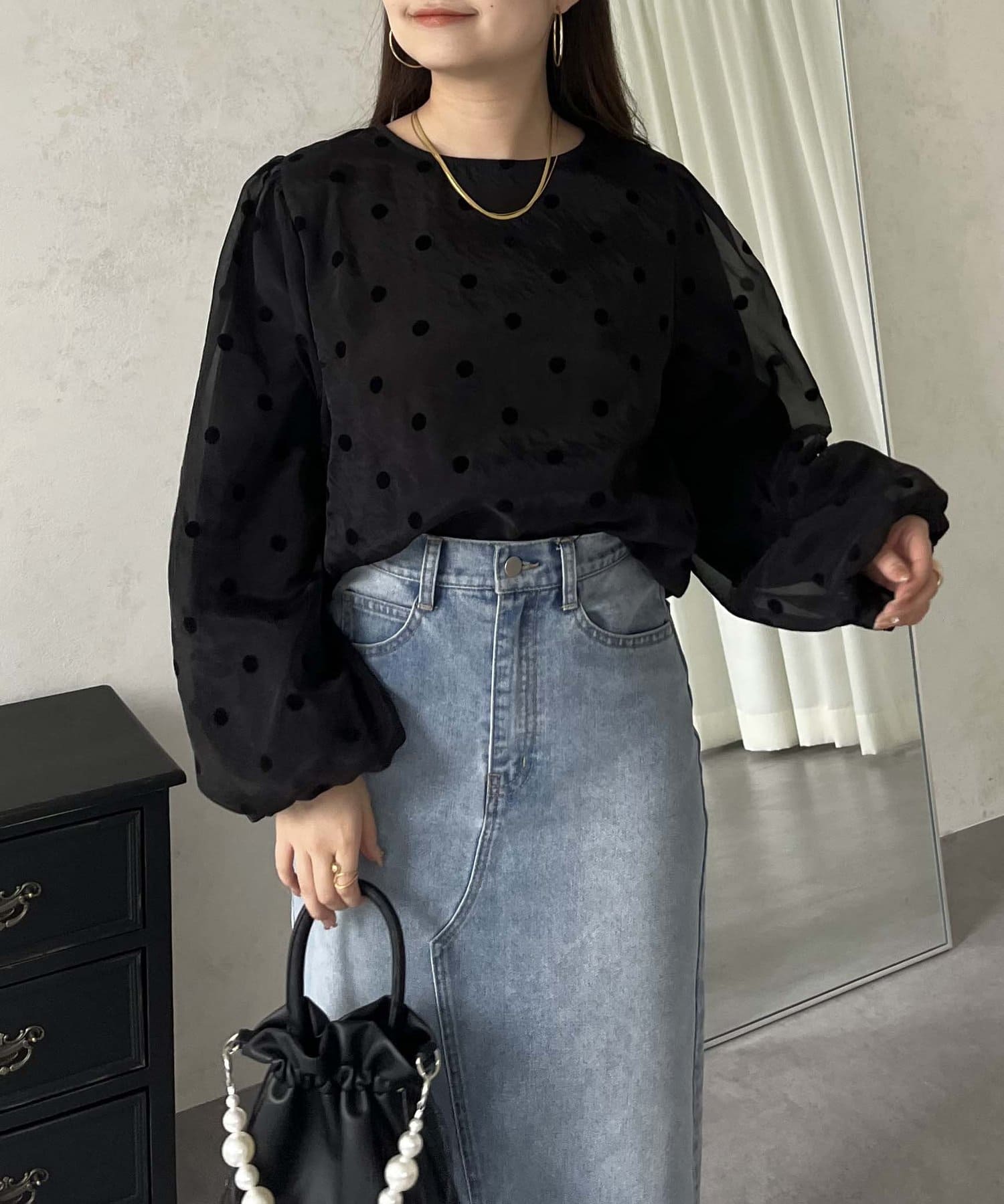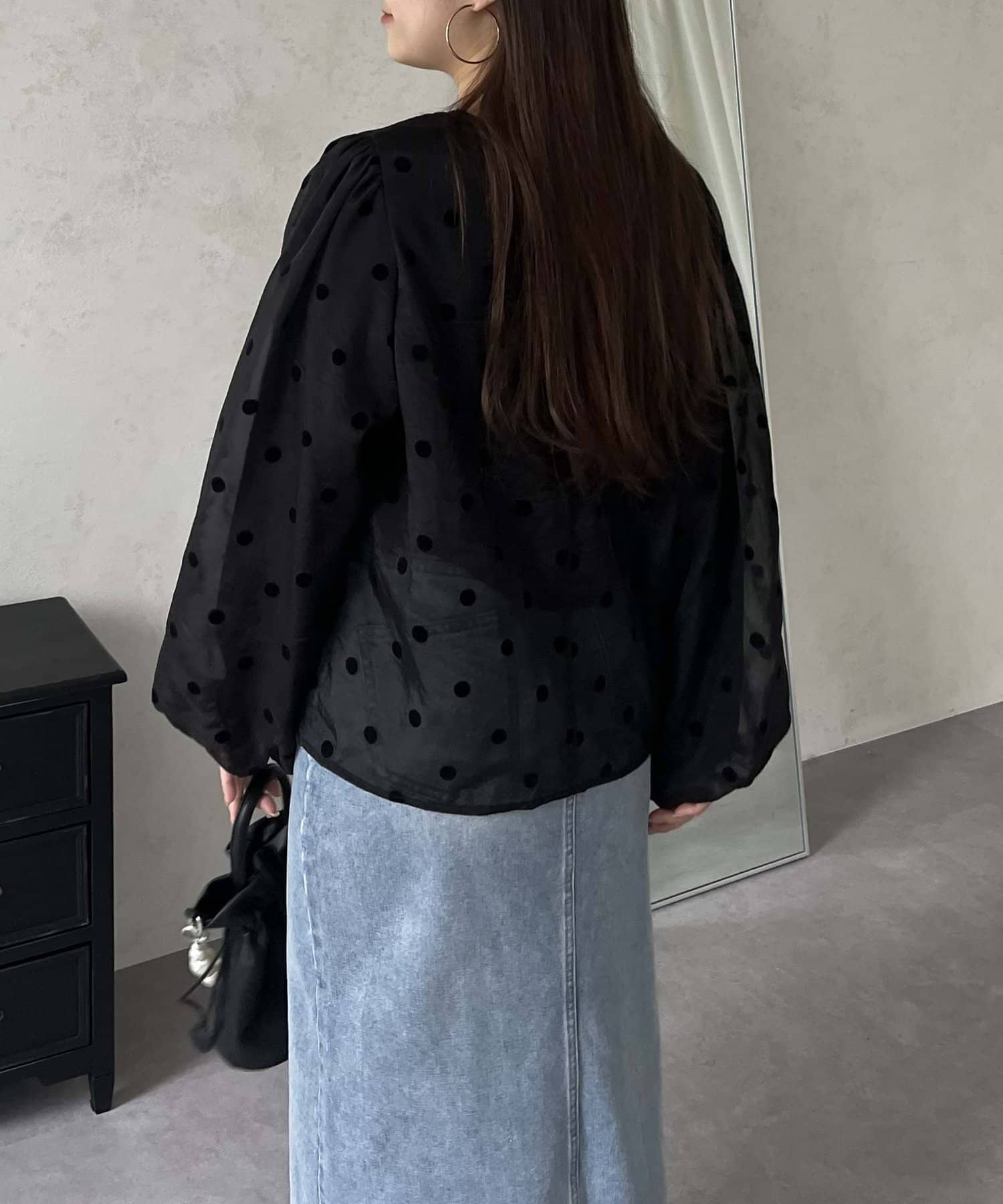 フロッキー/ドット/オーガンジー/ブラウス/キレイめ/大人可愛い