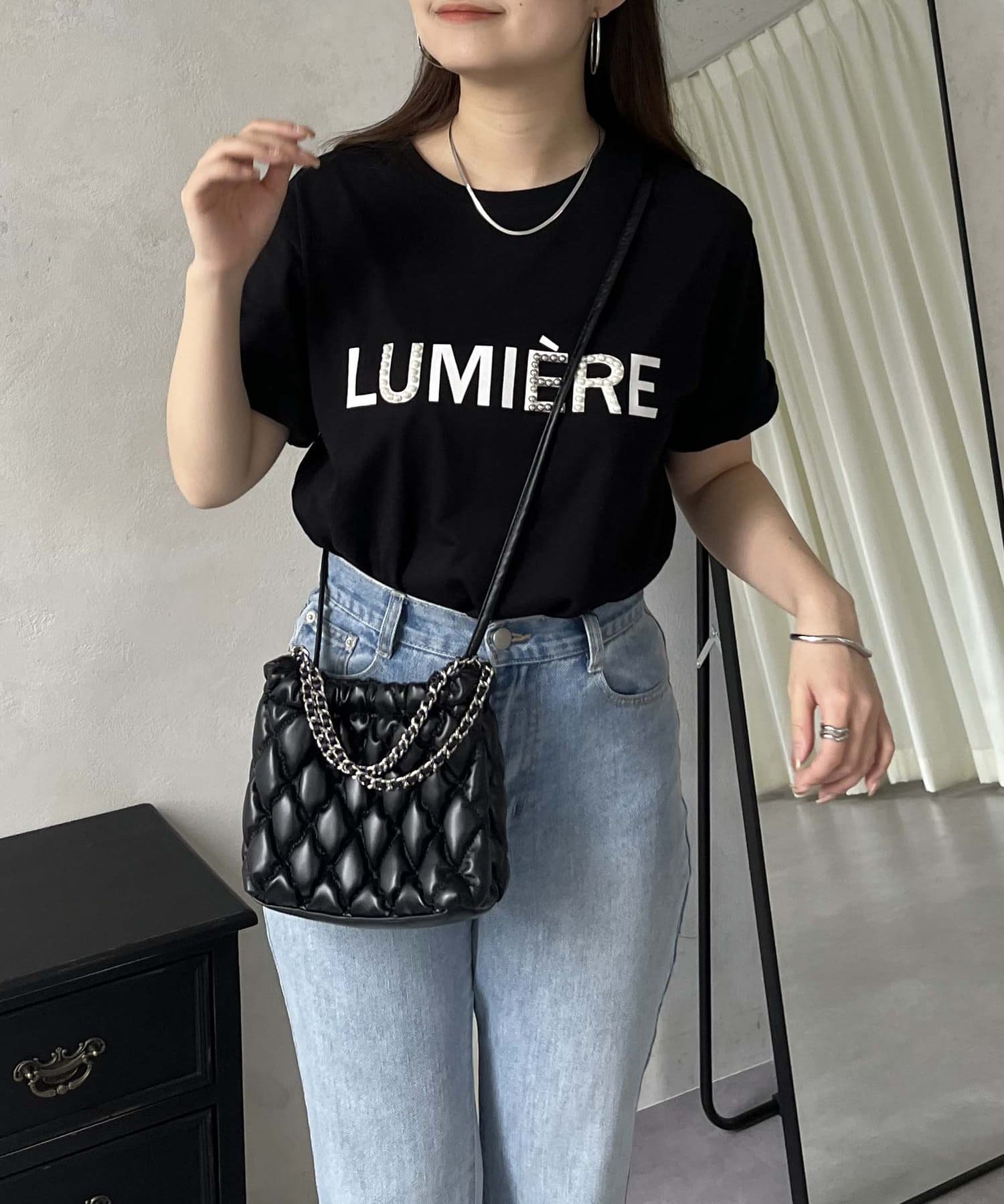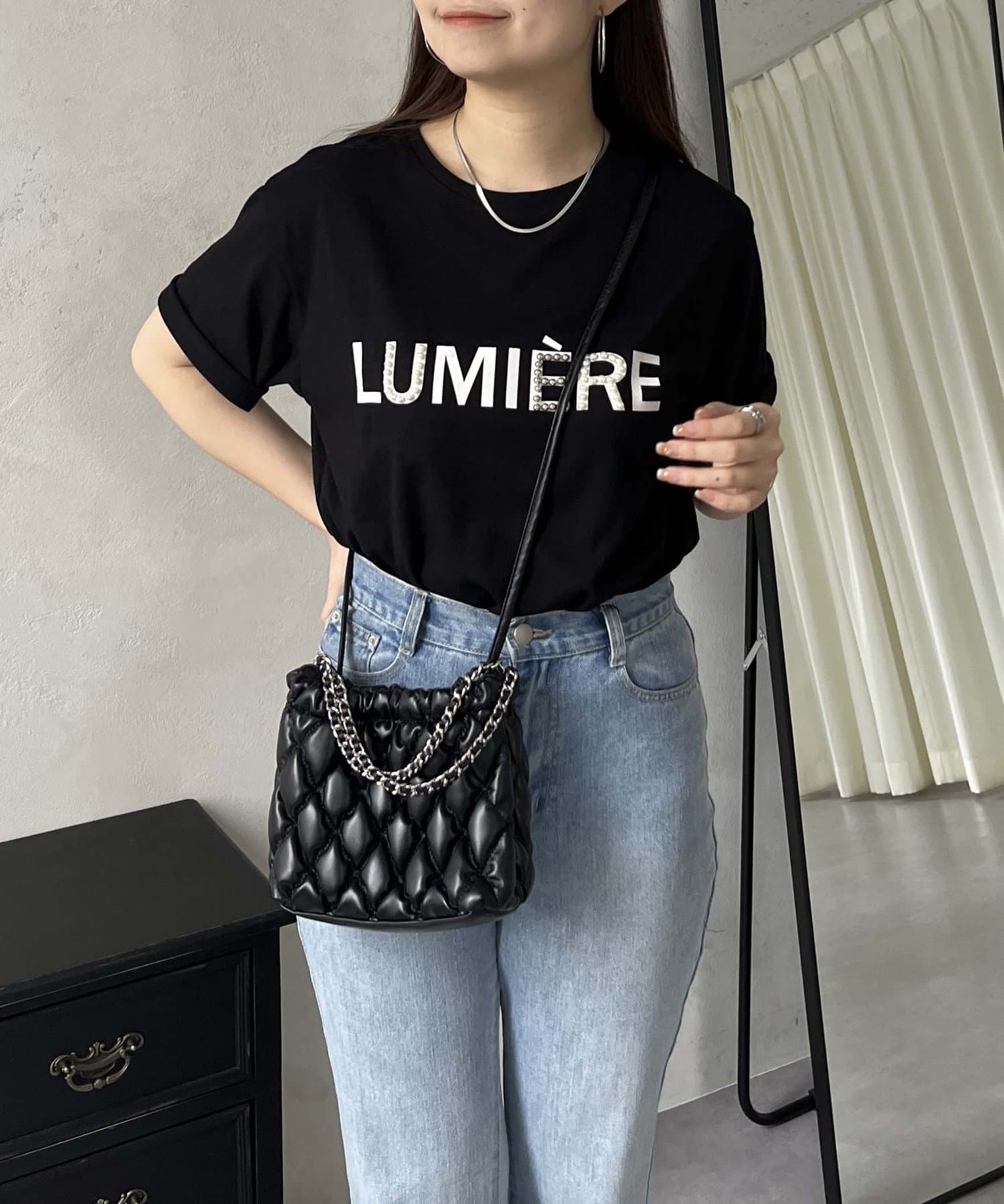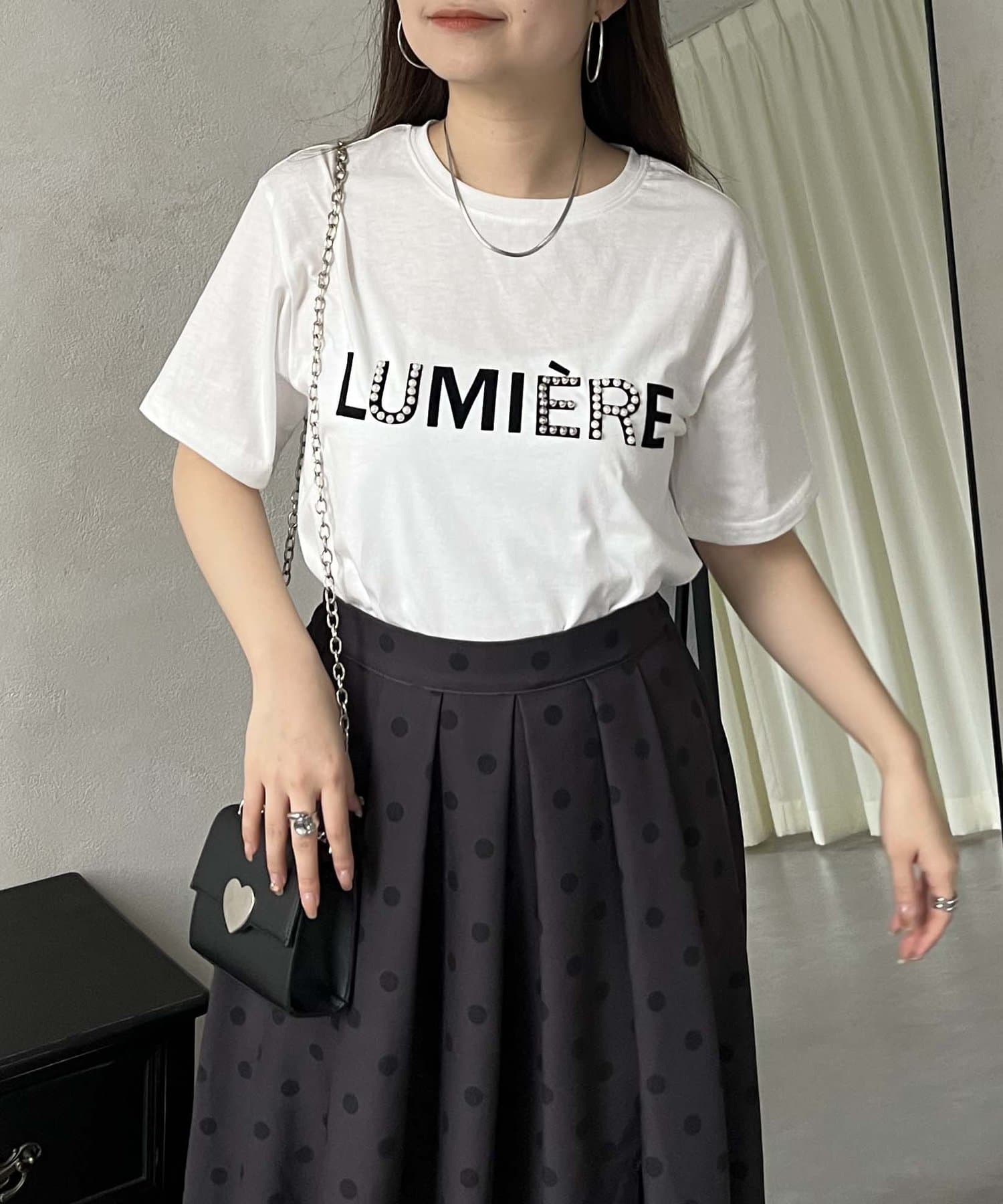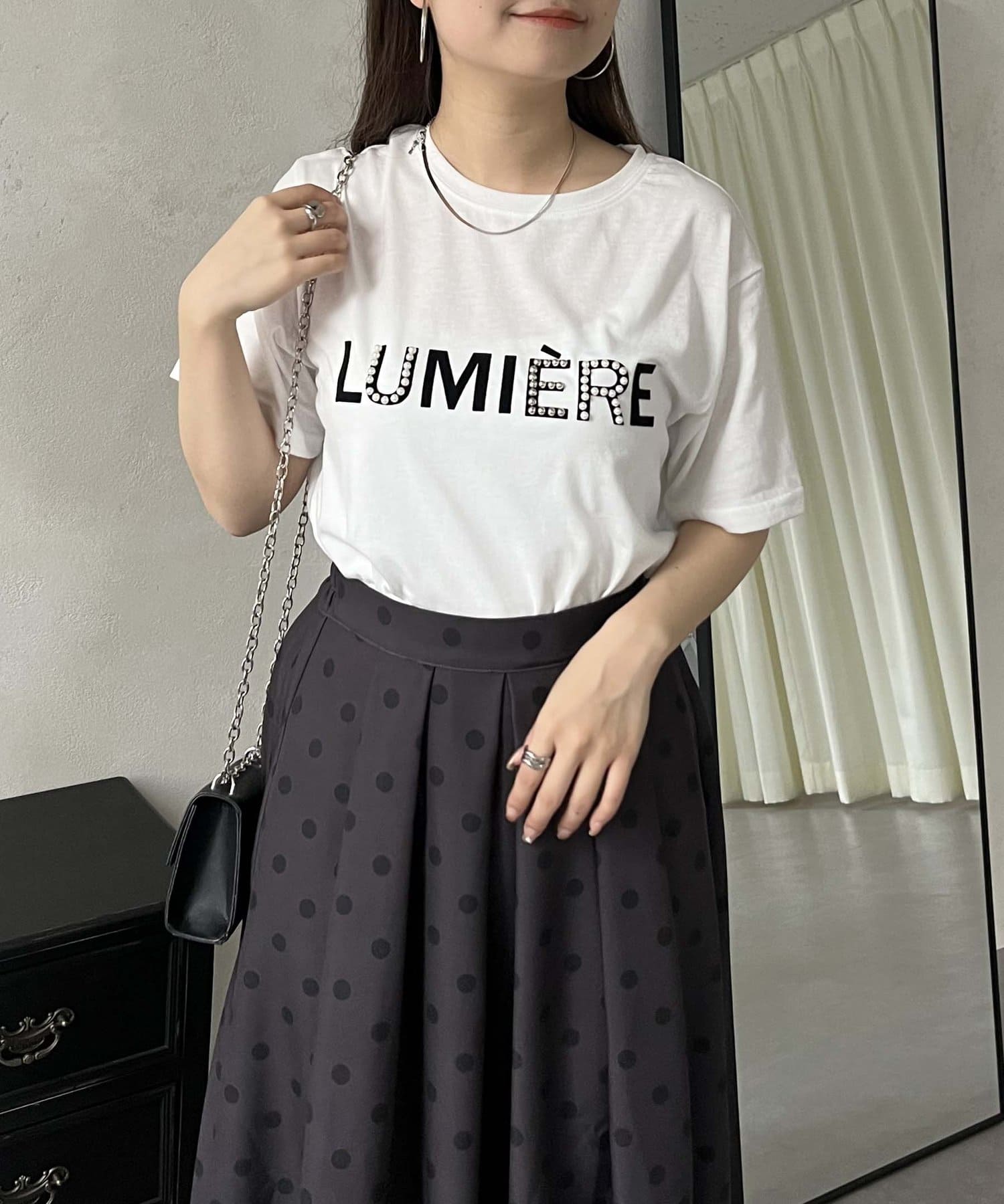 パールとシルバーパーツがアクセントのTシャツ