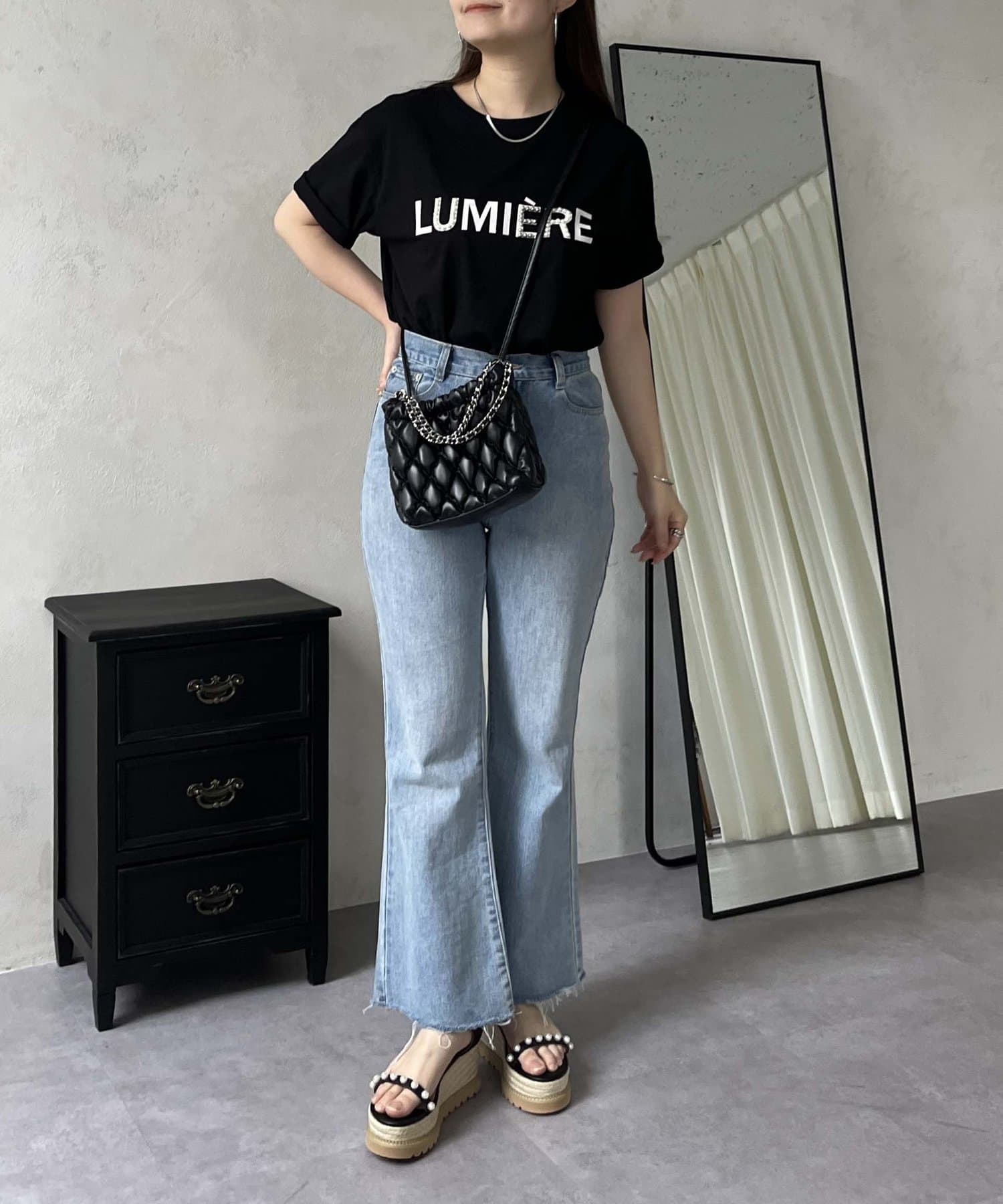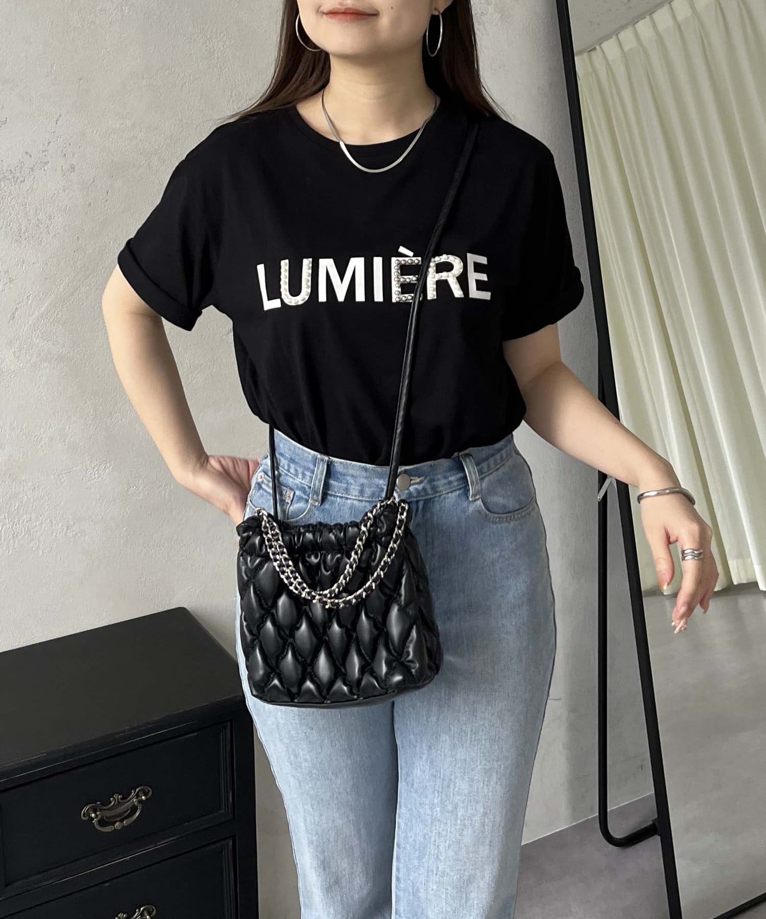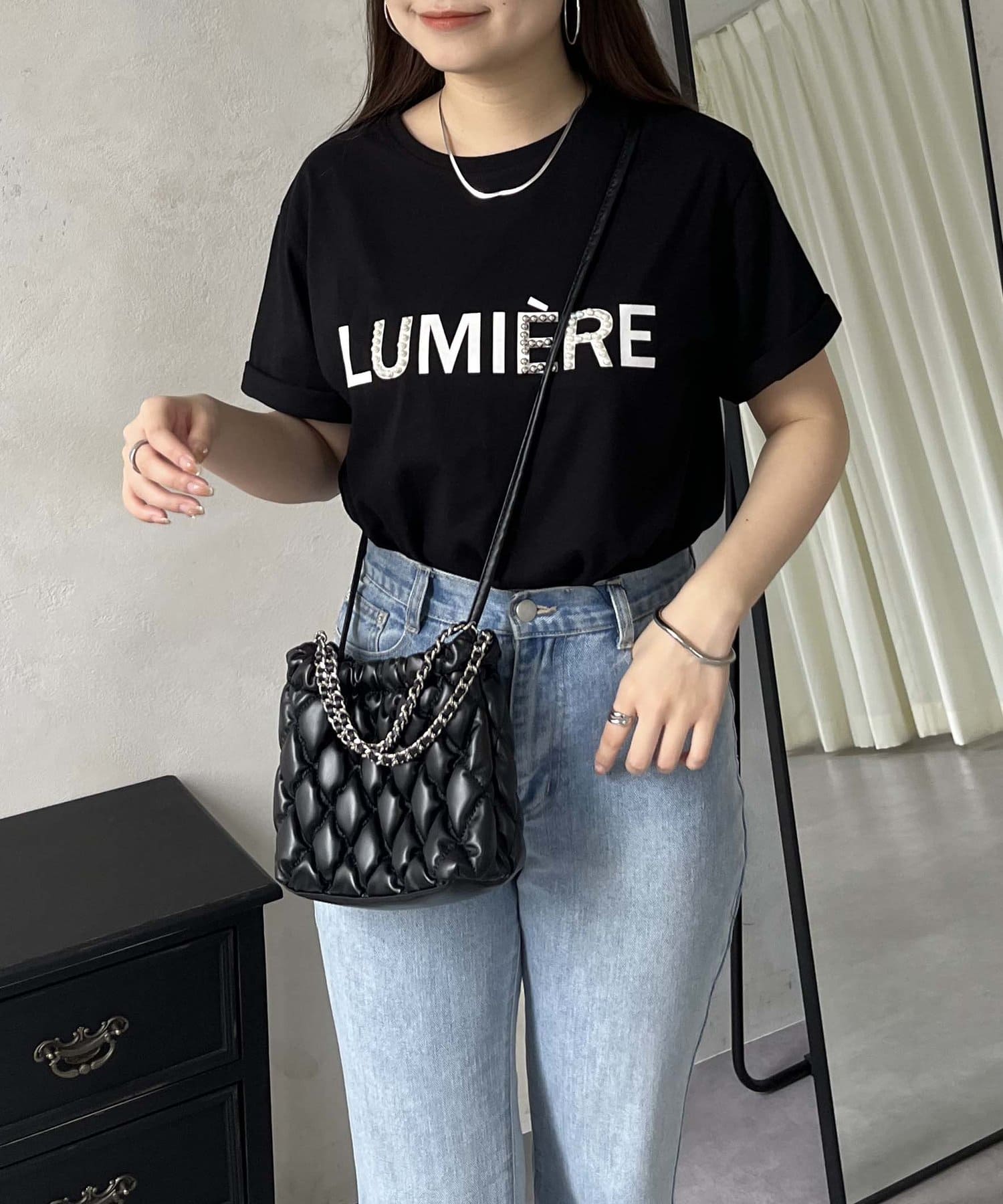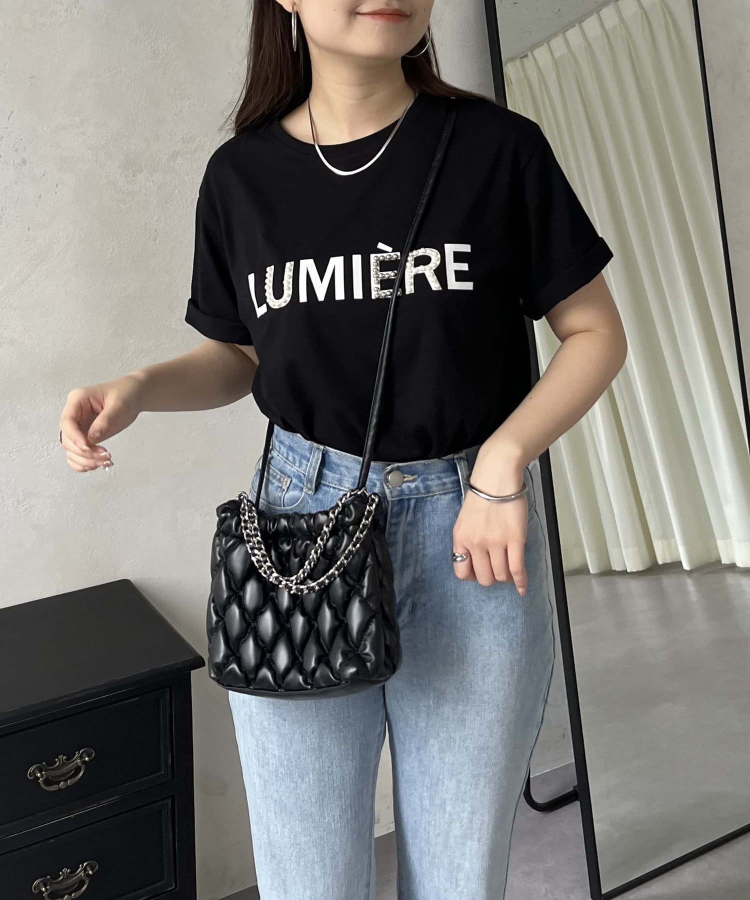 パールとシルバーパーツがアクセントのTシャツ