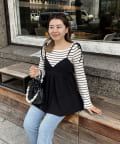 Lで大きかったかなと思いましたが、後ろクロスで結ぶと、胸囲を調節できてスッキリ着ることが出来ました。既に何回も着ていますが、これからも出番の多いアイテムになりそうです。買ってよかったです。