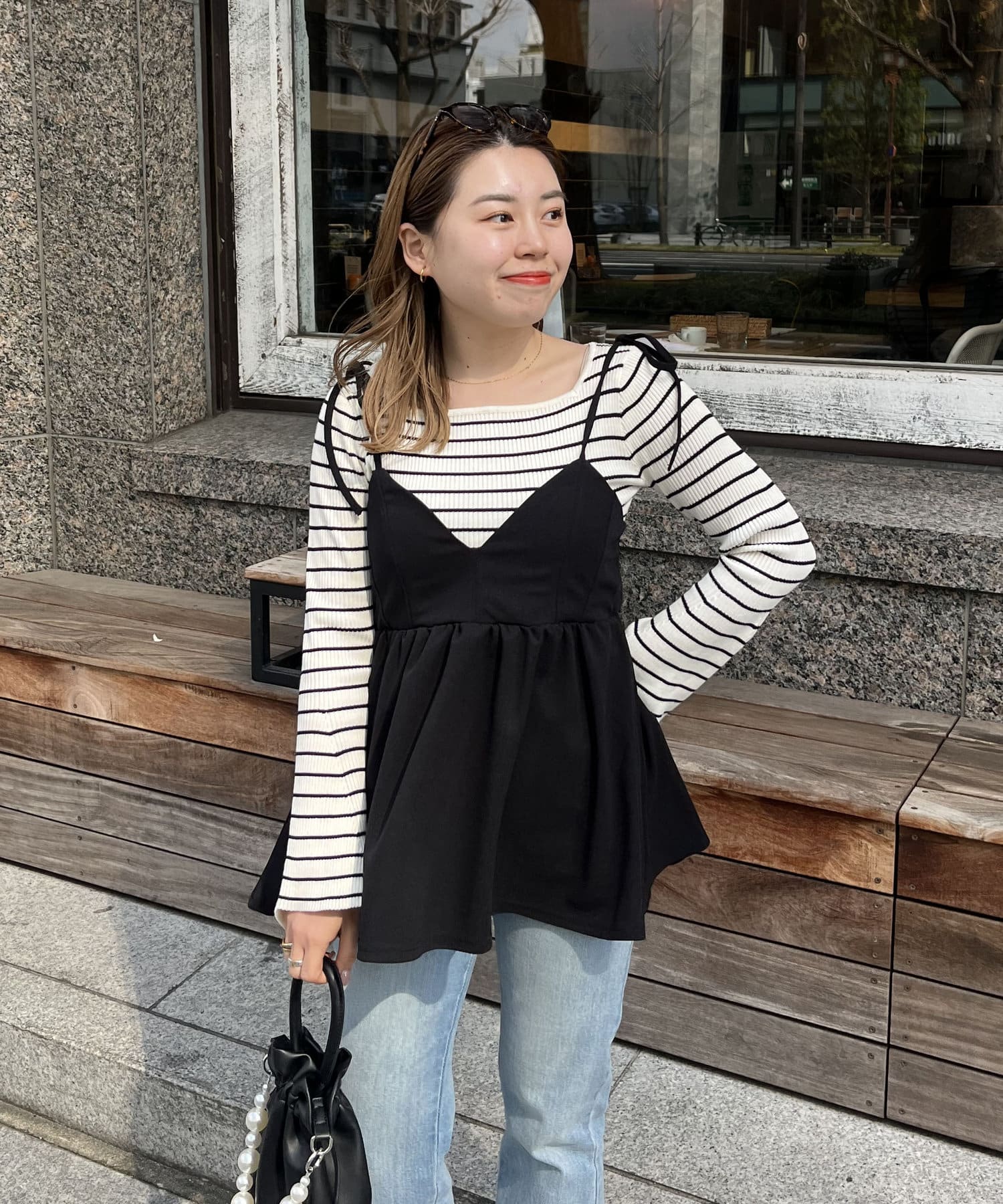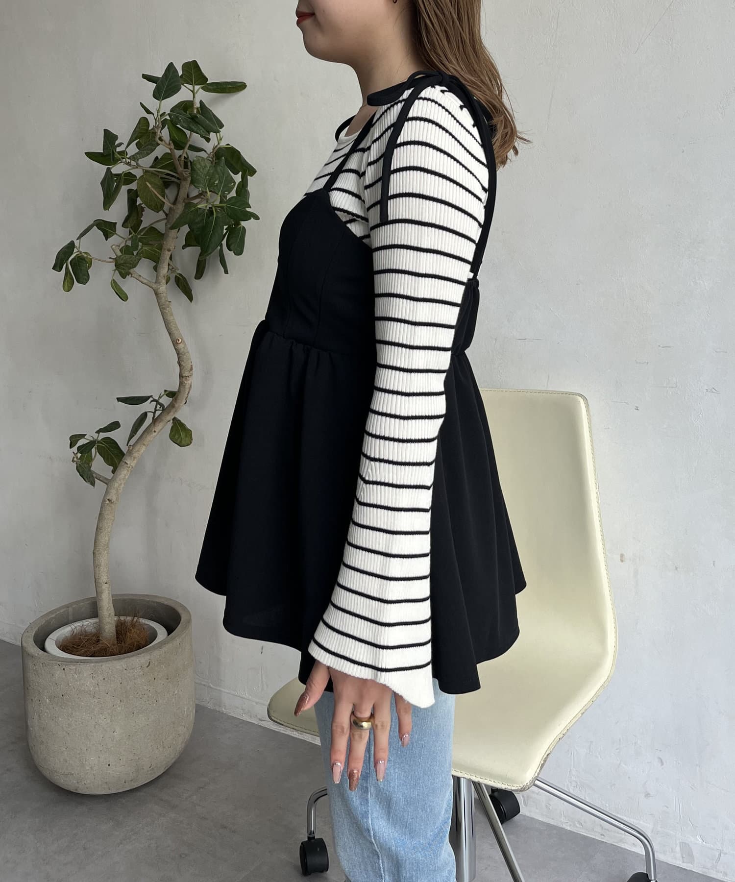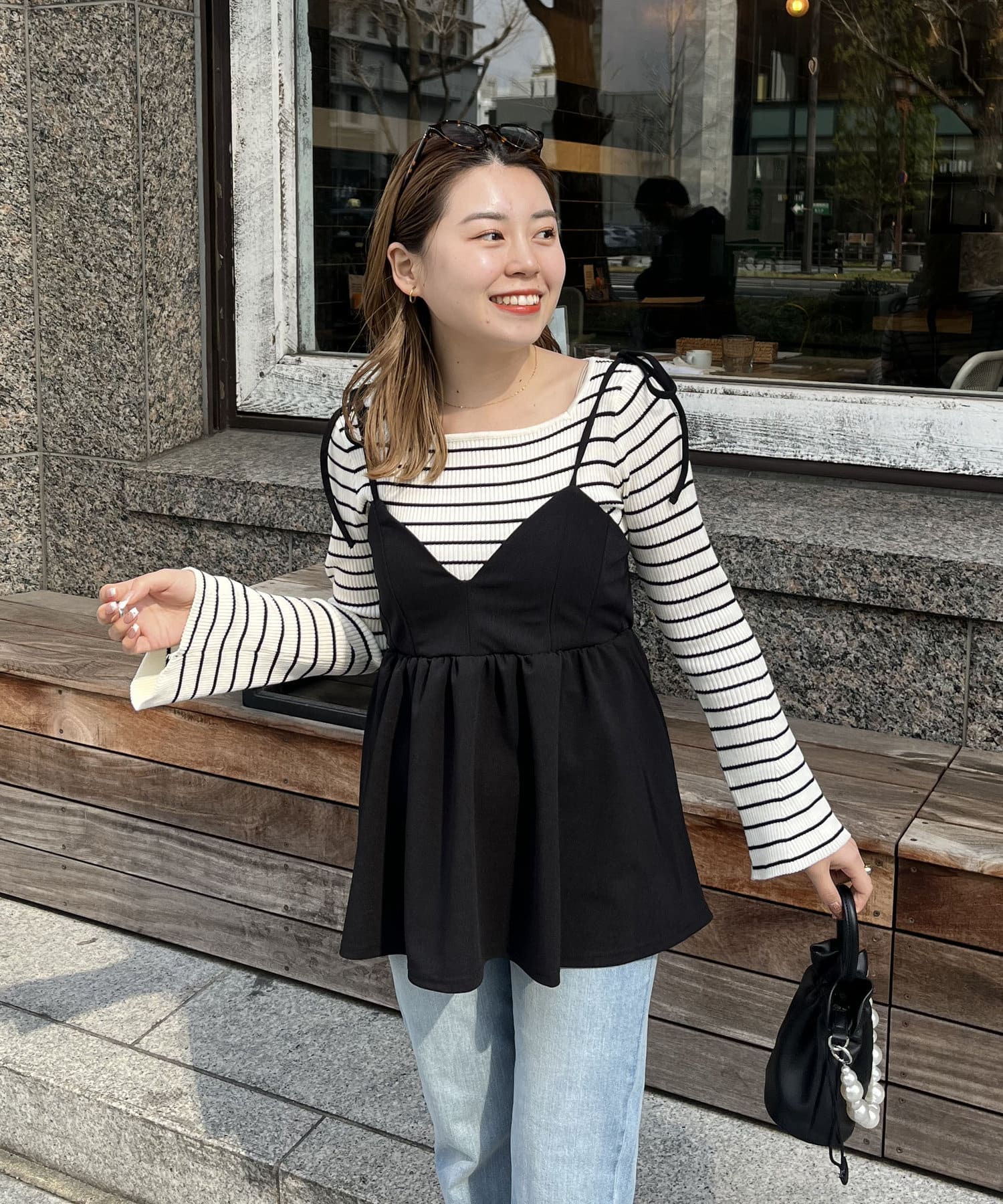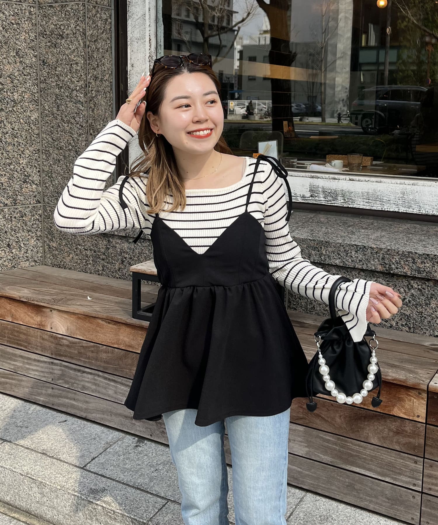 【MOMO COLLECTION】肩リボンVネックペプラムビスチェ