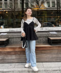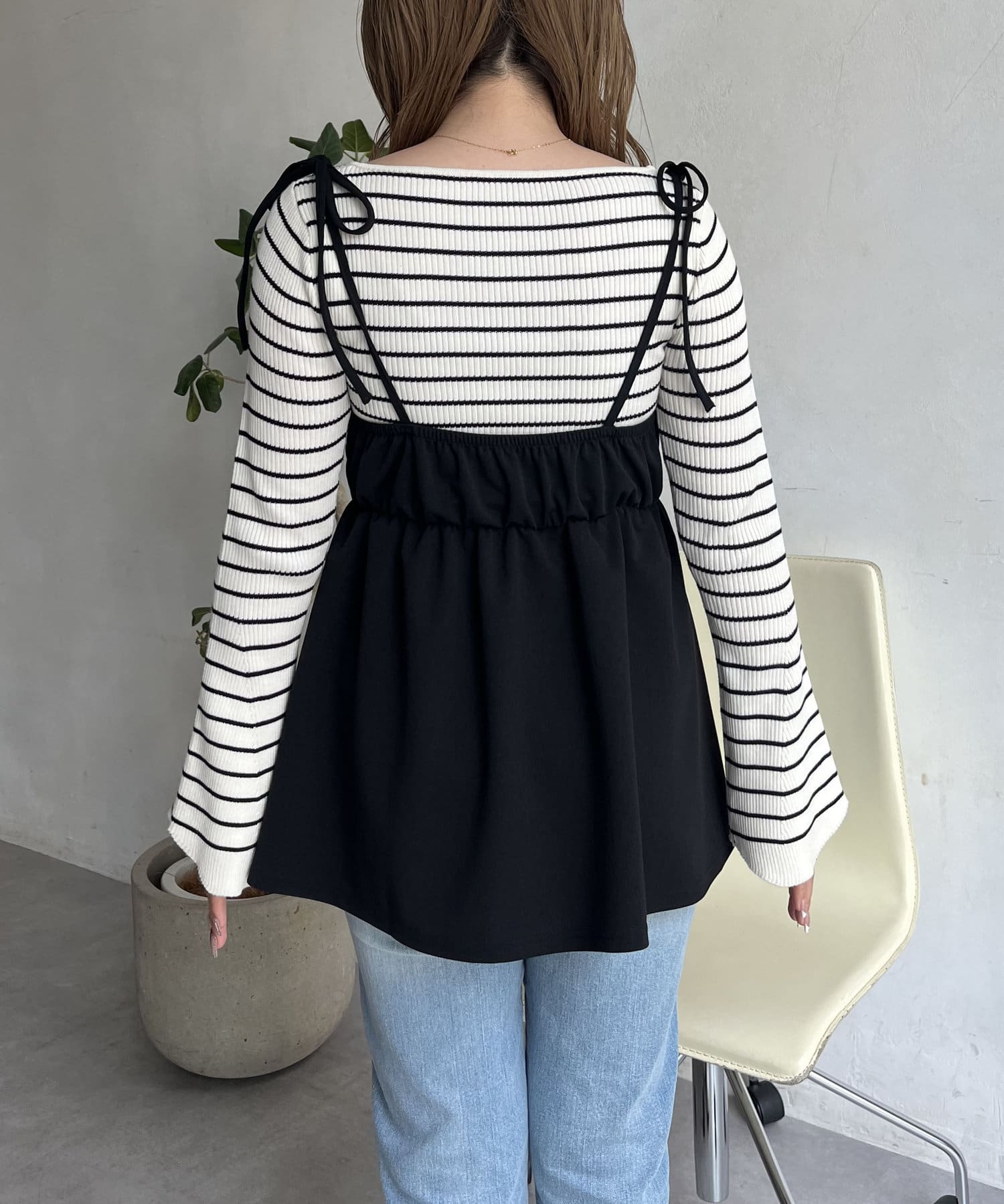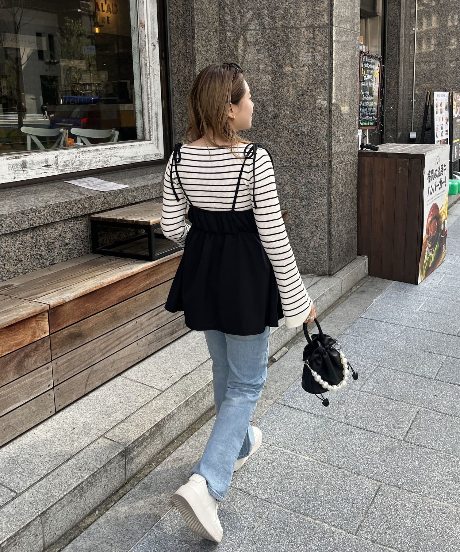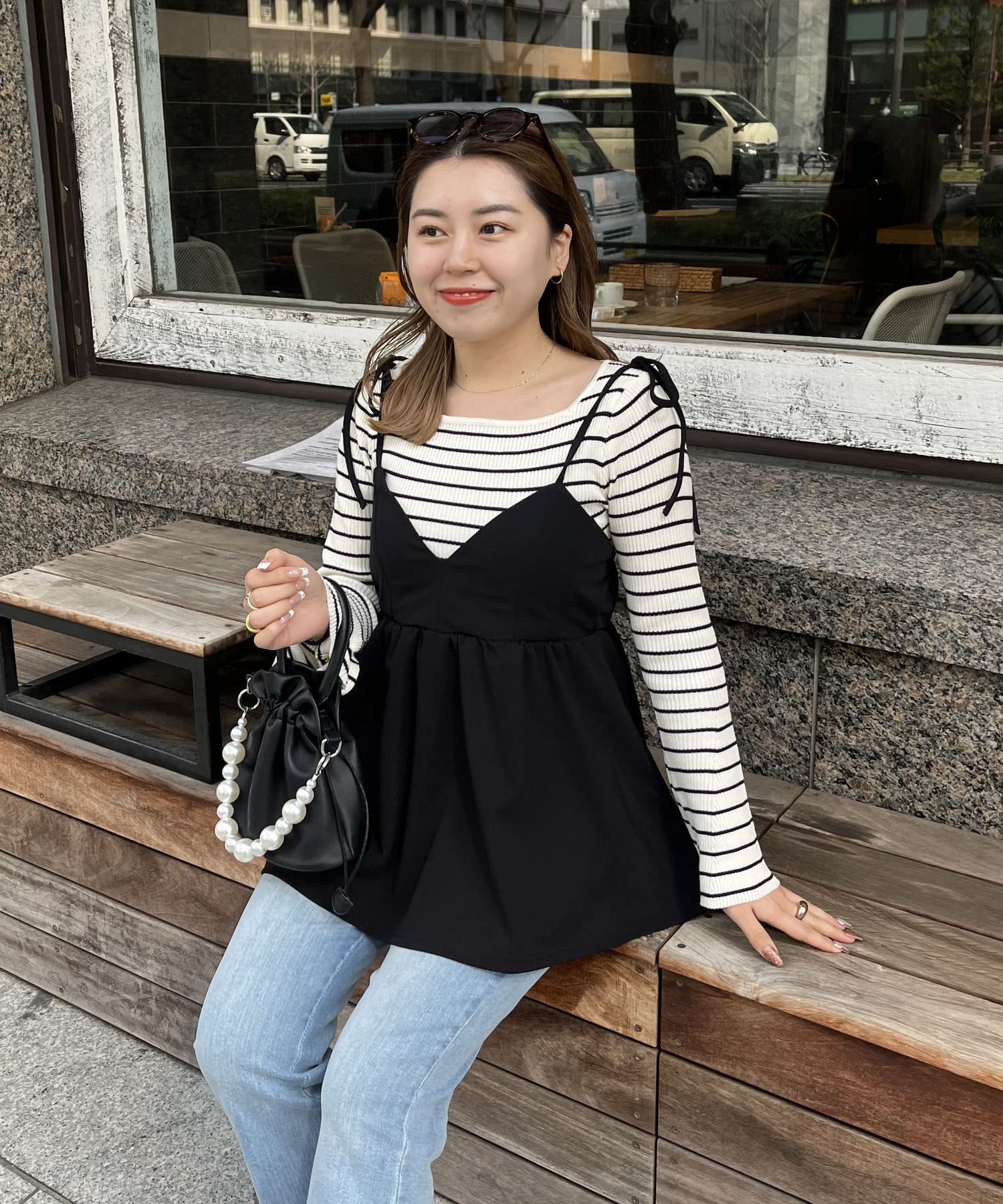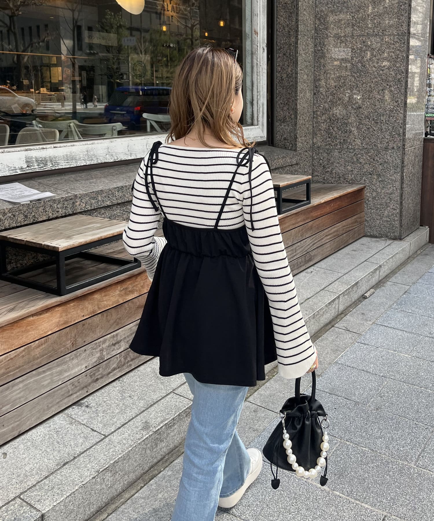 【MOMO COLLECTION】肩リボンVネックペプラムビスチェ