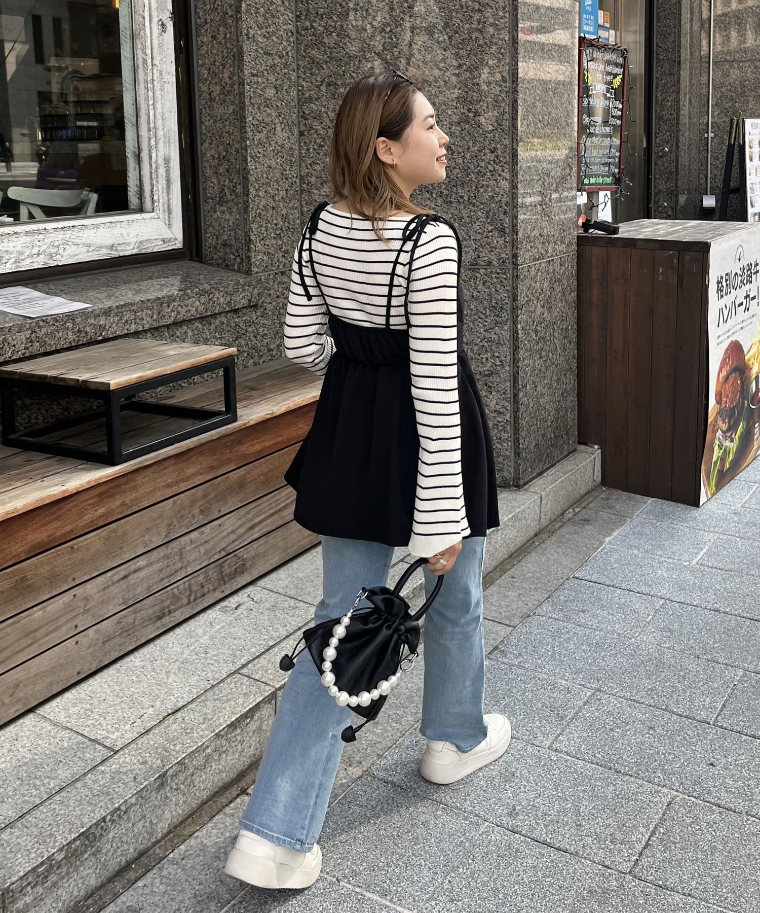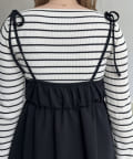 紐の長さが十分にあるので、後ろでクロスしたり、胸元で結んで、長い方を前でリボン結びにしたりと、アレンジもいろいろ楽しめます。