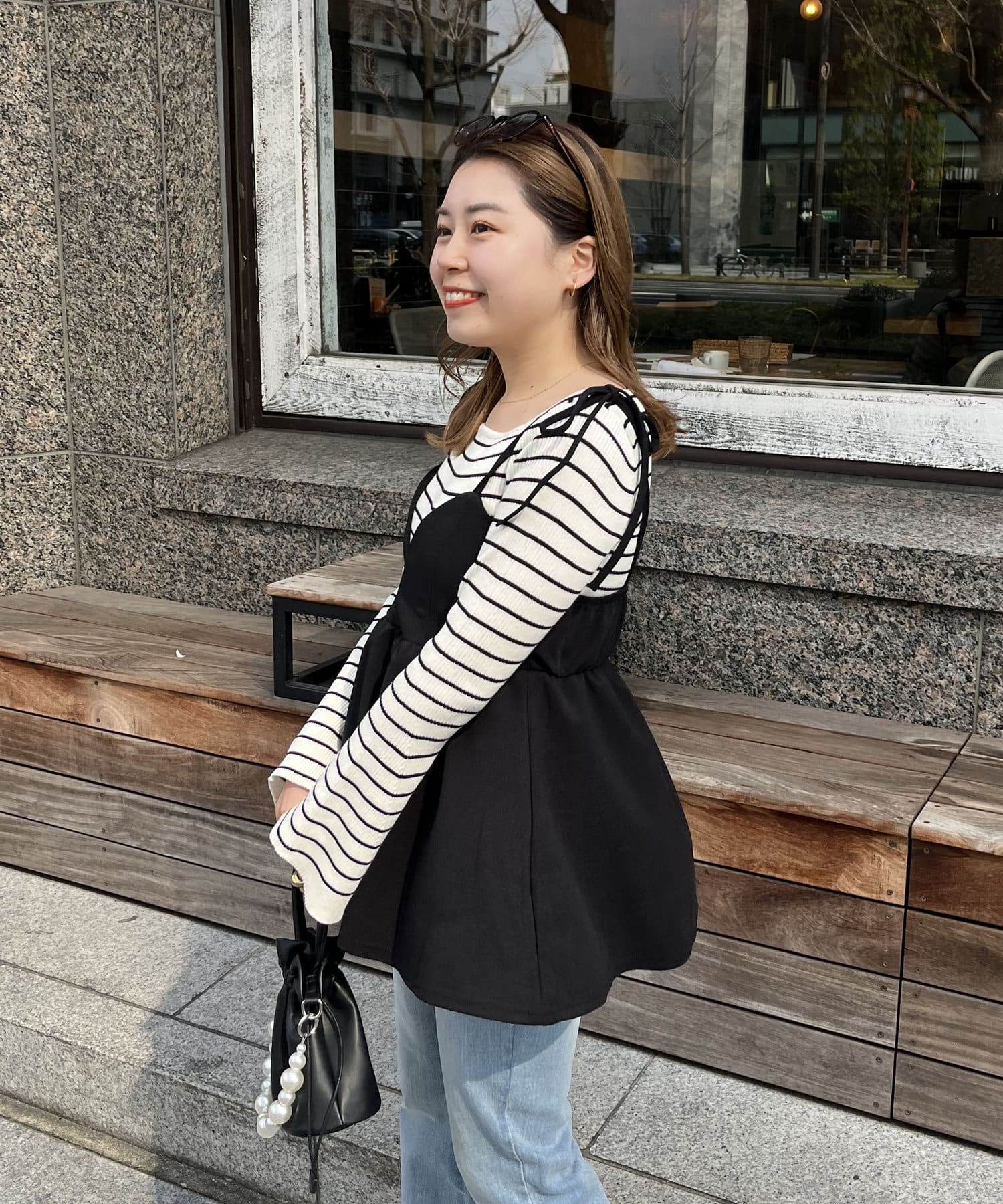 購入場所:パルクローゼットtシャツの上に重ねるだけで可愛さが増します!ジレも持っているので、その日の気分や洋服の雰囲気で変えて着ています!