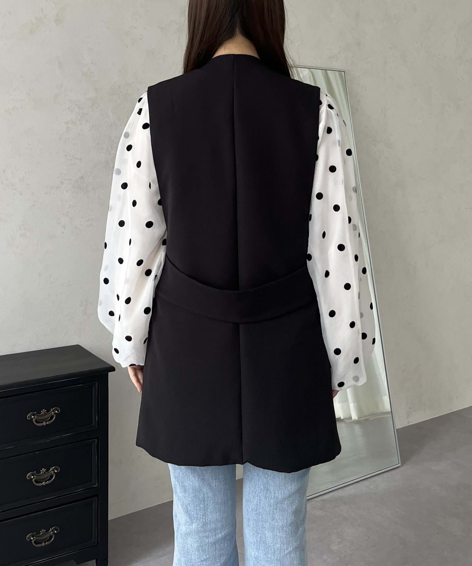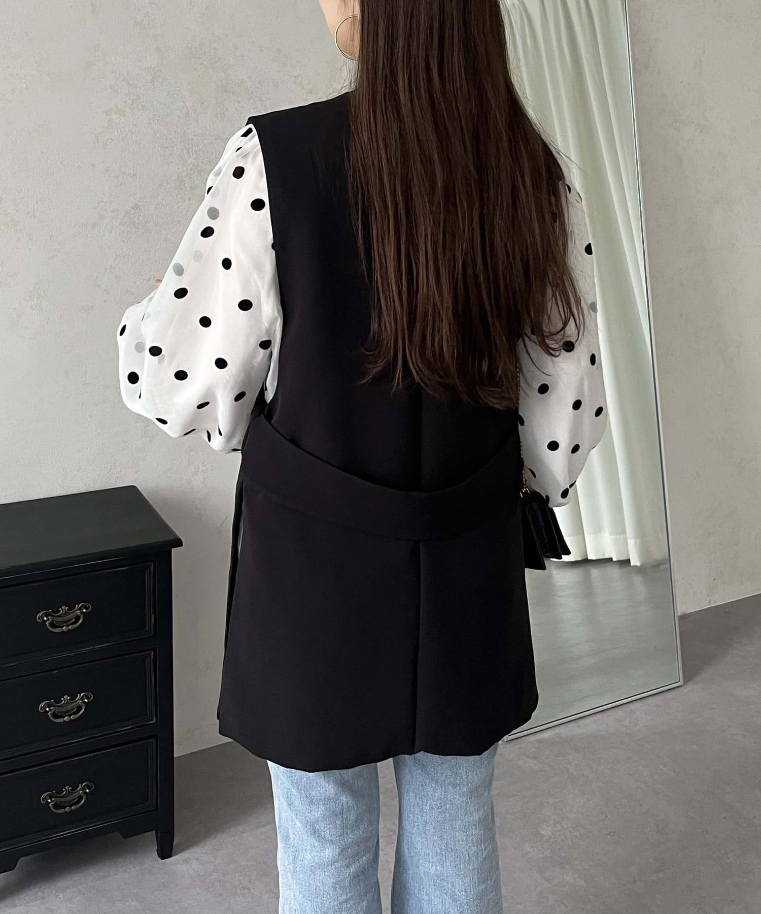 ビジュボタンバックベルトジレ