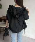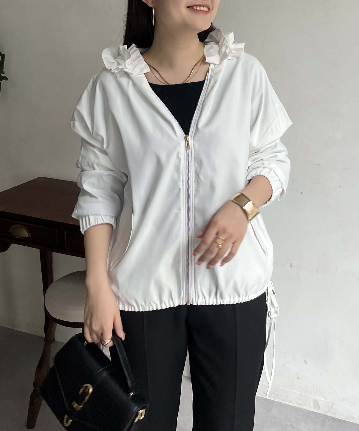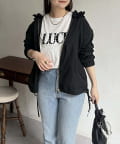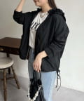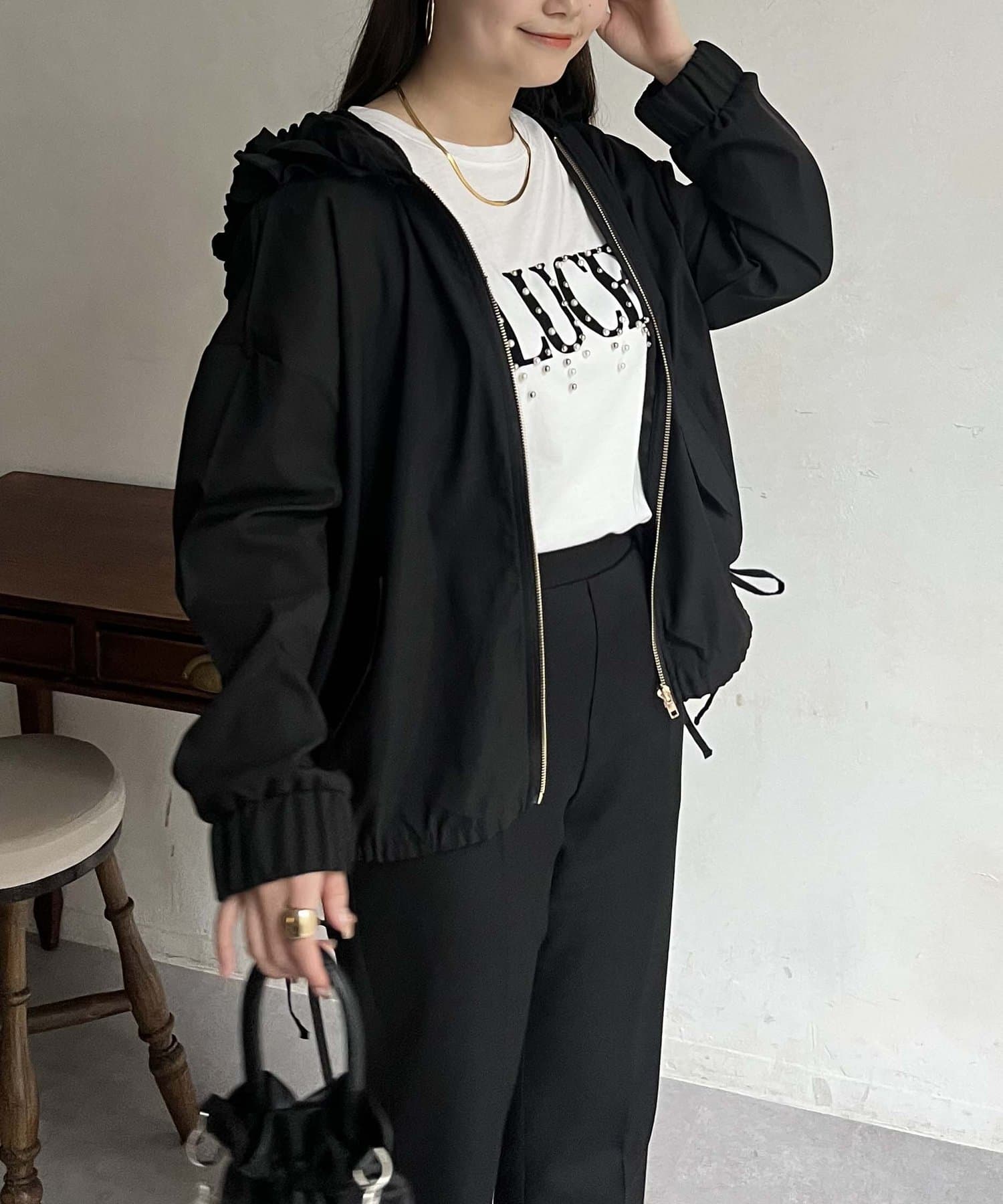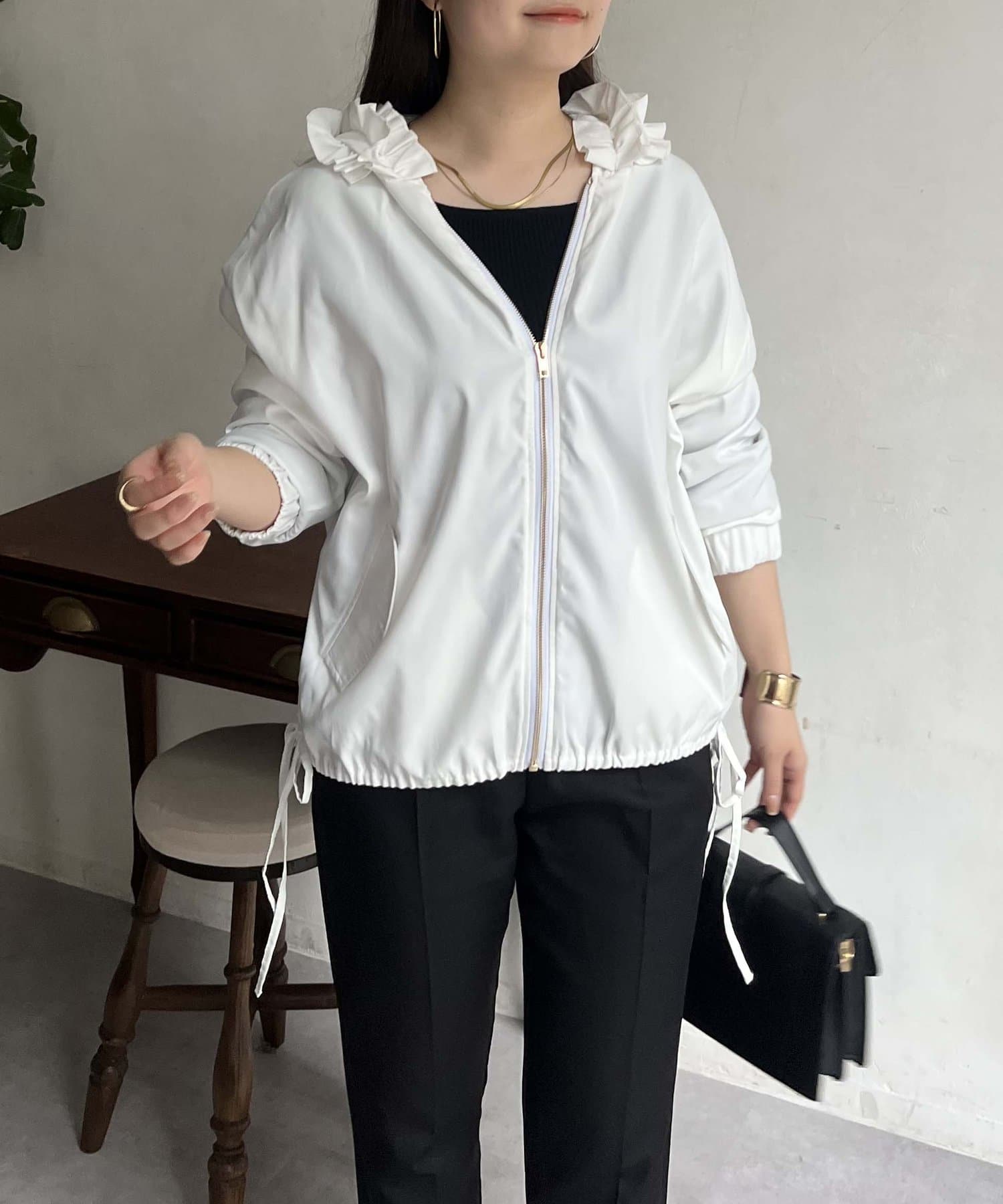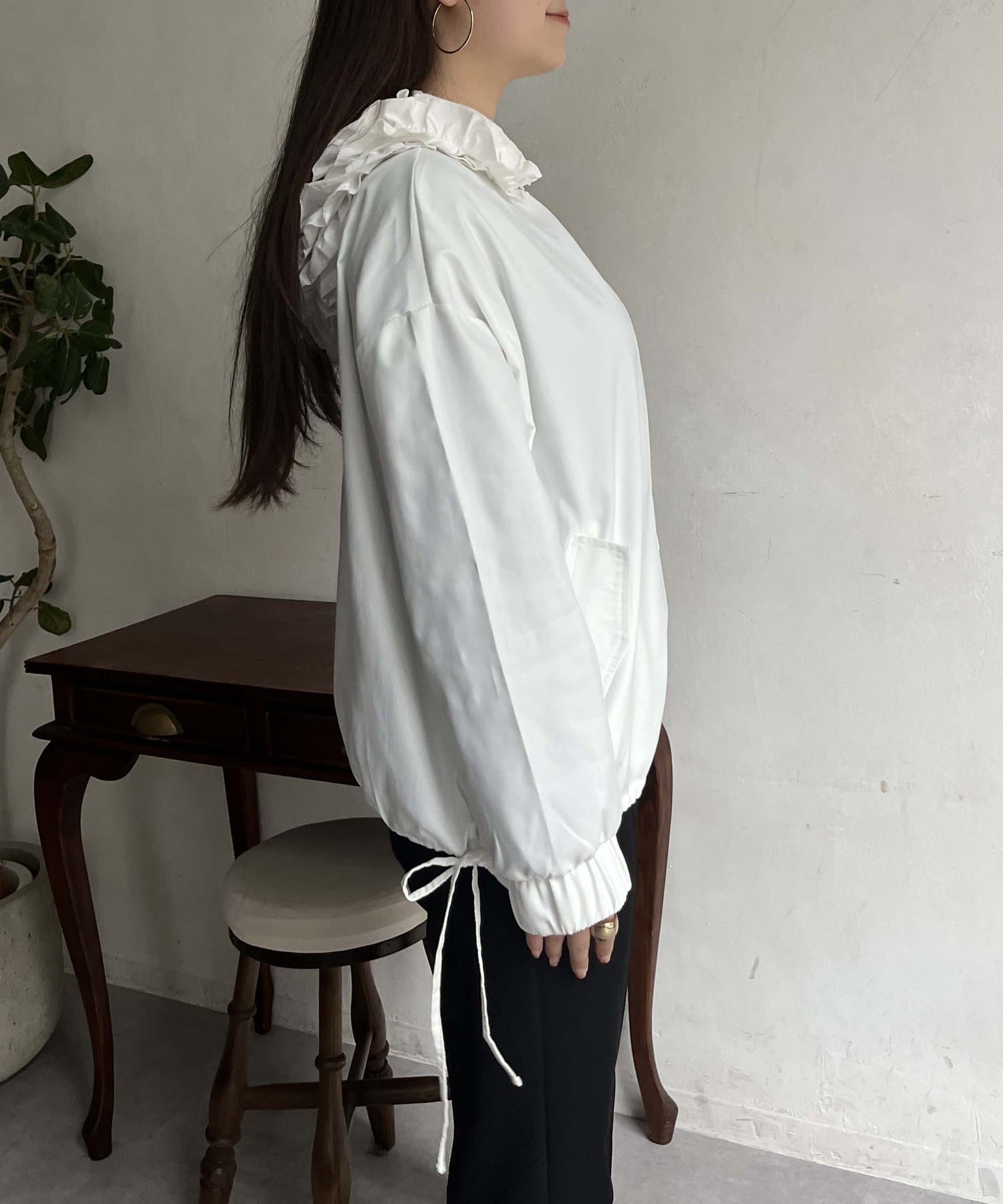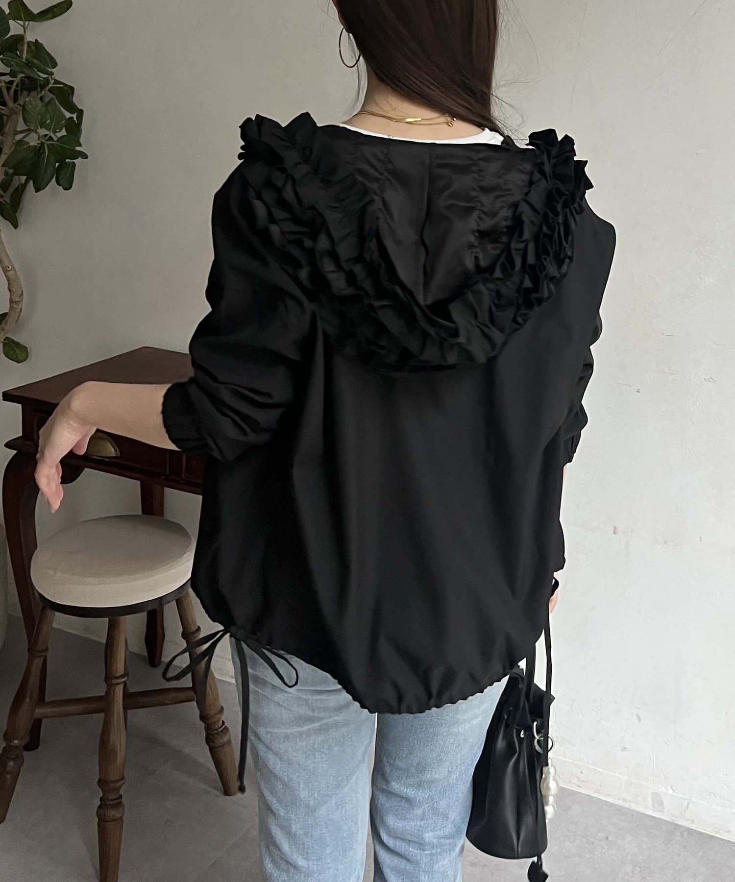 フリルフードが目を惹くパーカー