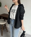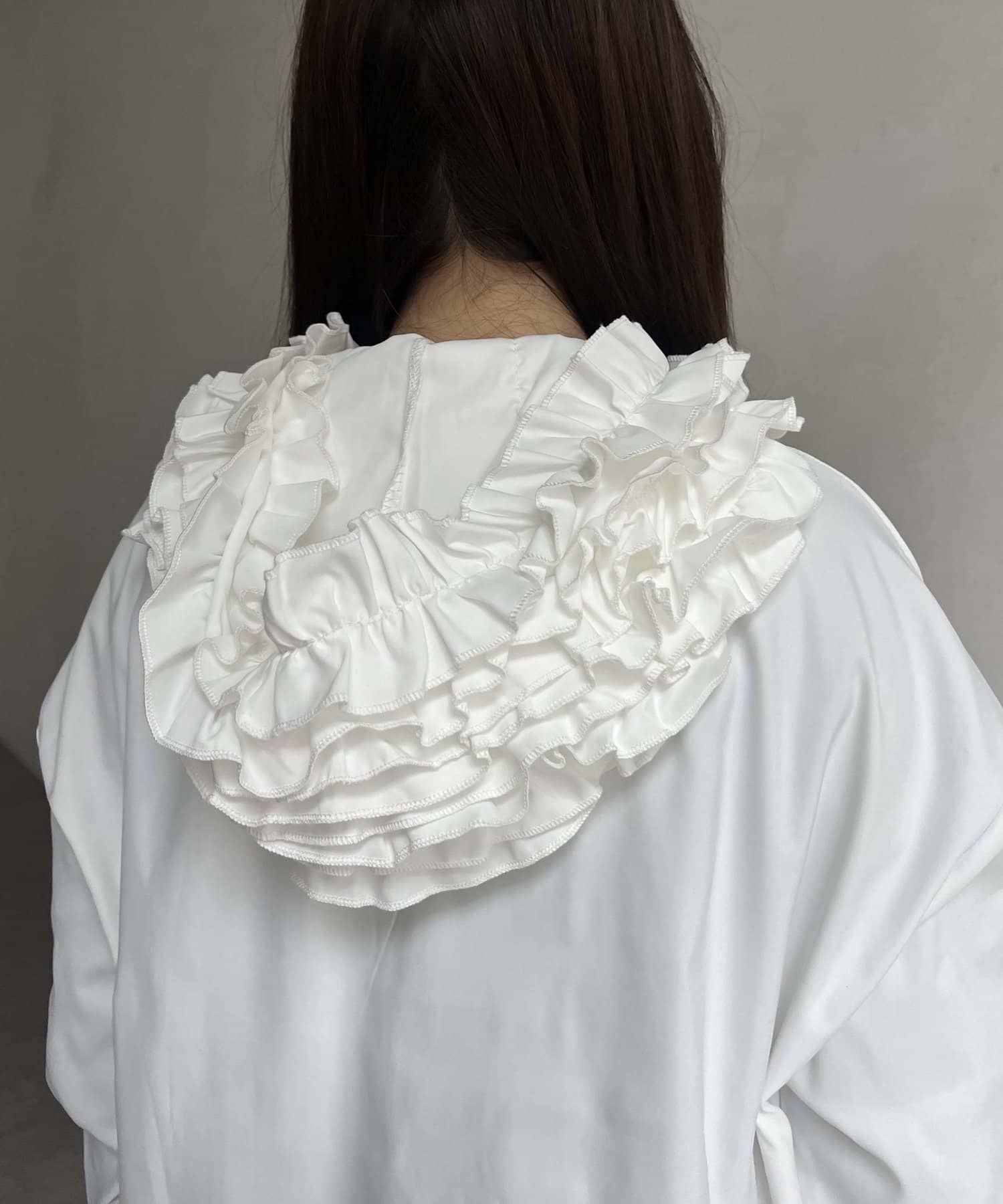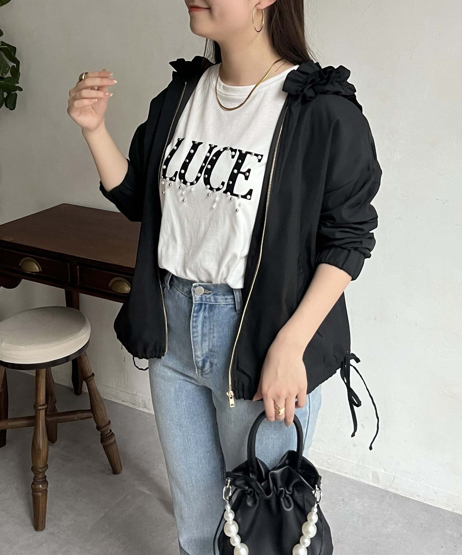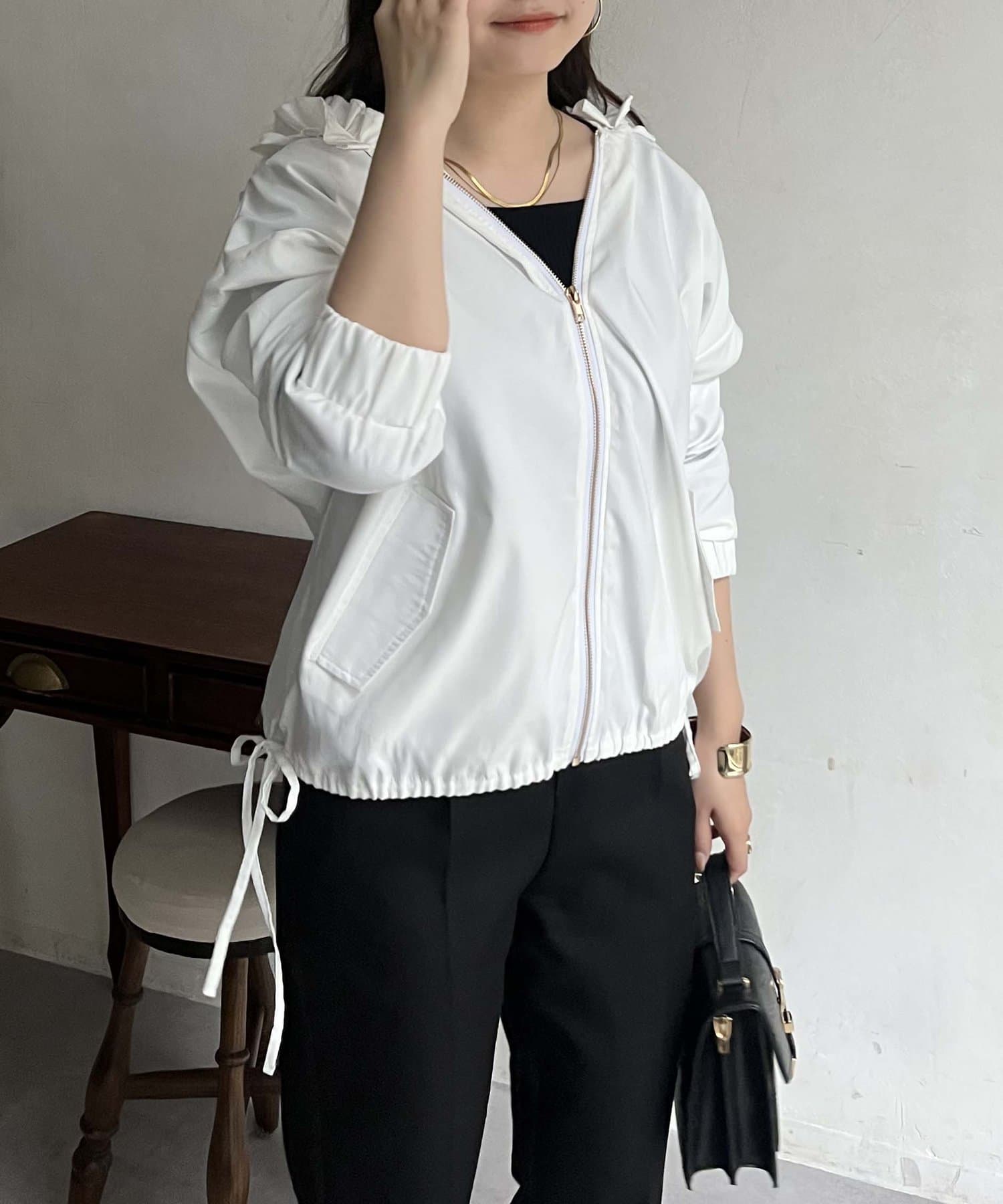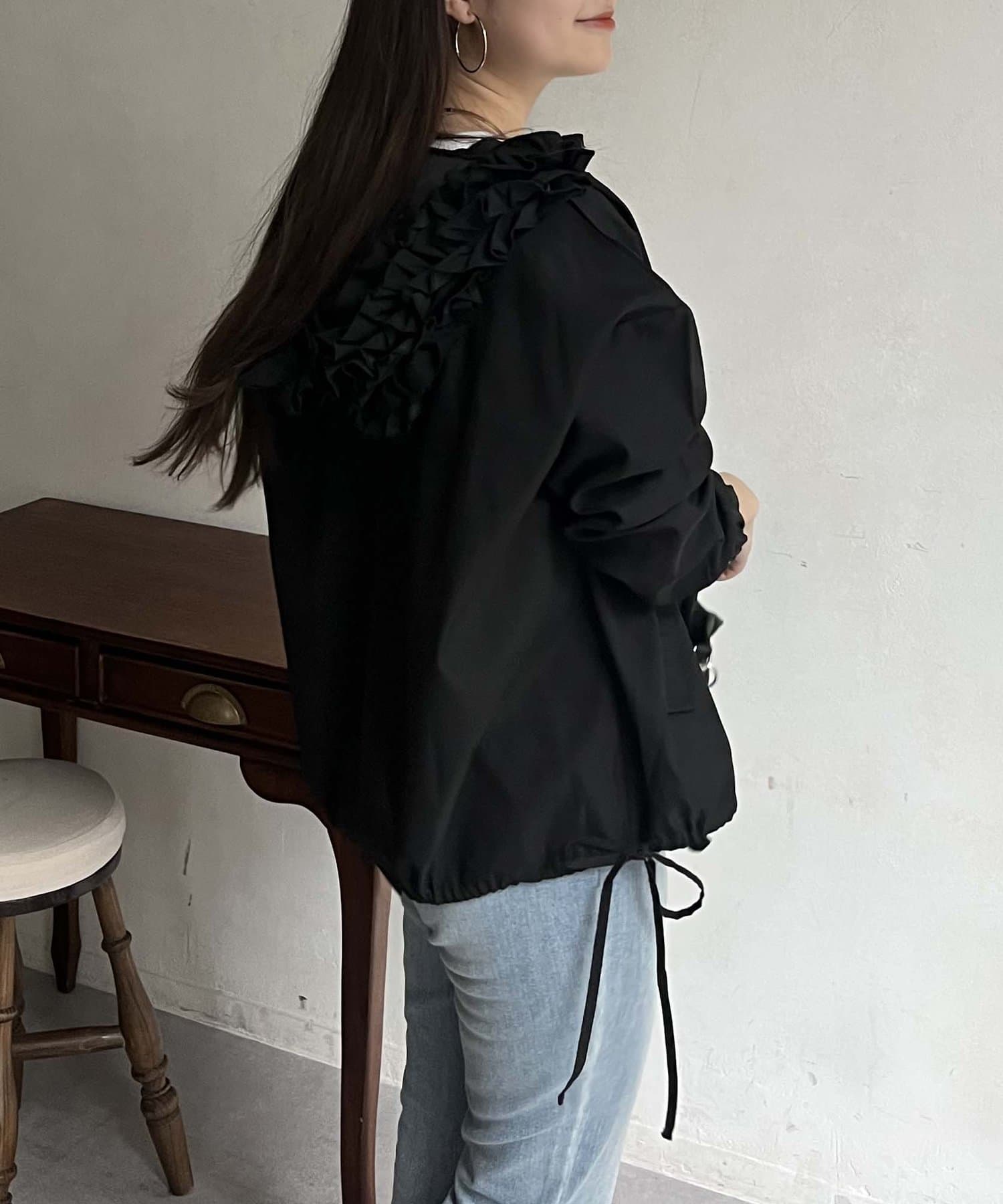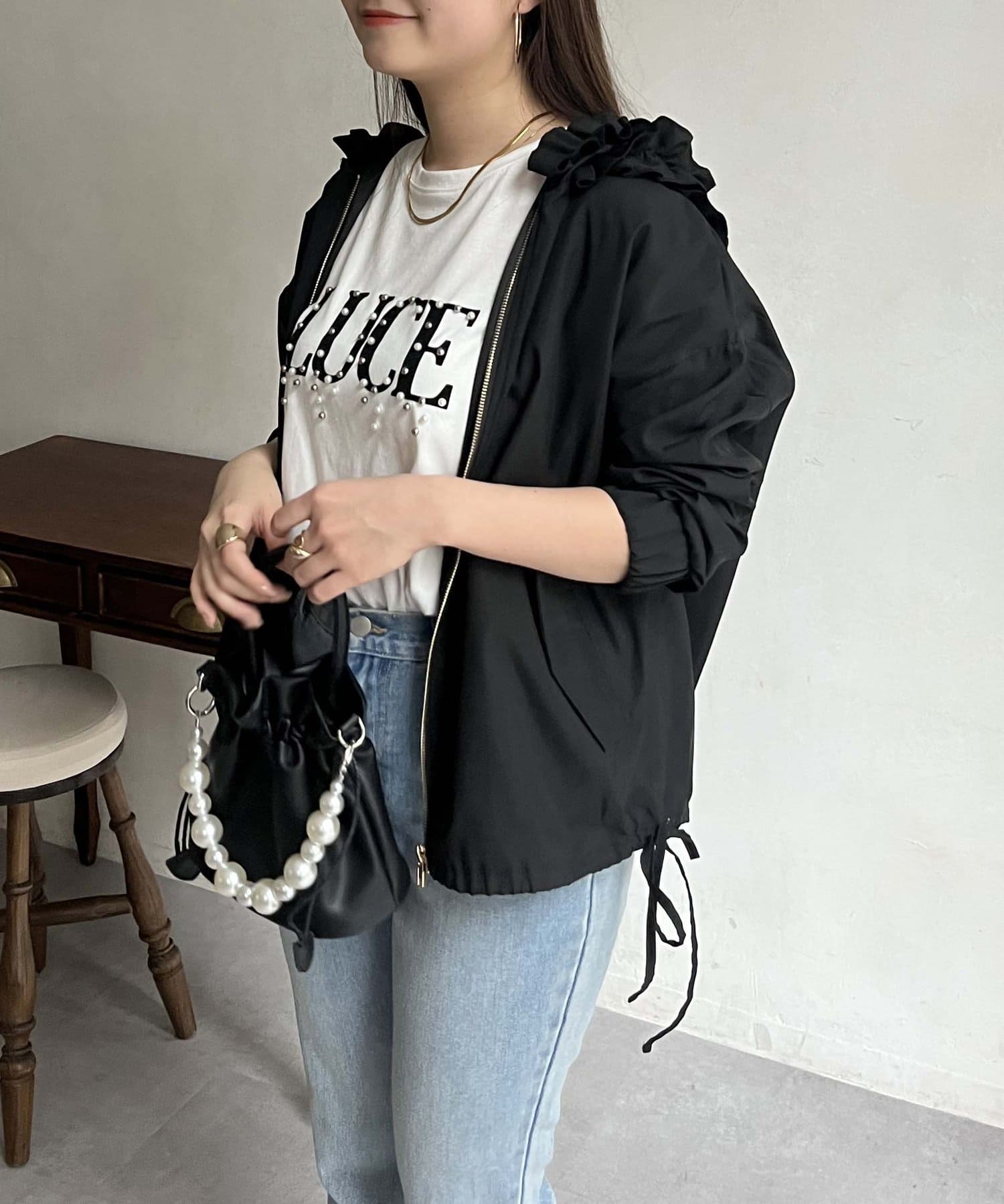 フリルフードが目を惹くパーカー