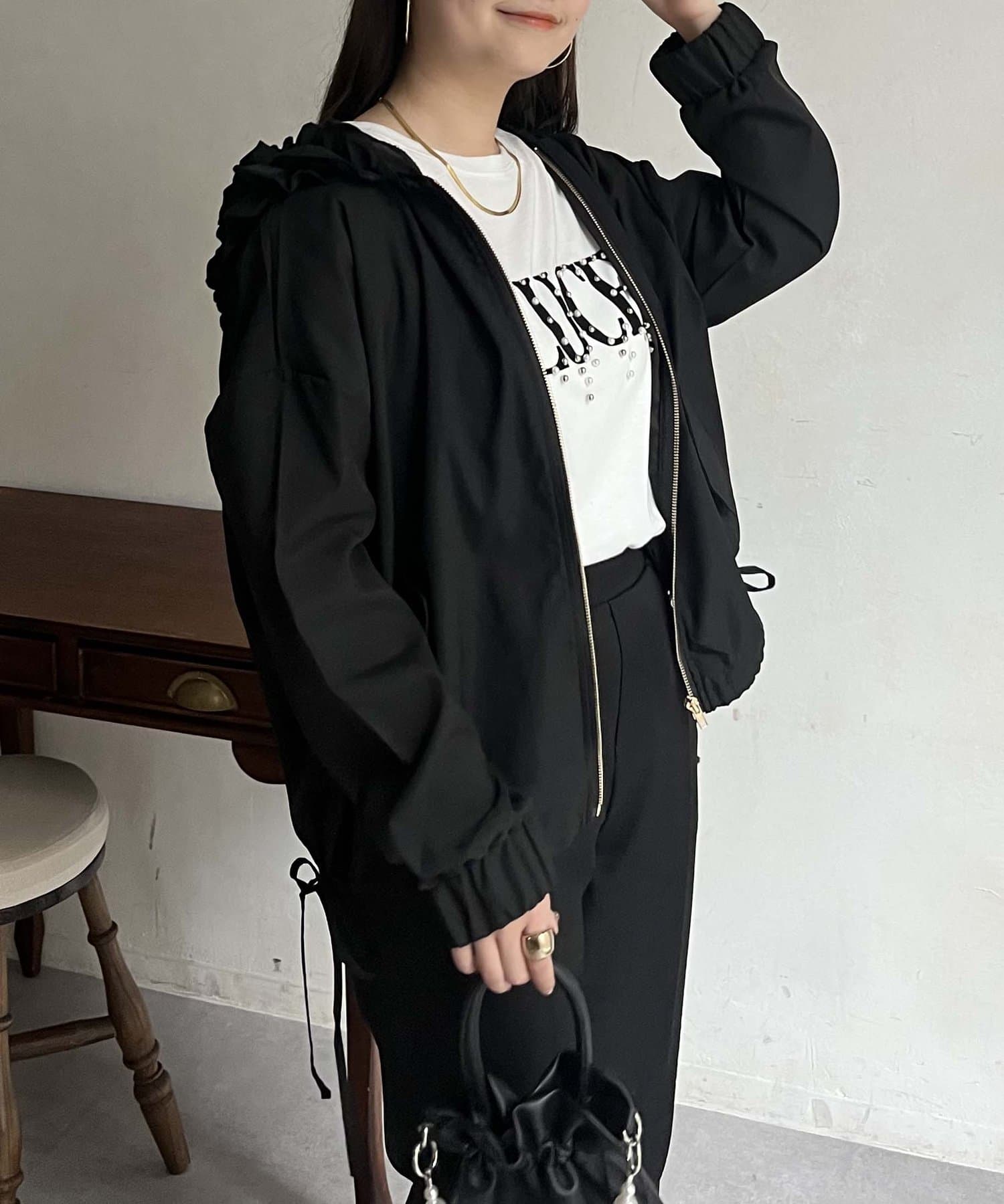 サイドリボンフリルフードパーカー