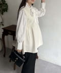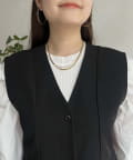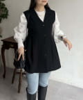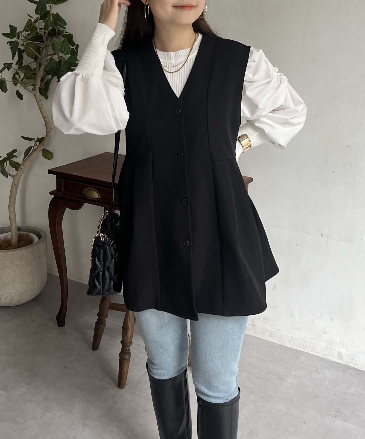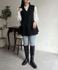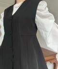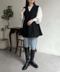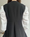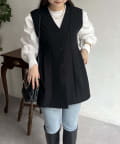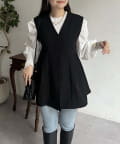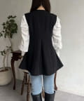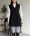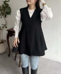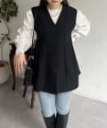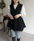 Vネックタックプリーツペプラムジレ