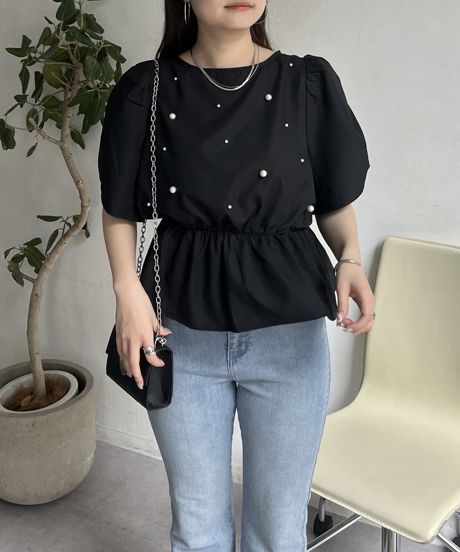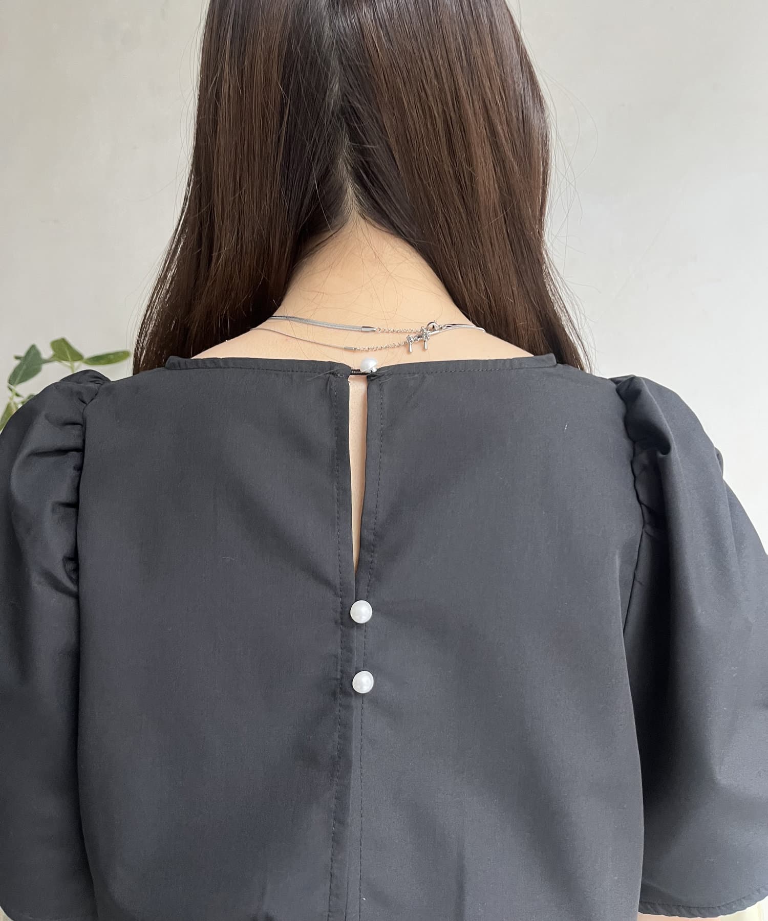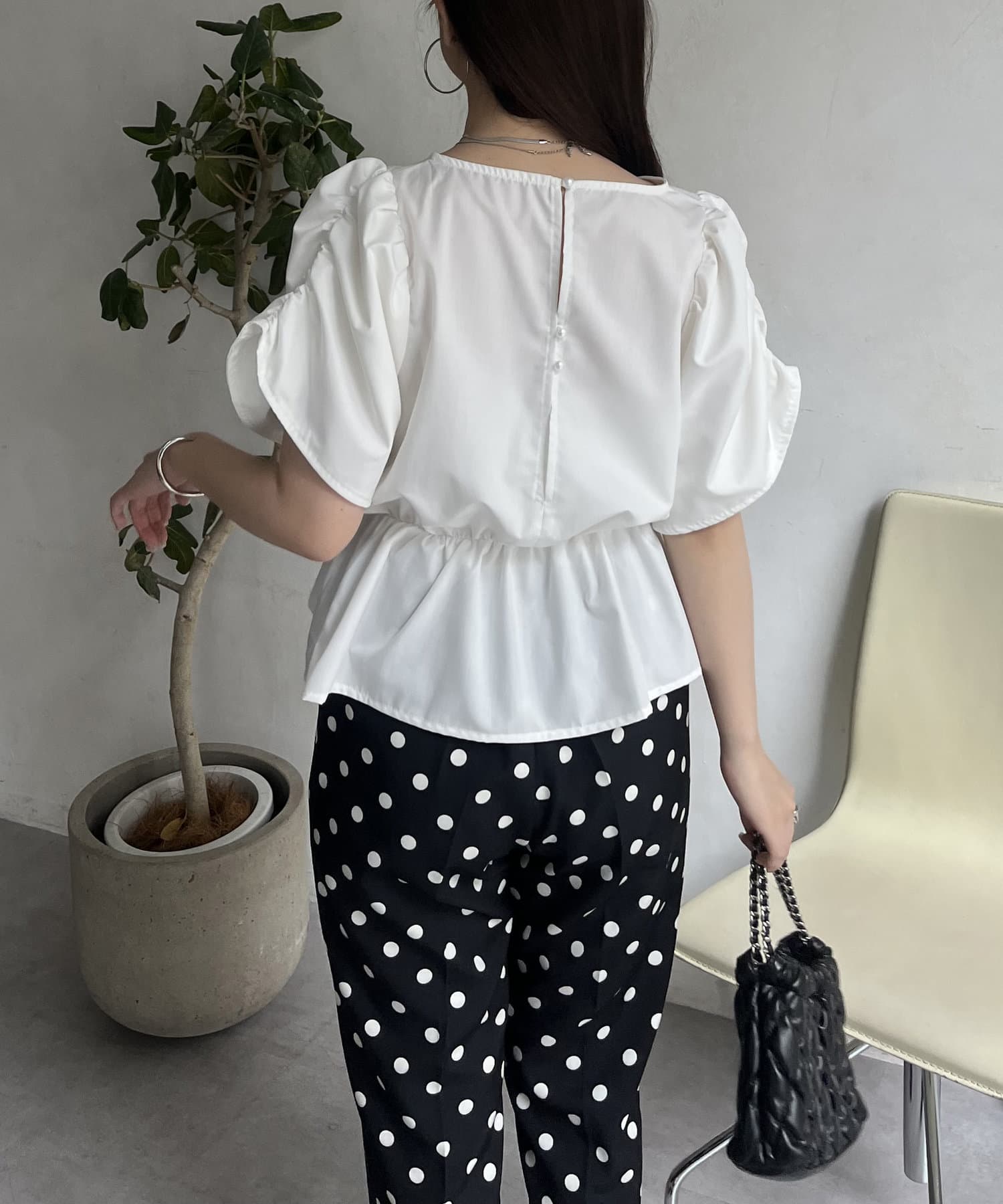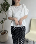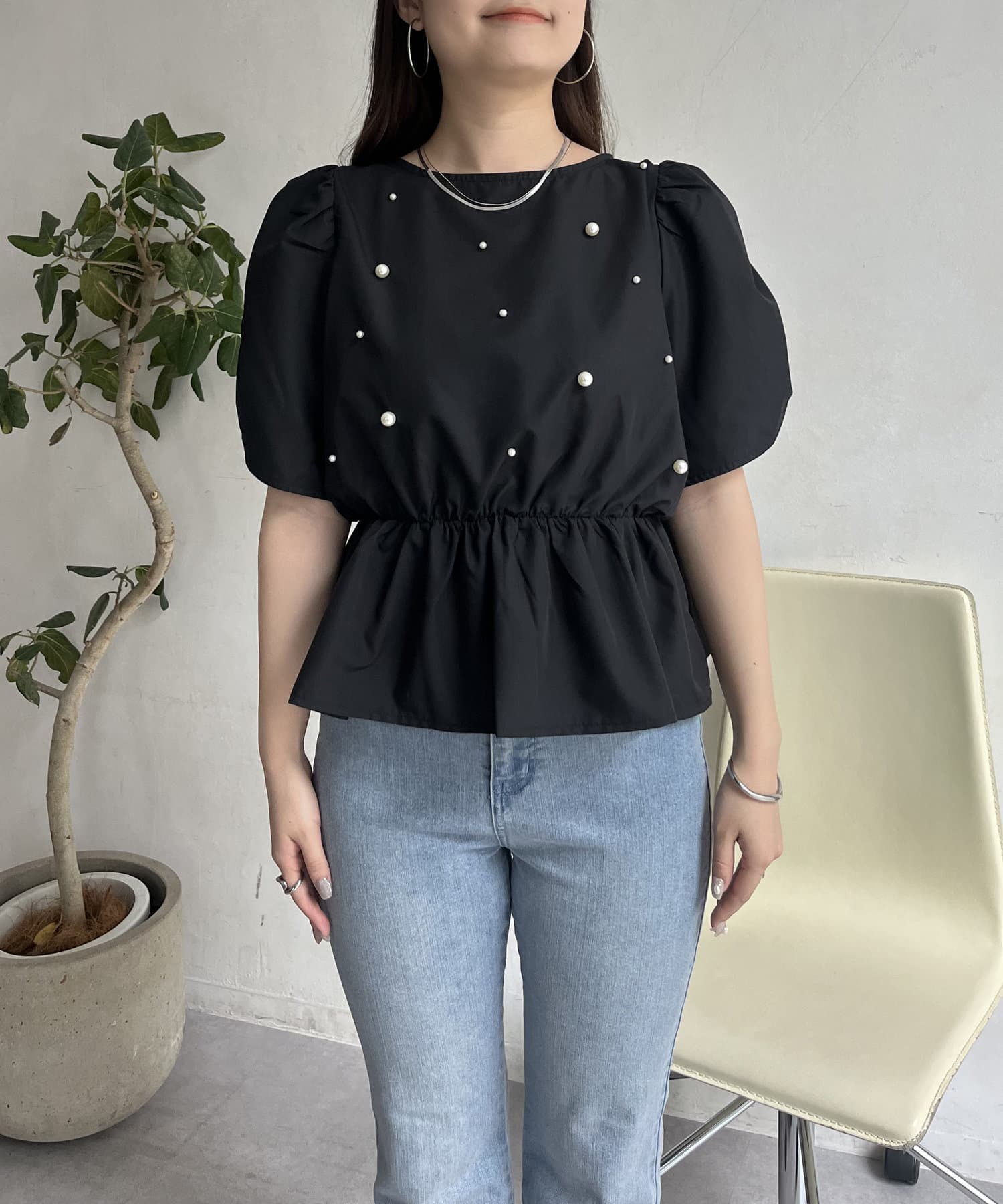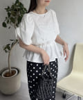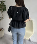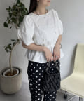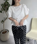 ギャザースリーブパールペプラムブラウス
