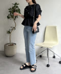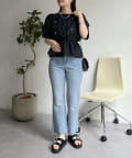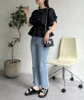 ●短めのペプラムブラウスなのでタイトスカートなどスカートとの相性も抜群です