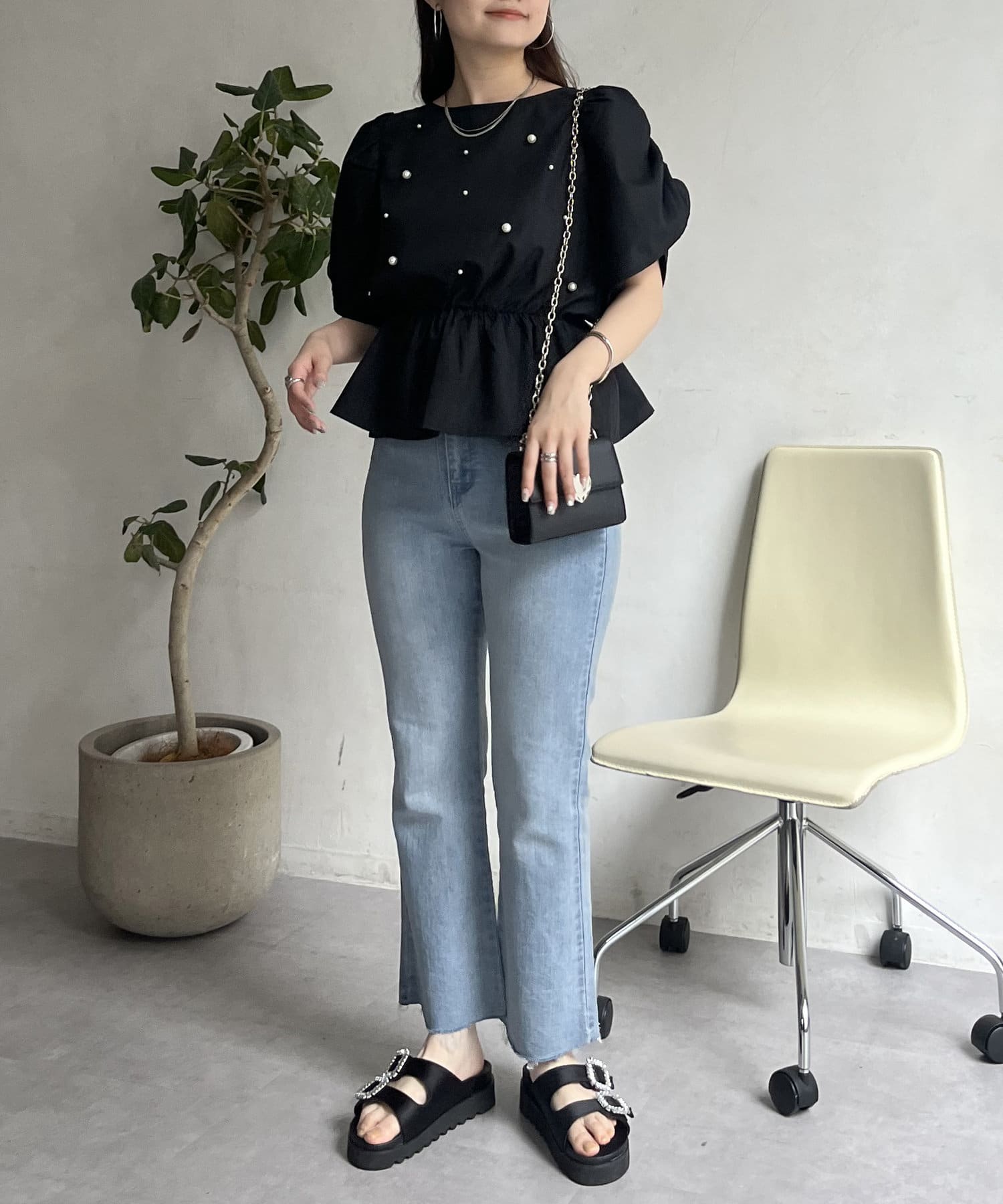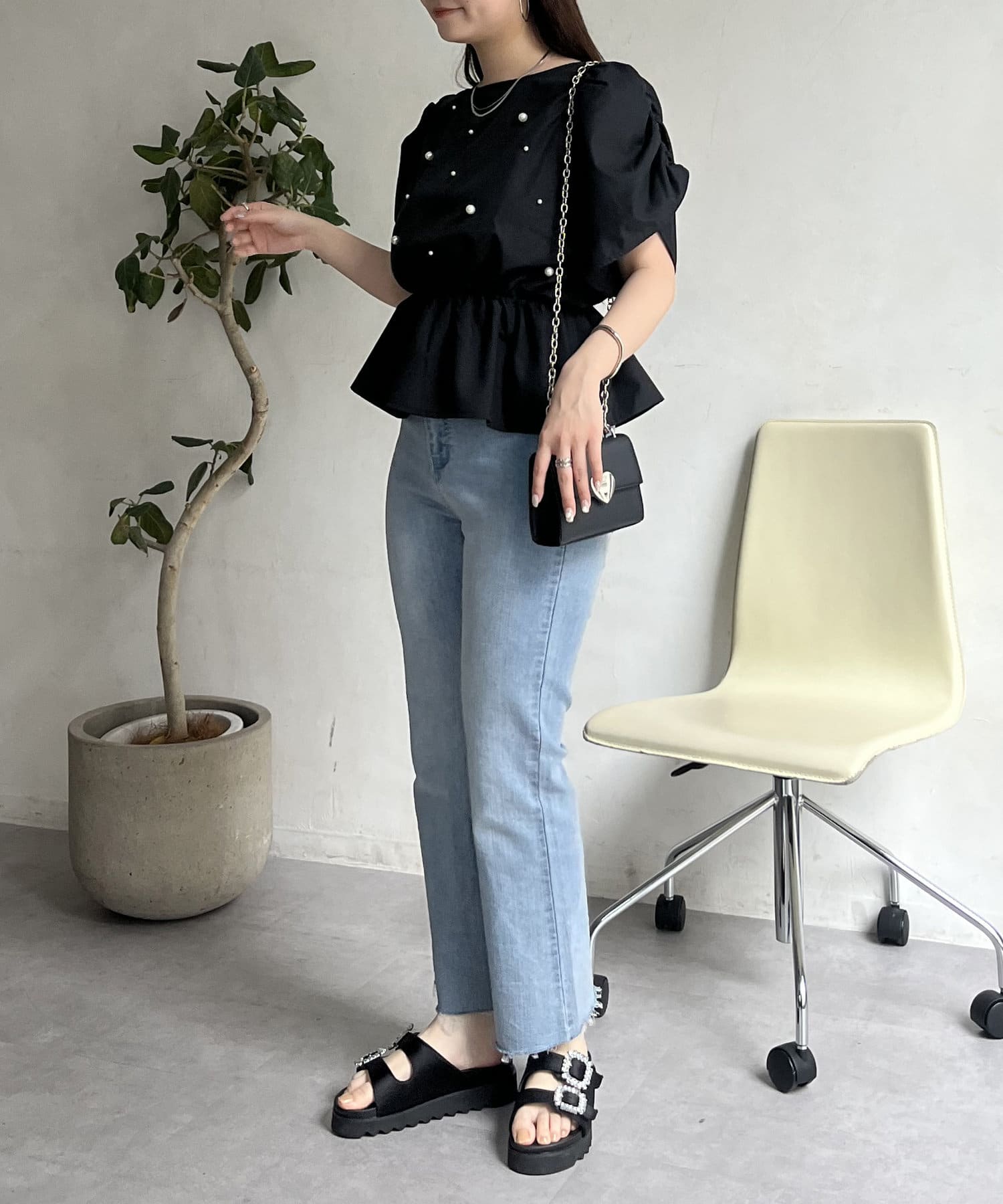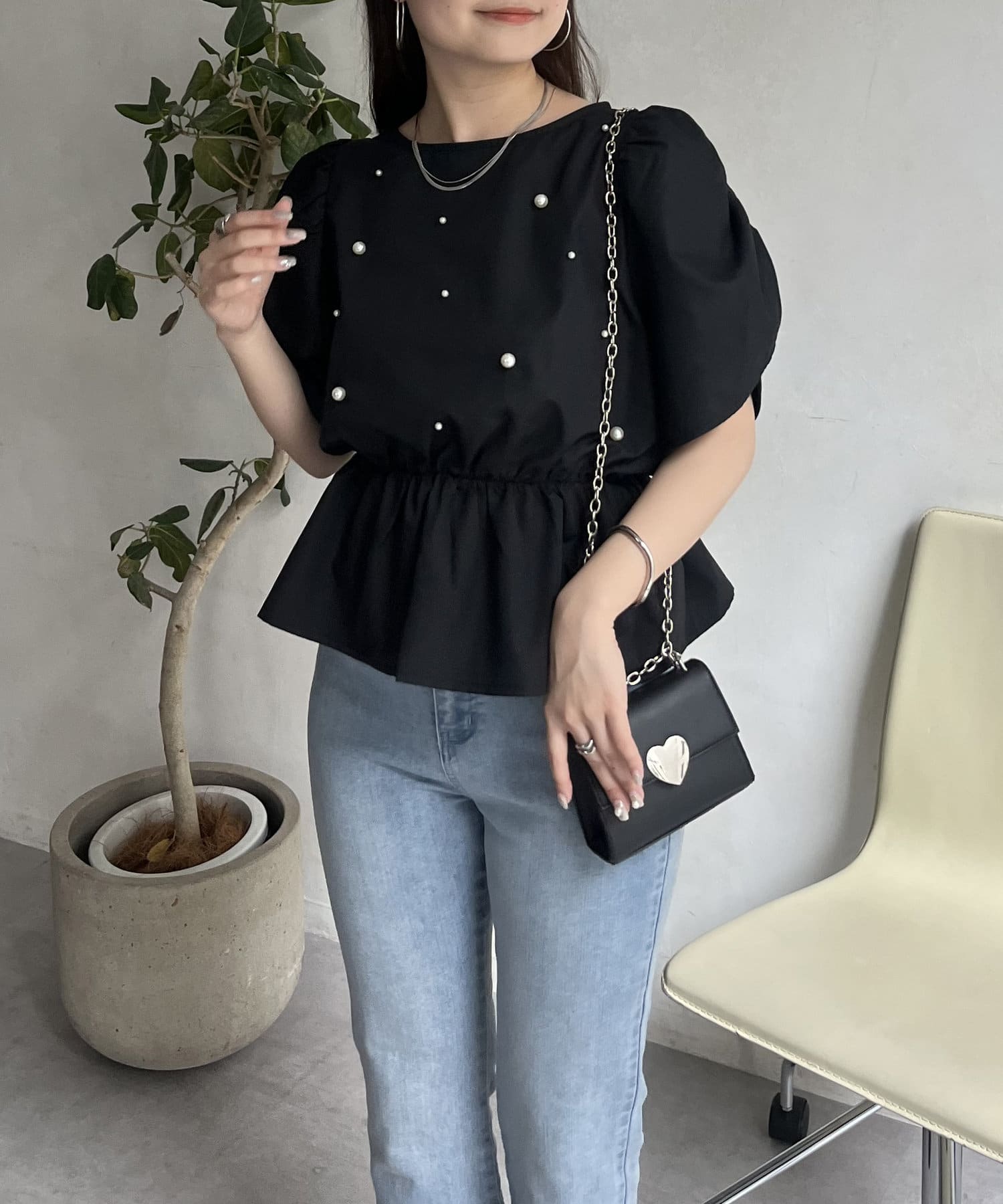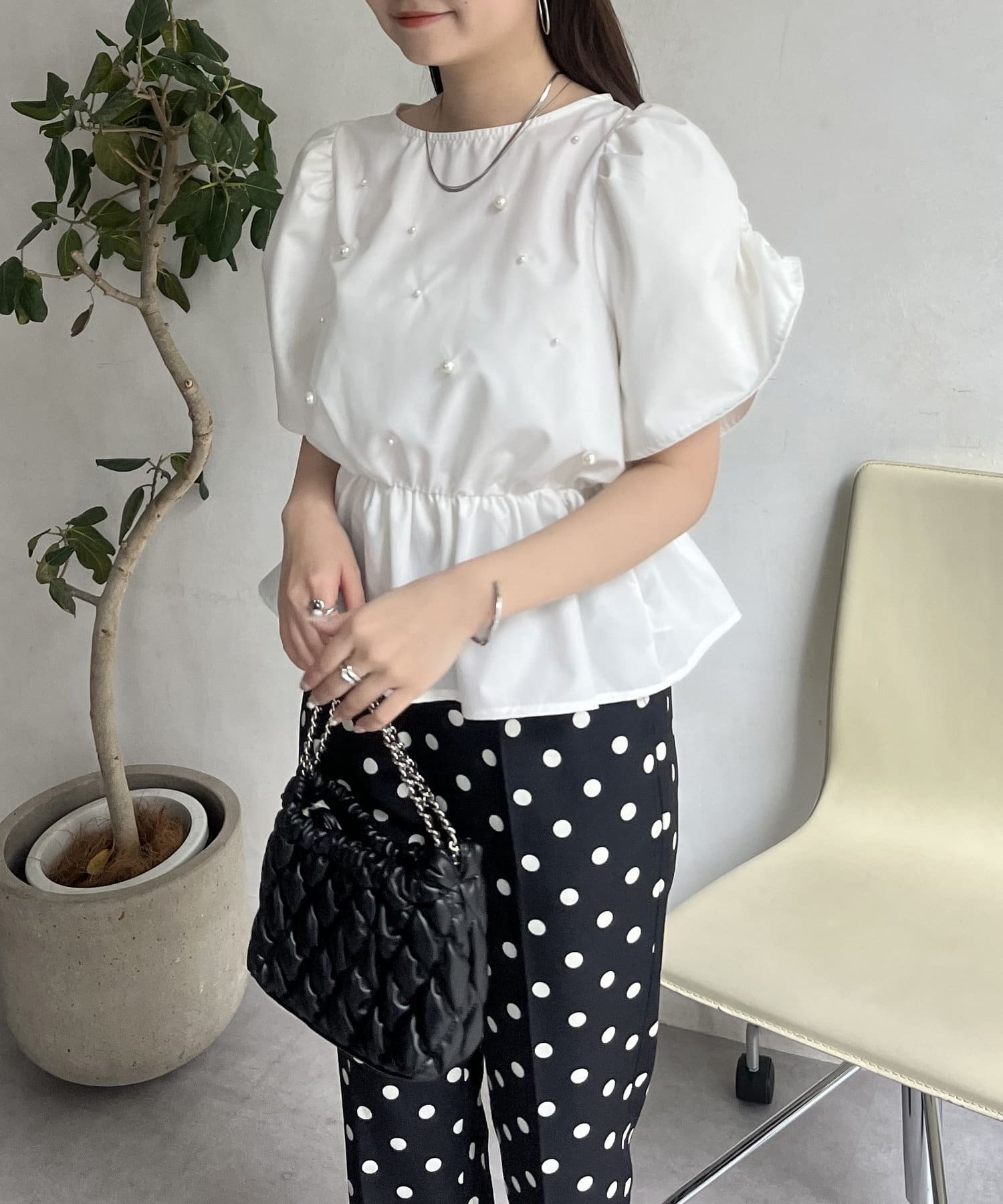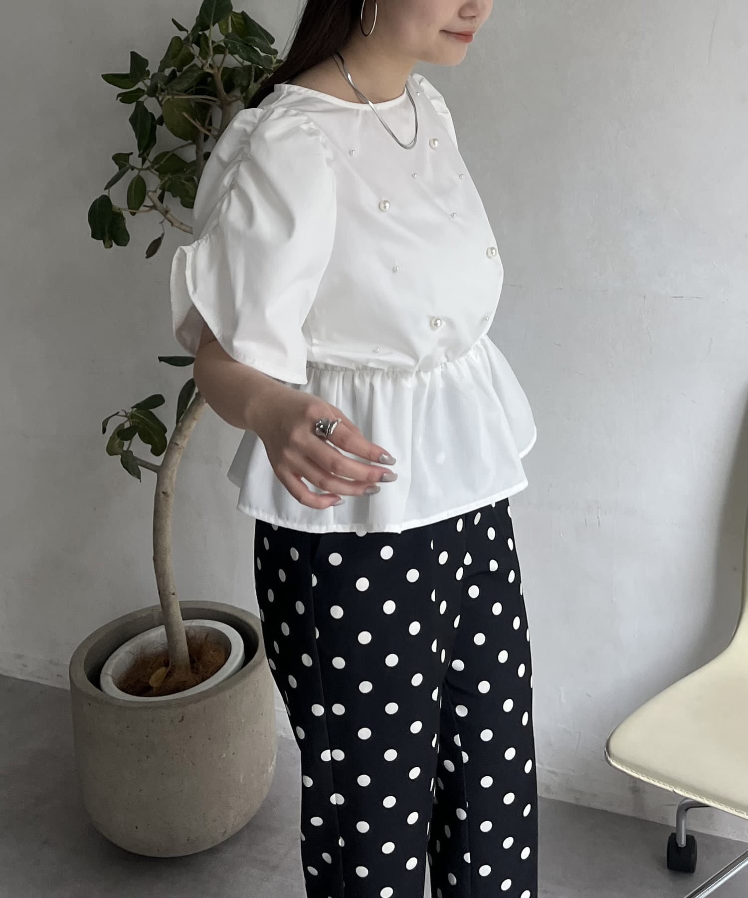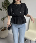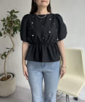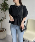 ペプラムブラウス/パール/ブラウス/夏/大人可愛い