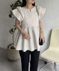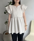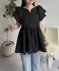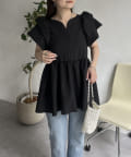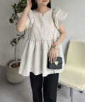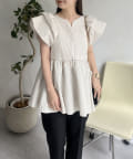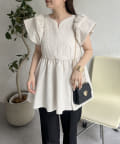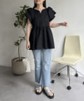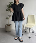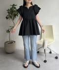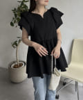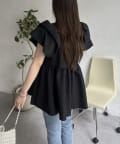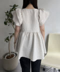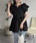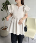 ハートネックバルーンスリーブペプラムブラウス