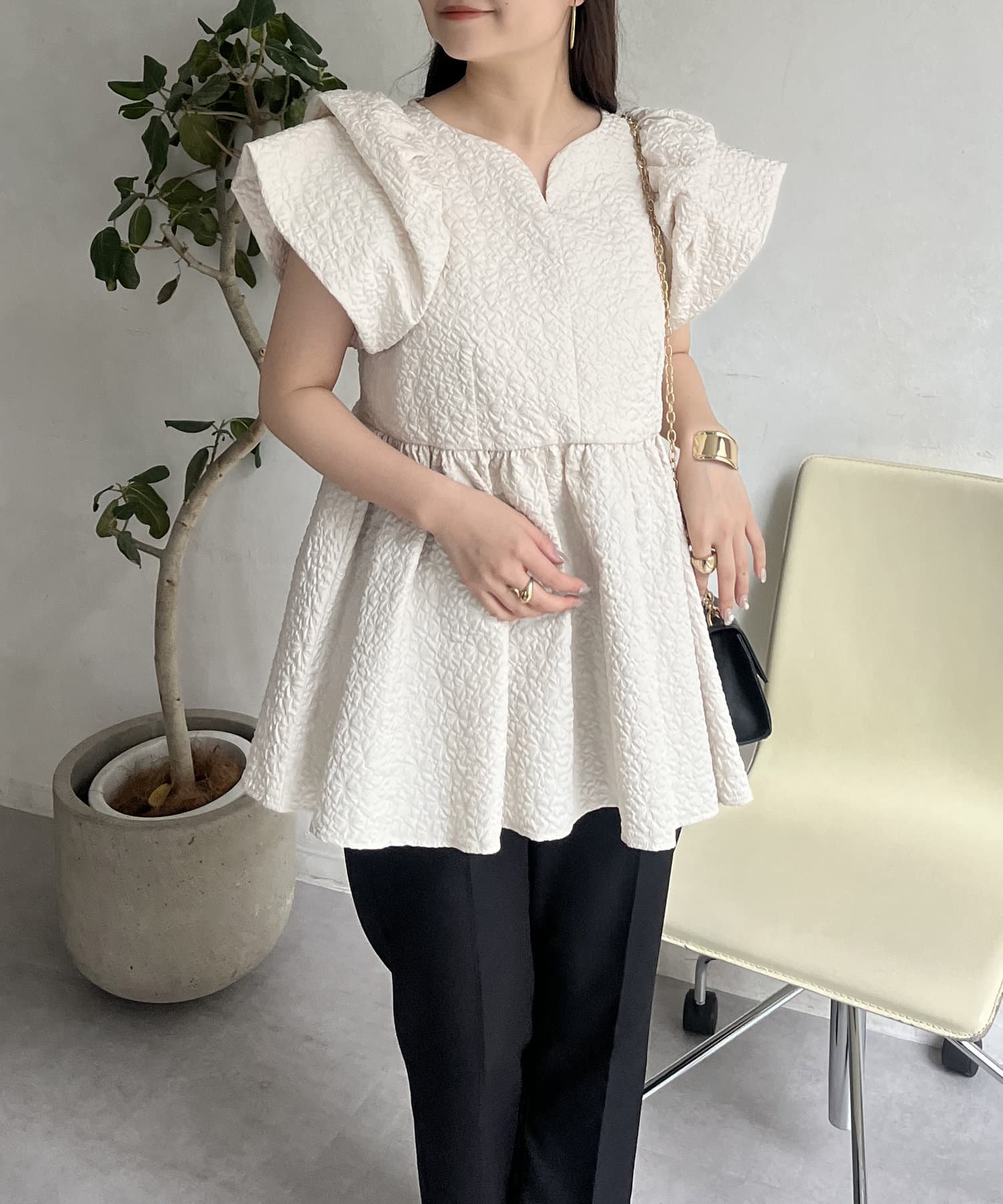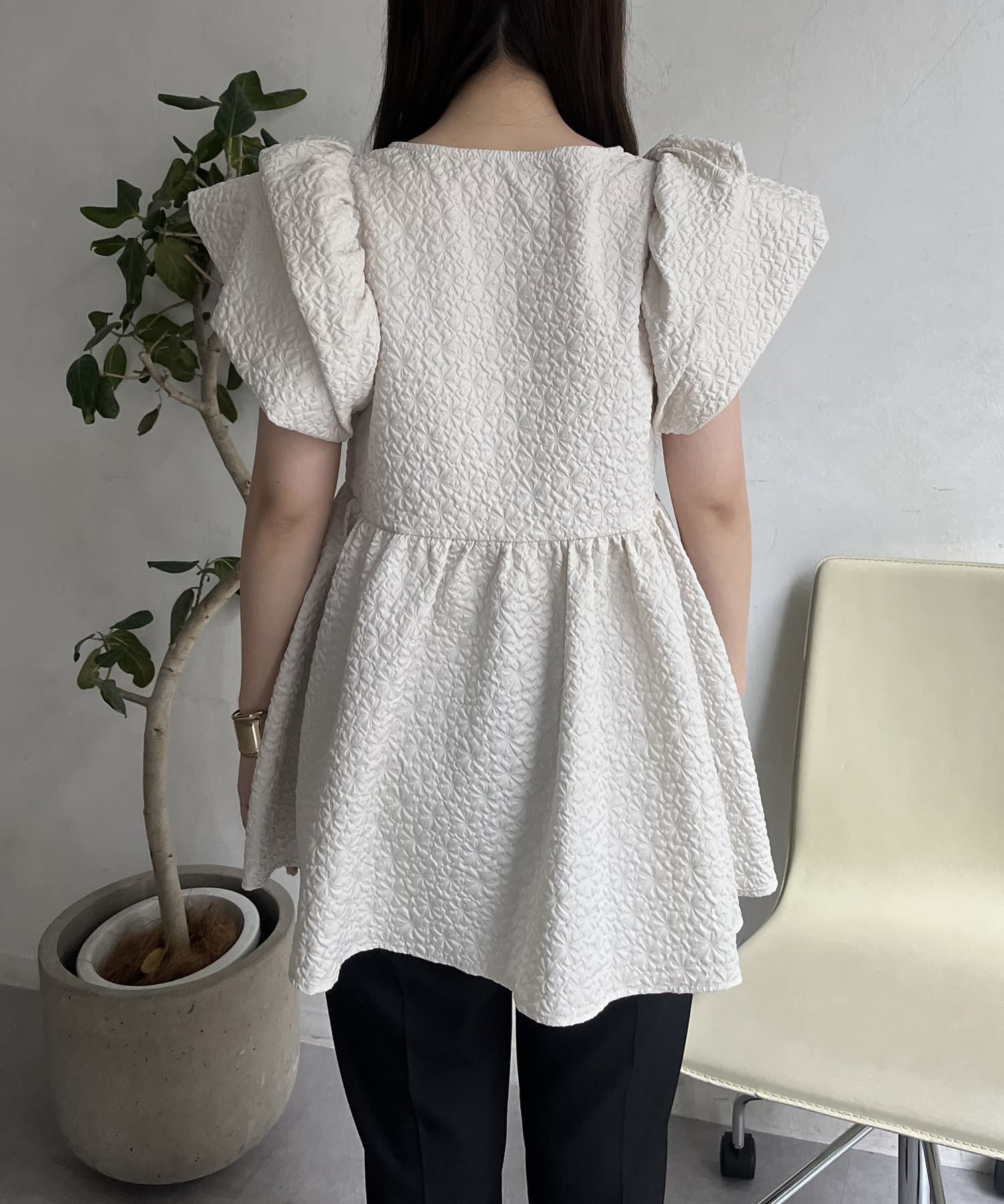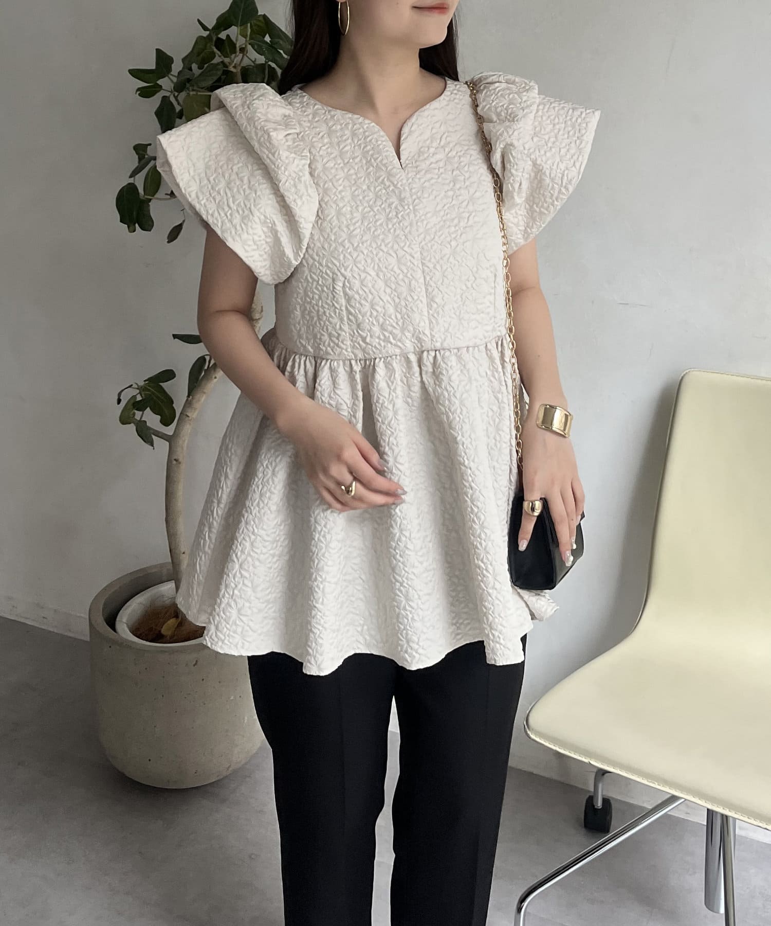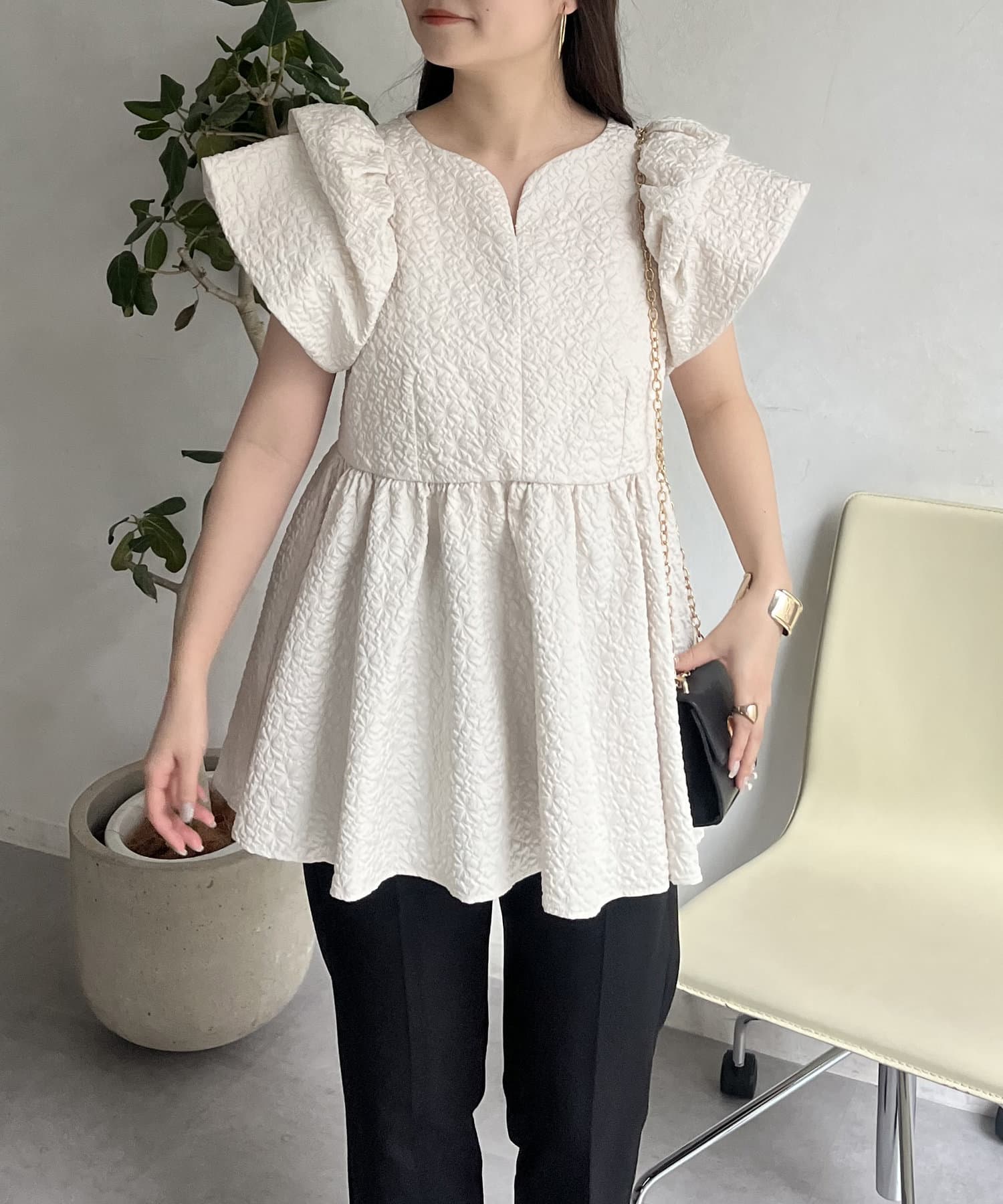 ボリューム感と細部まで施されたデザインが高見えするブラウス