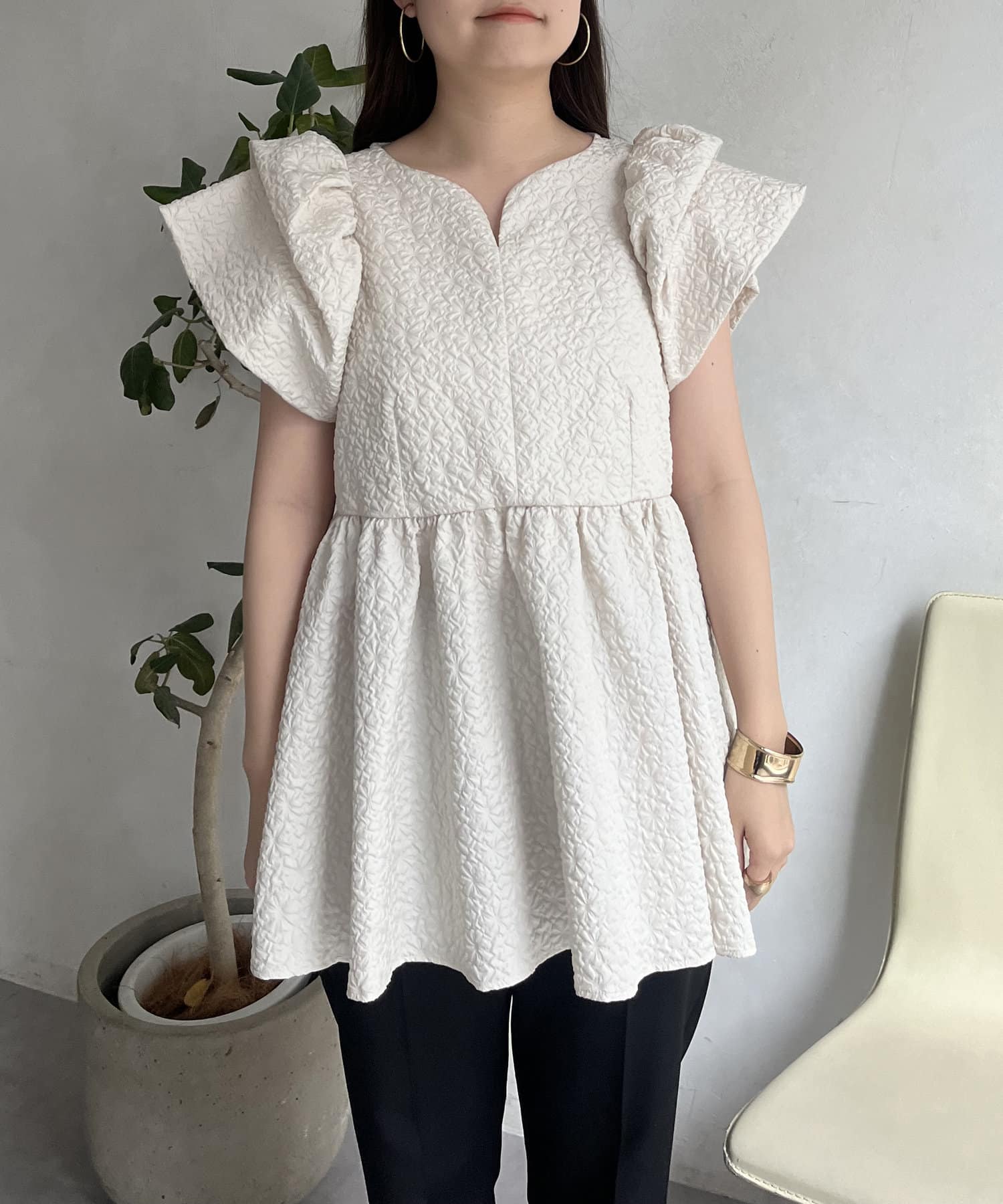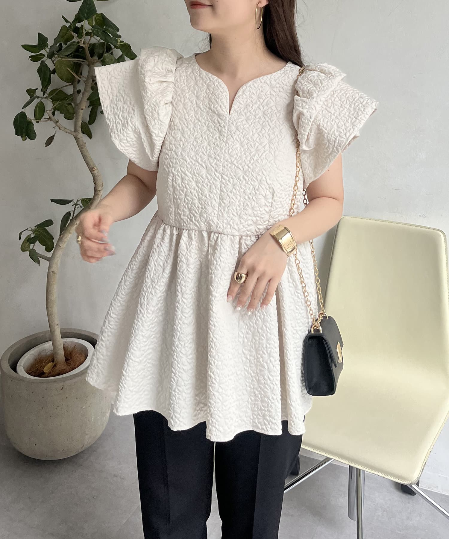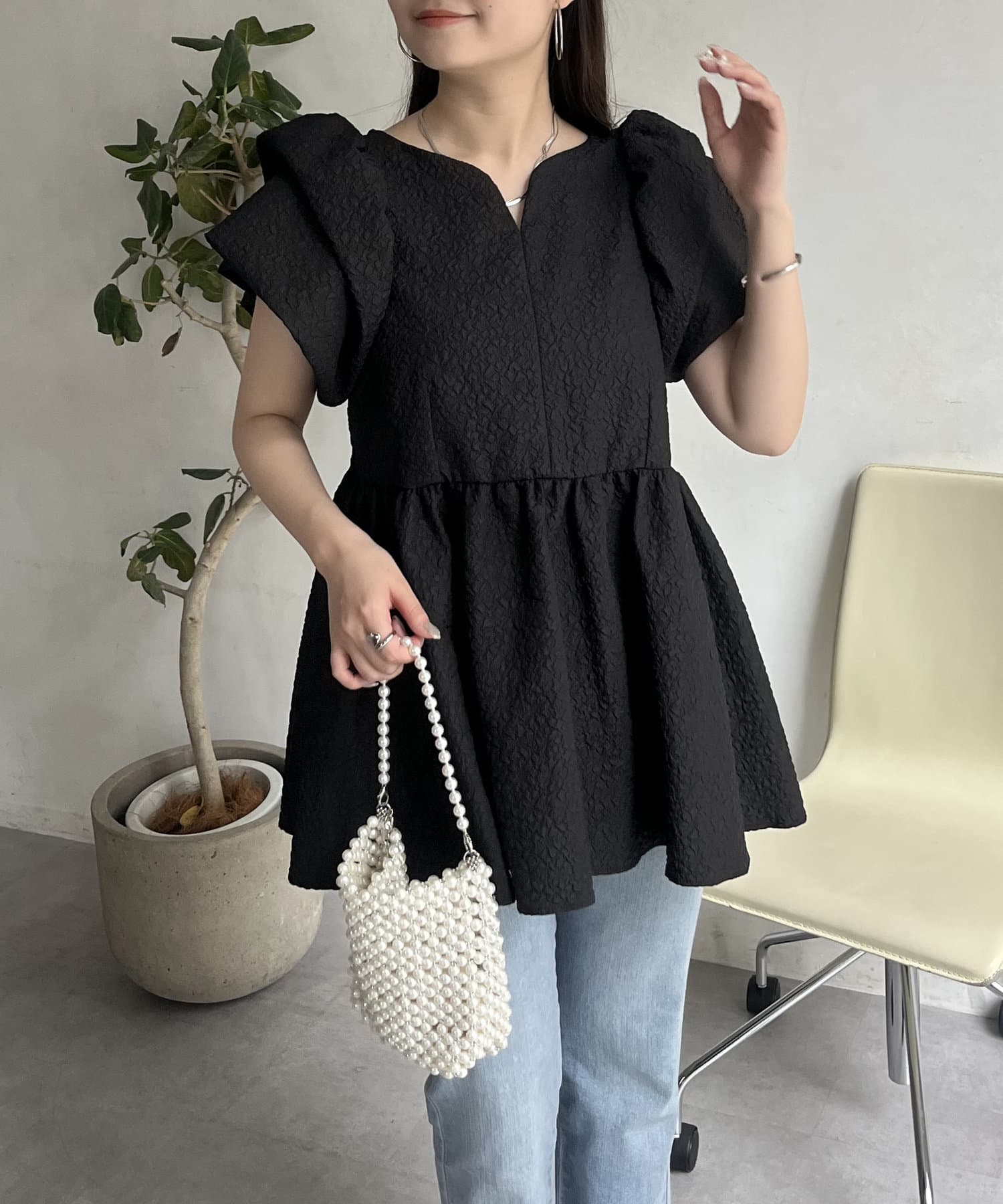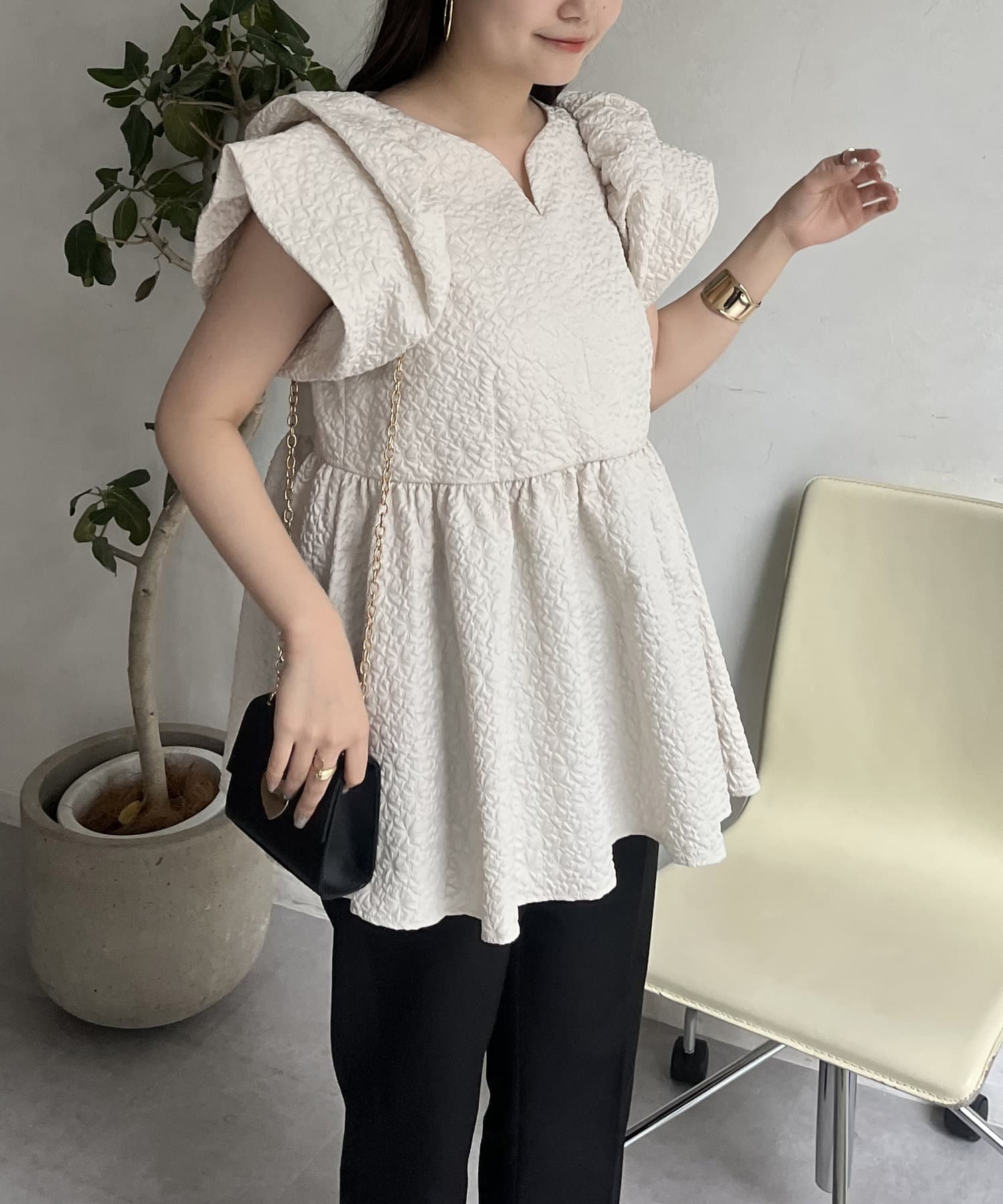 ボリューム感と細部まで施されたデザインが高見えするブラウス
