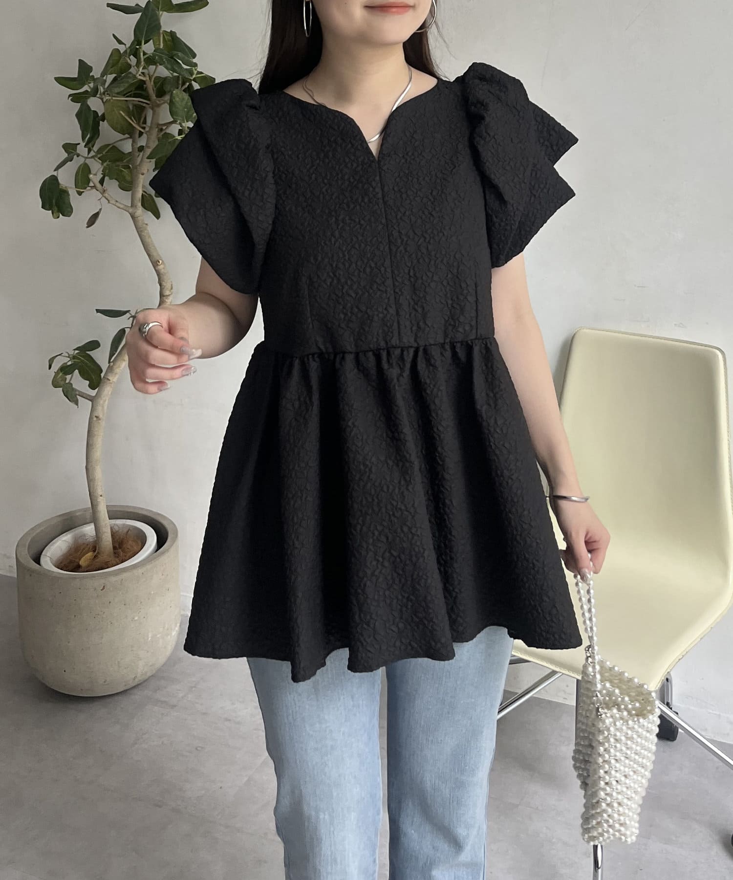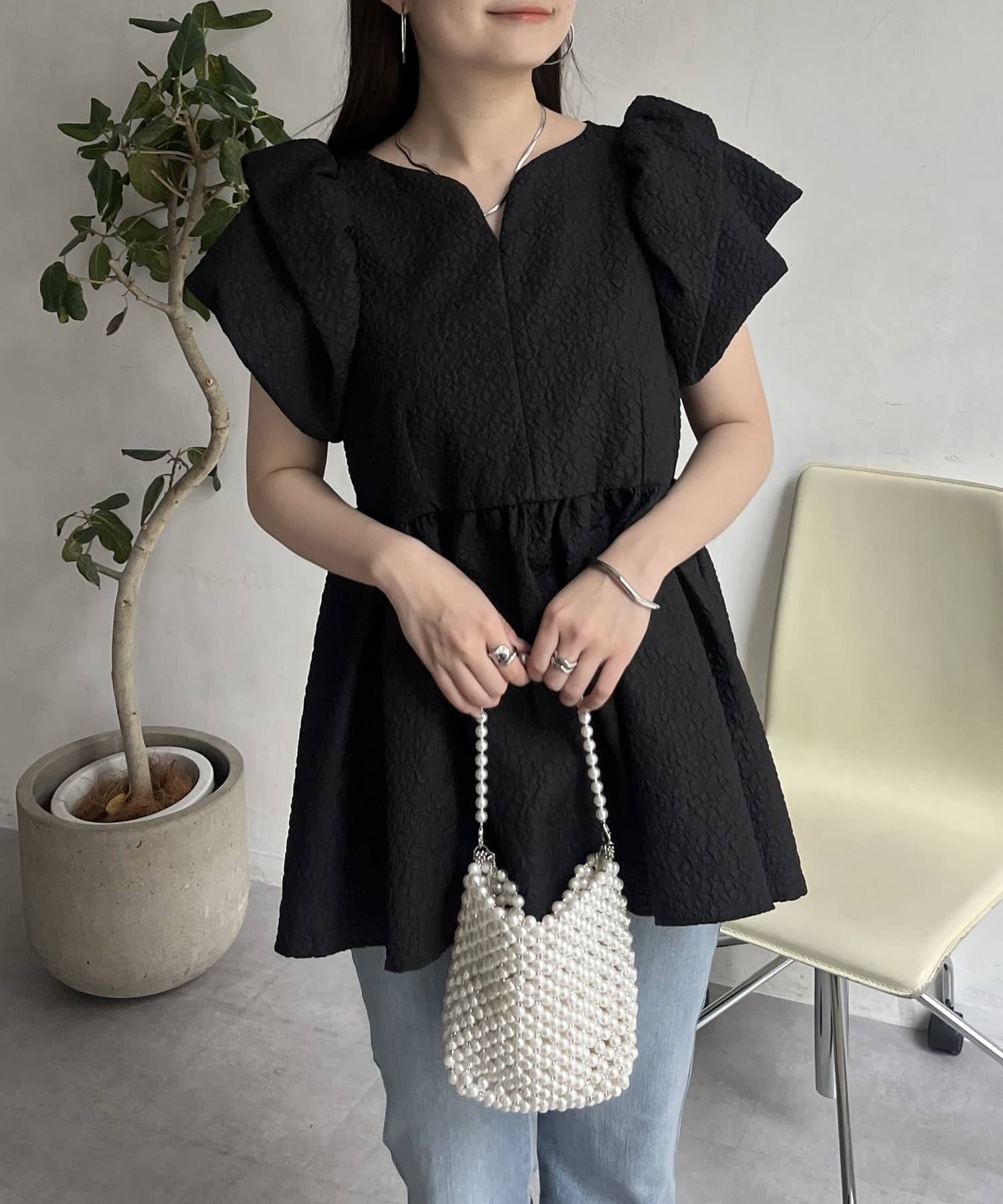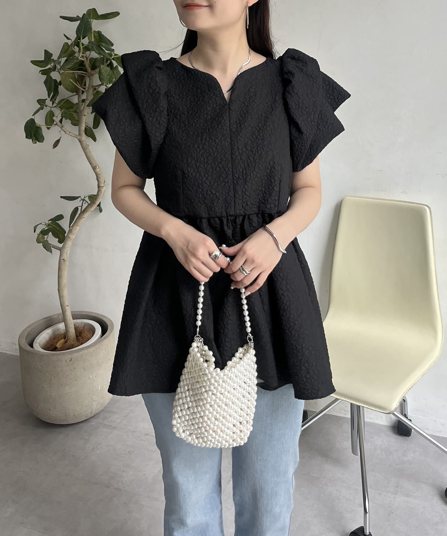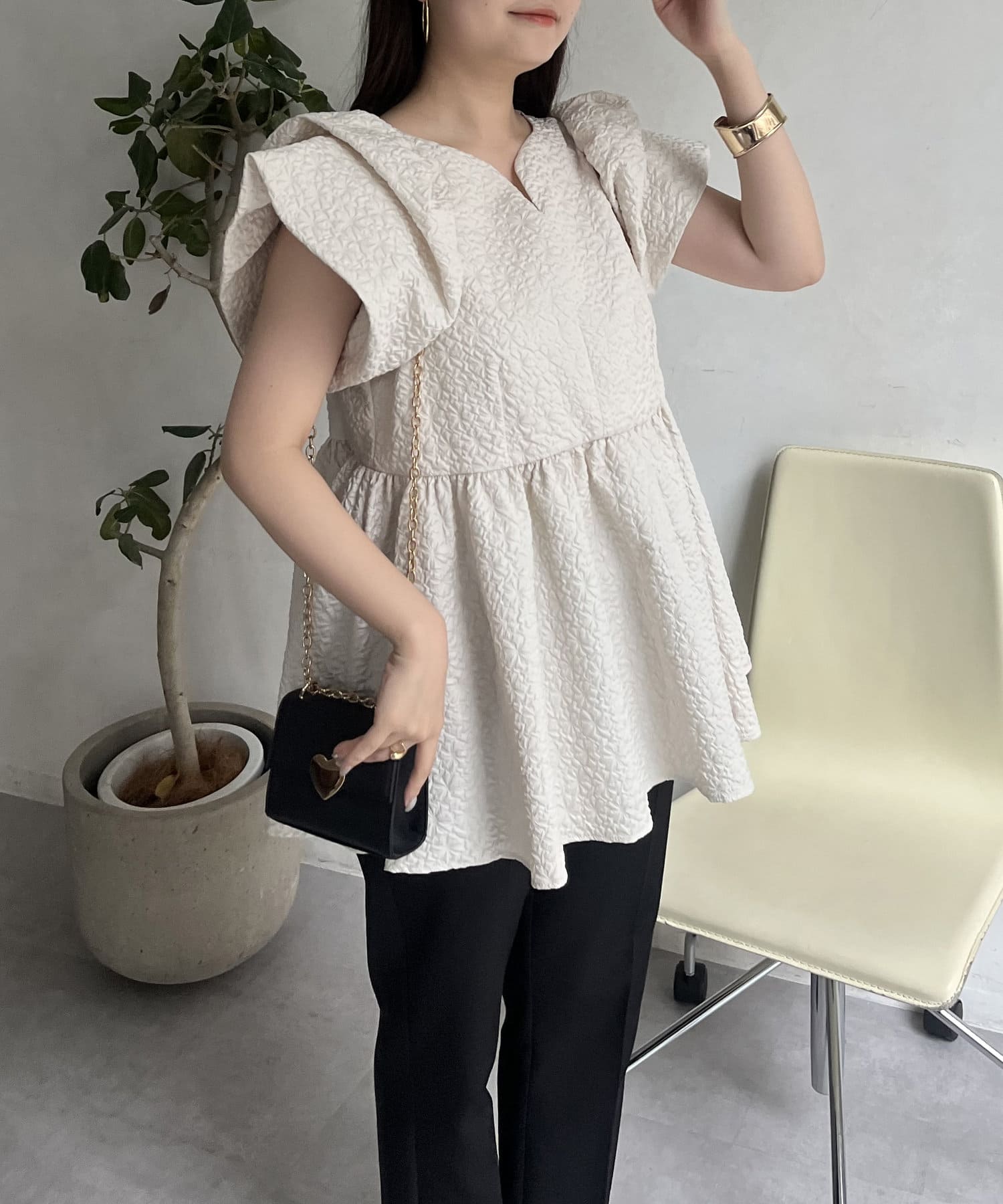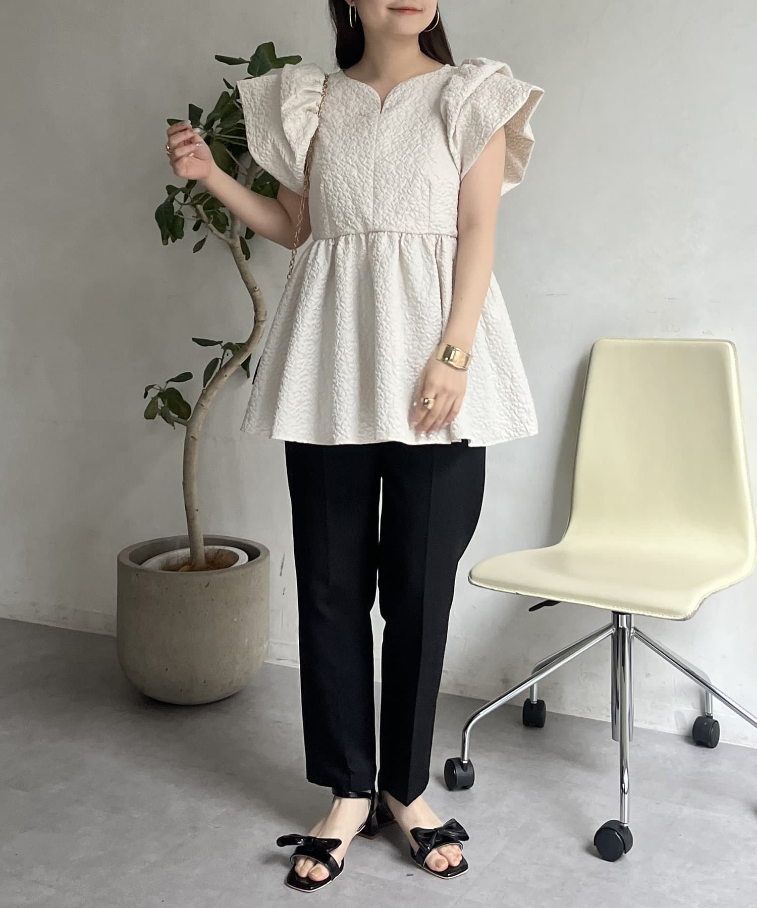 ボリューム感と細部まで施されたデザインが高見えするブラウス
